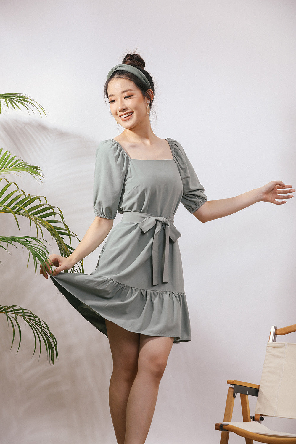Chervil Sash Midi Linen Dress