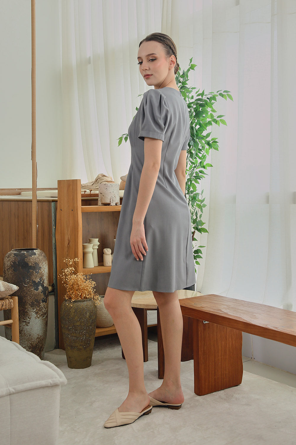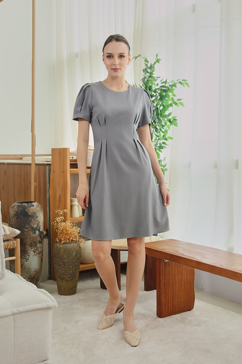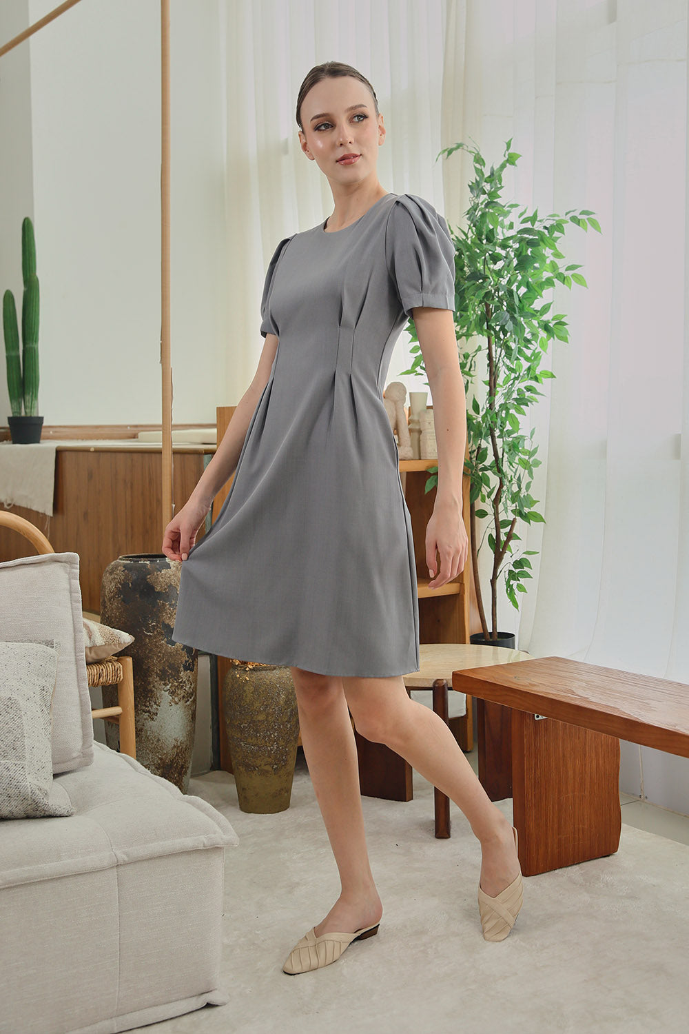Dezza Midi Dress in Grey Scenic Prints