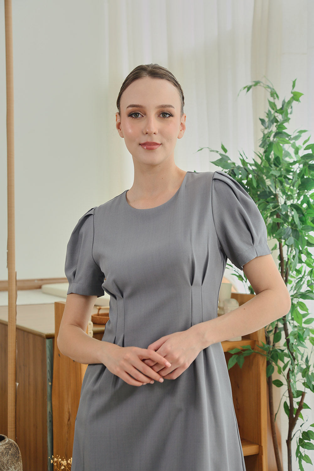 Serena Midi Dress in Deep Sage Texture