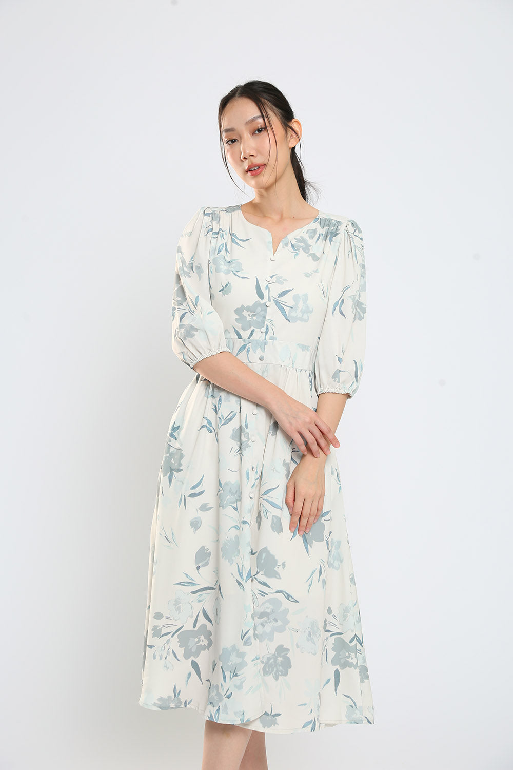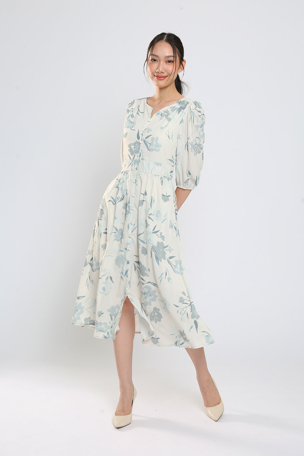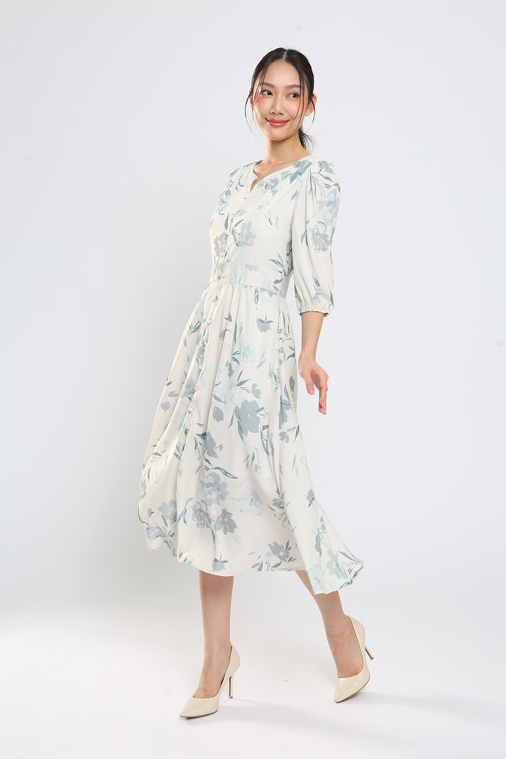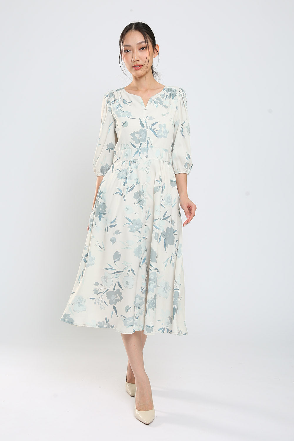 Erinn Collar Maxi Printed Dress in Blue Floral