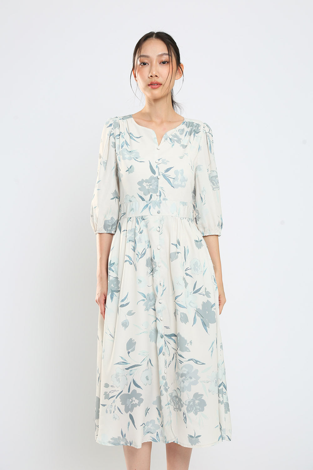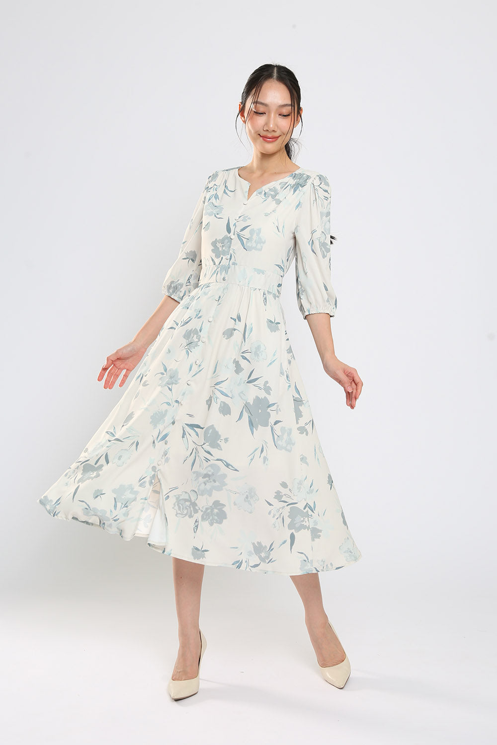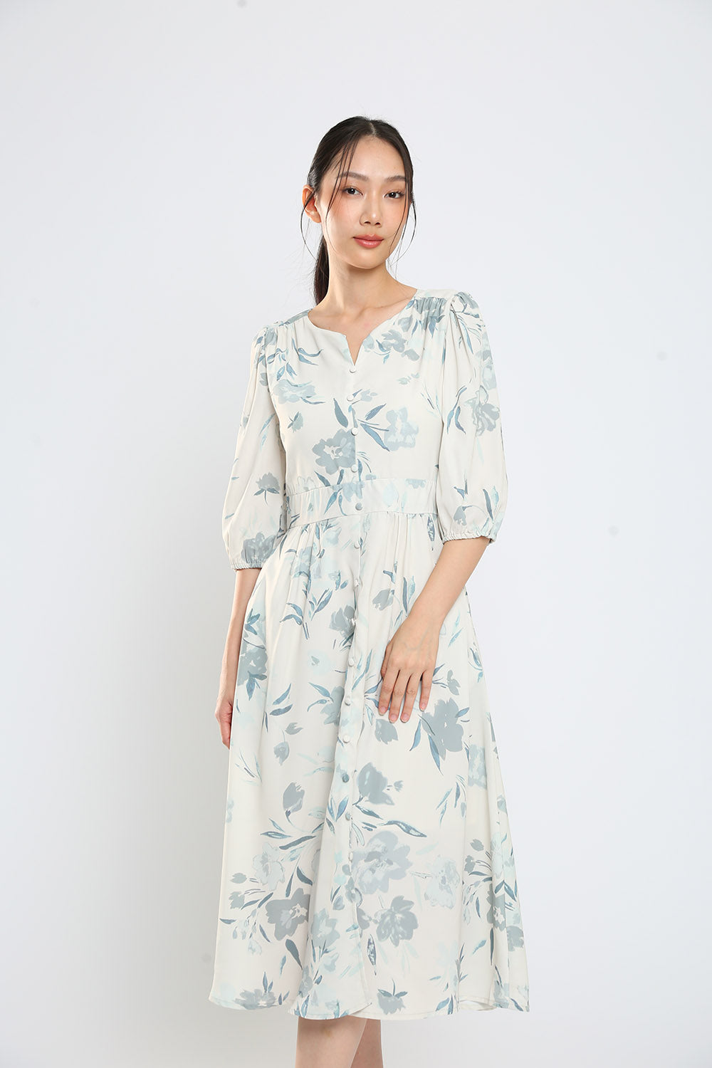 Erinn Collar Maxi Printed Dress in Blue Floral