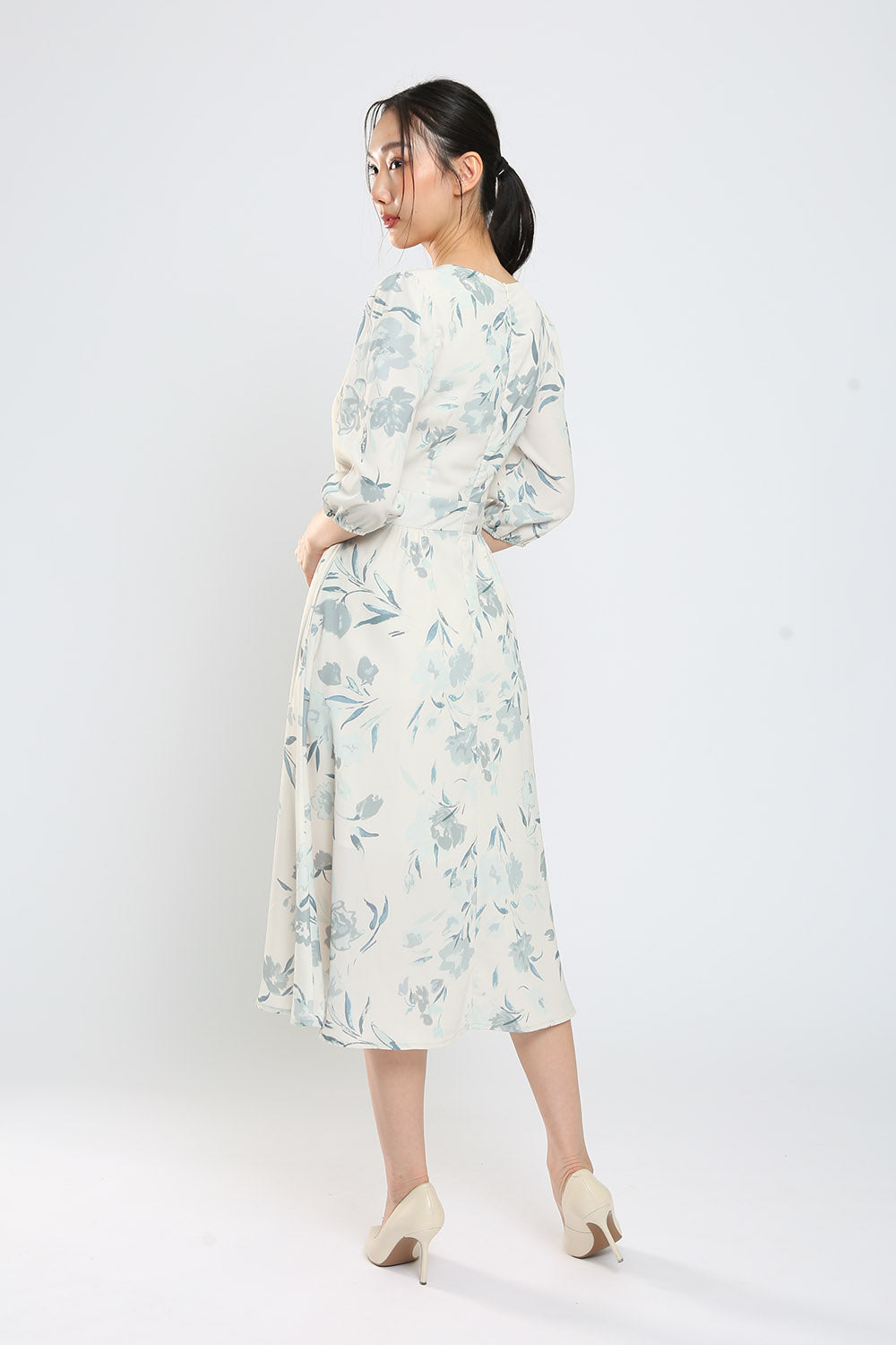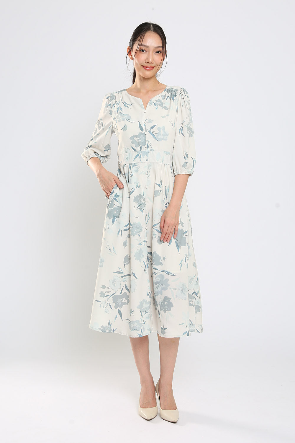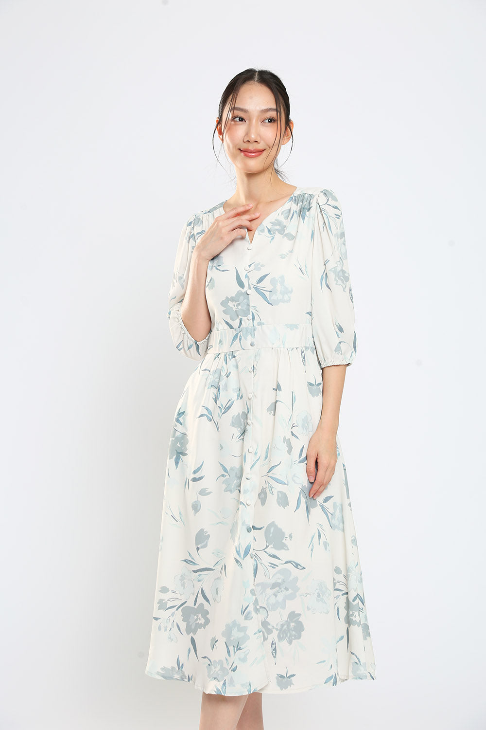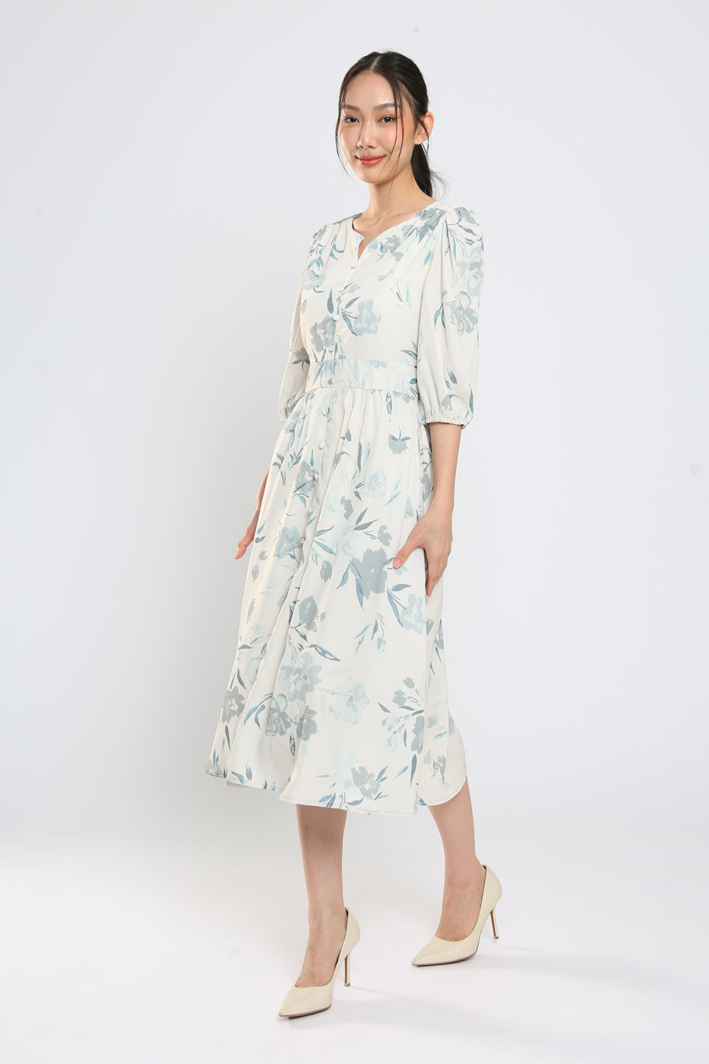 Erinn Collar Maxi Printed Dress in Blue Floral