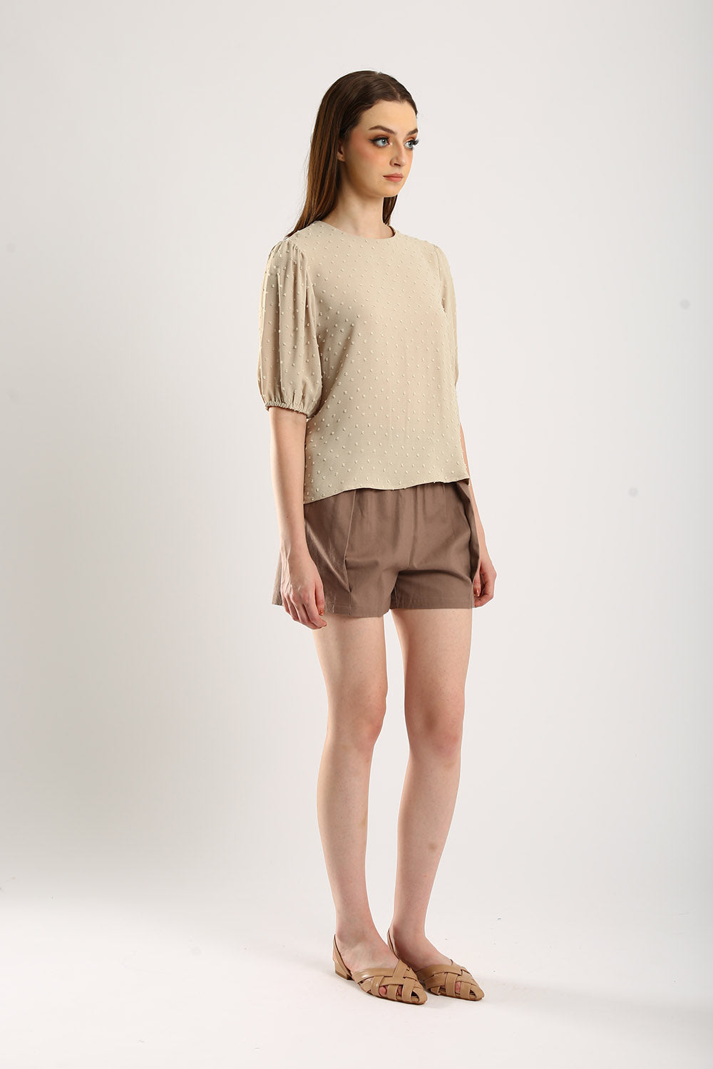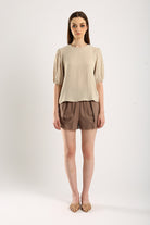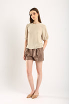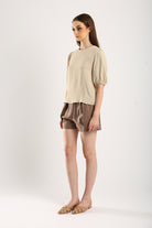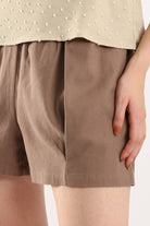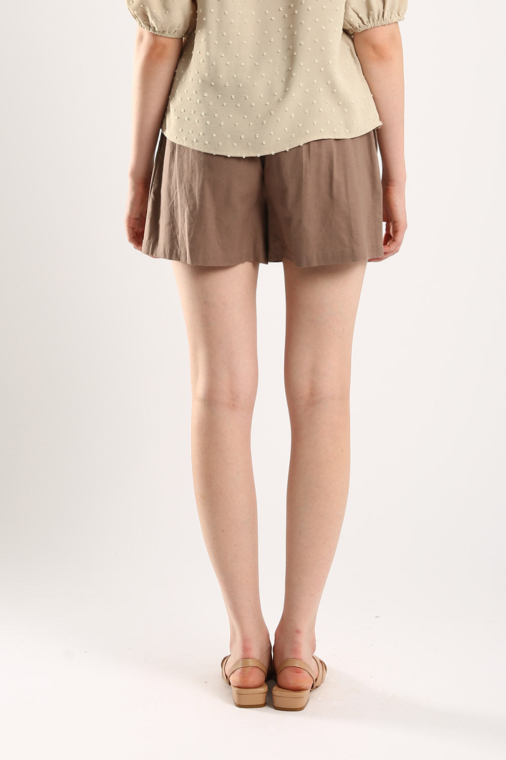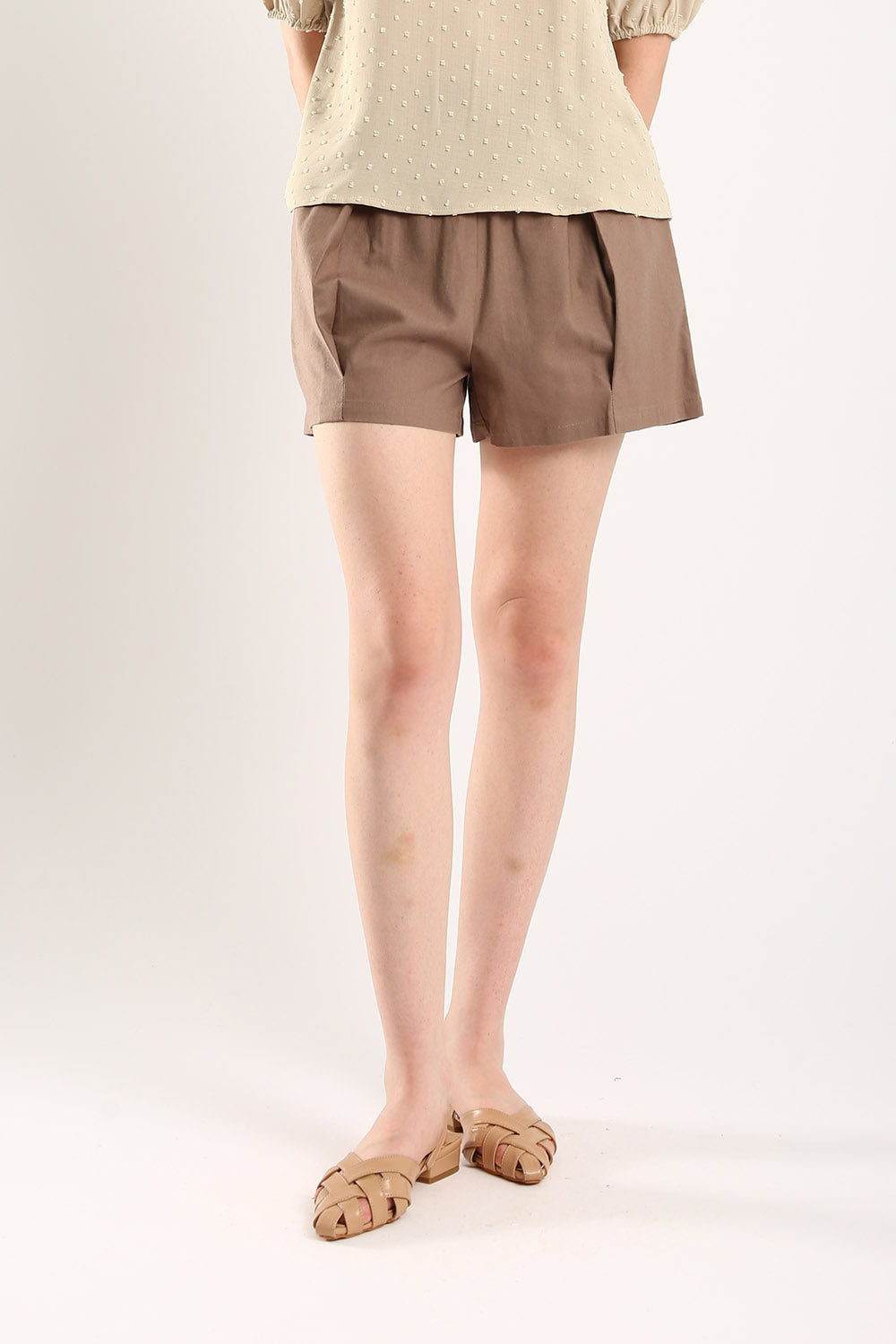 Expertly crafted with lightweight linen, our Gabine shorts in coffee offer a tailored fit and convenient side pockets. Designed with an elasticized band for added comfort and flexibility. Perfect for any occasion, upgrade your summer wardrobe with these stylish and functional shorts.