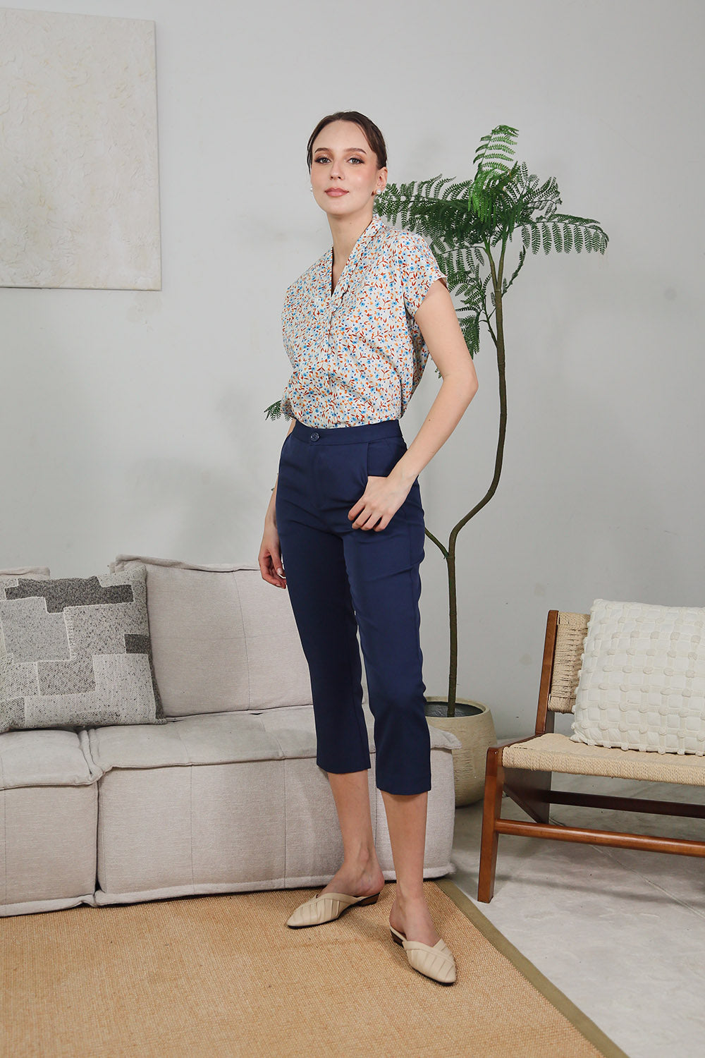 Navy Polka Dots Danara Floral Prints