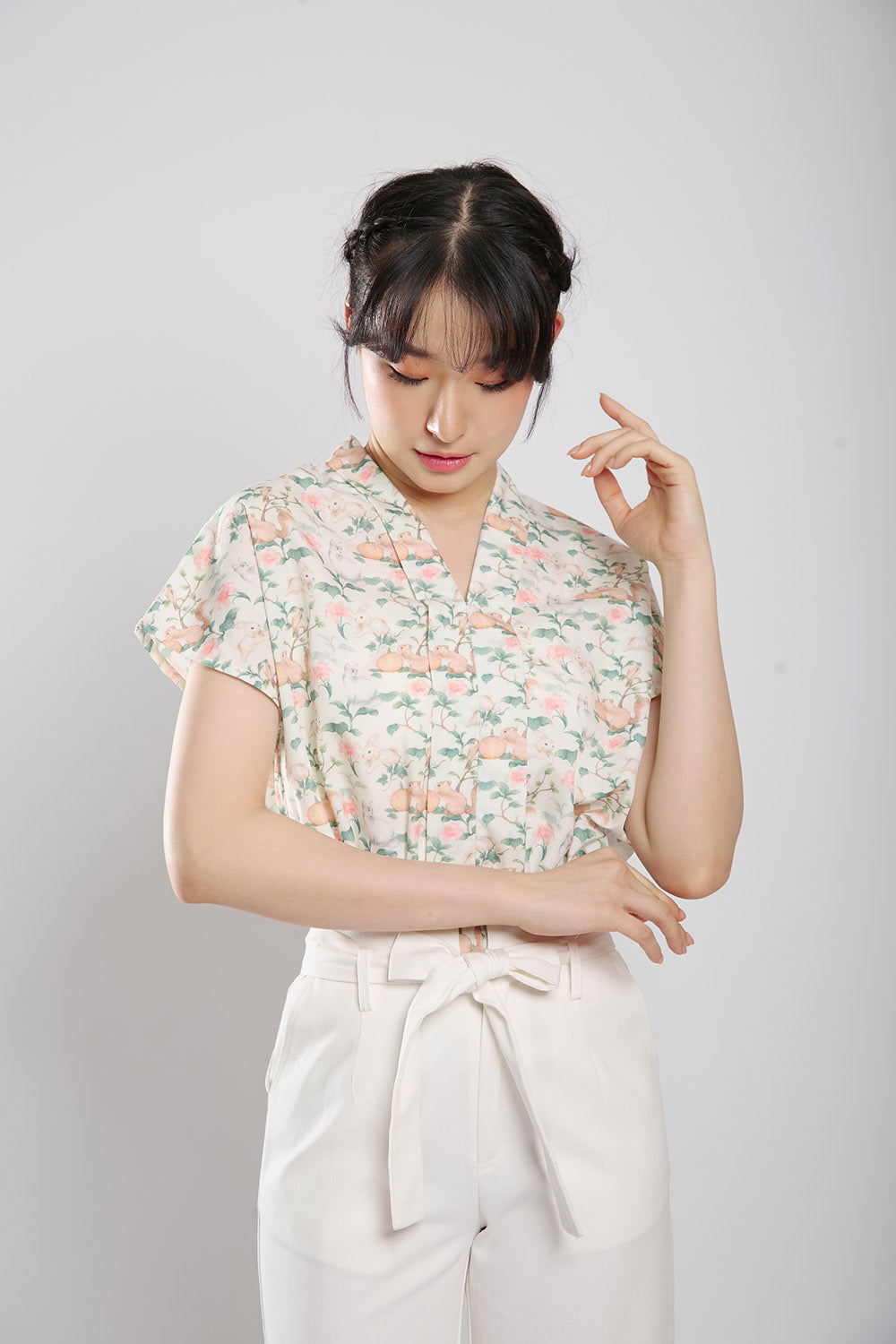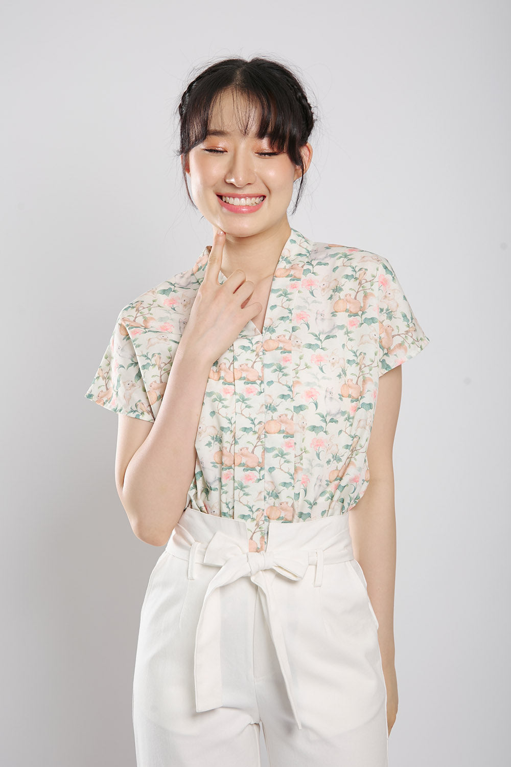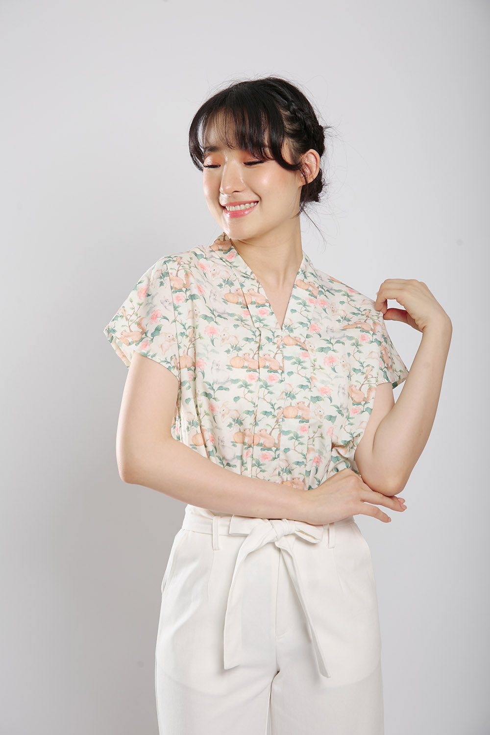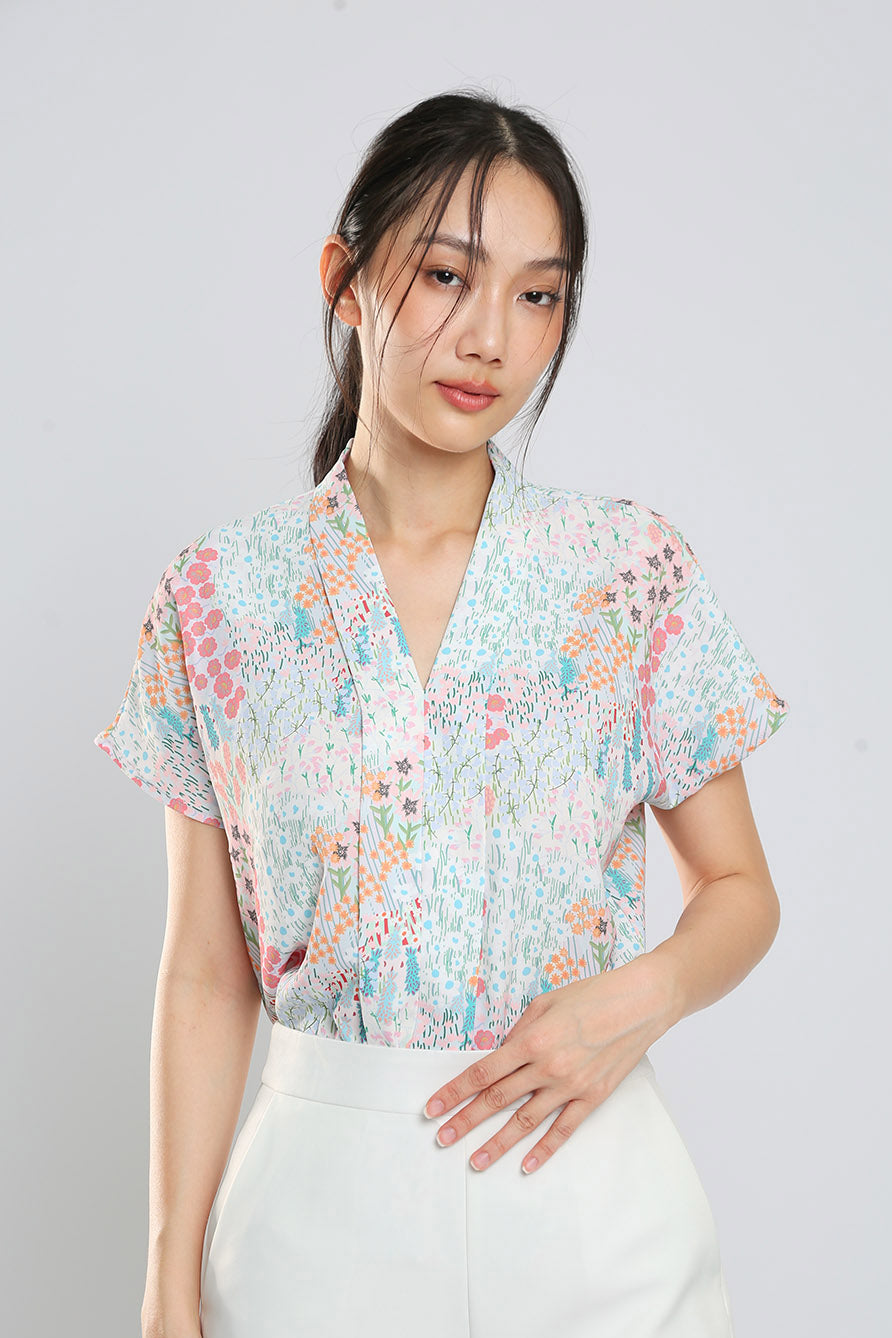 Addie Kimono Neckline Top in Light Animal Print