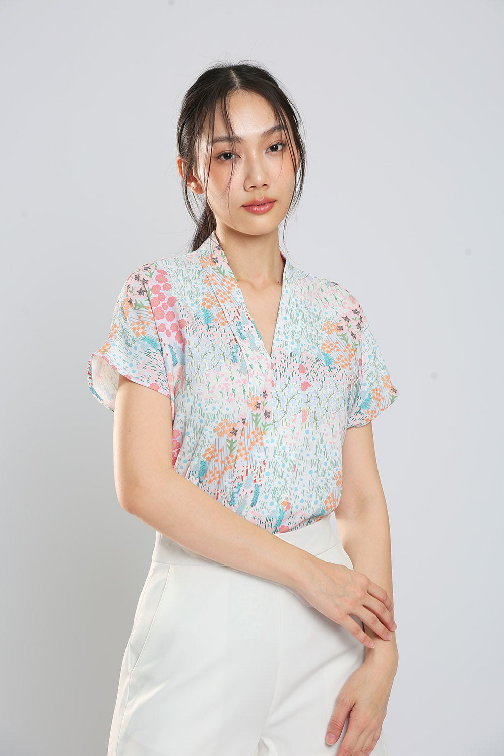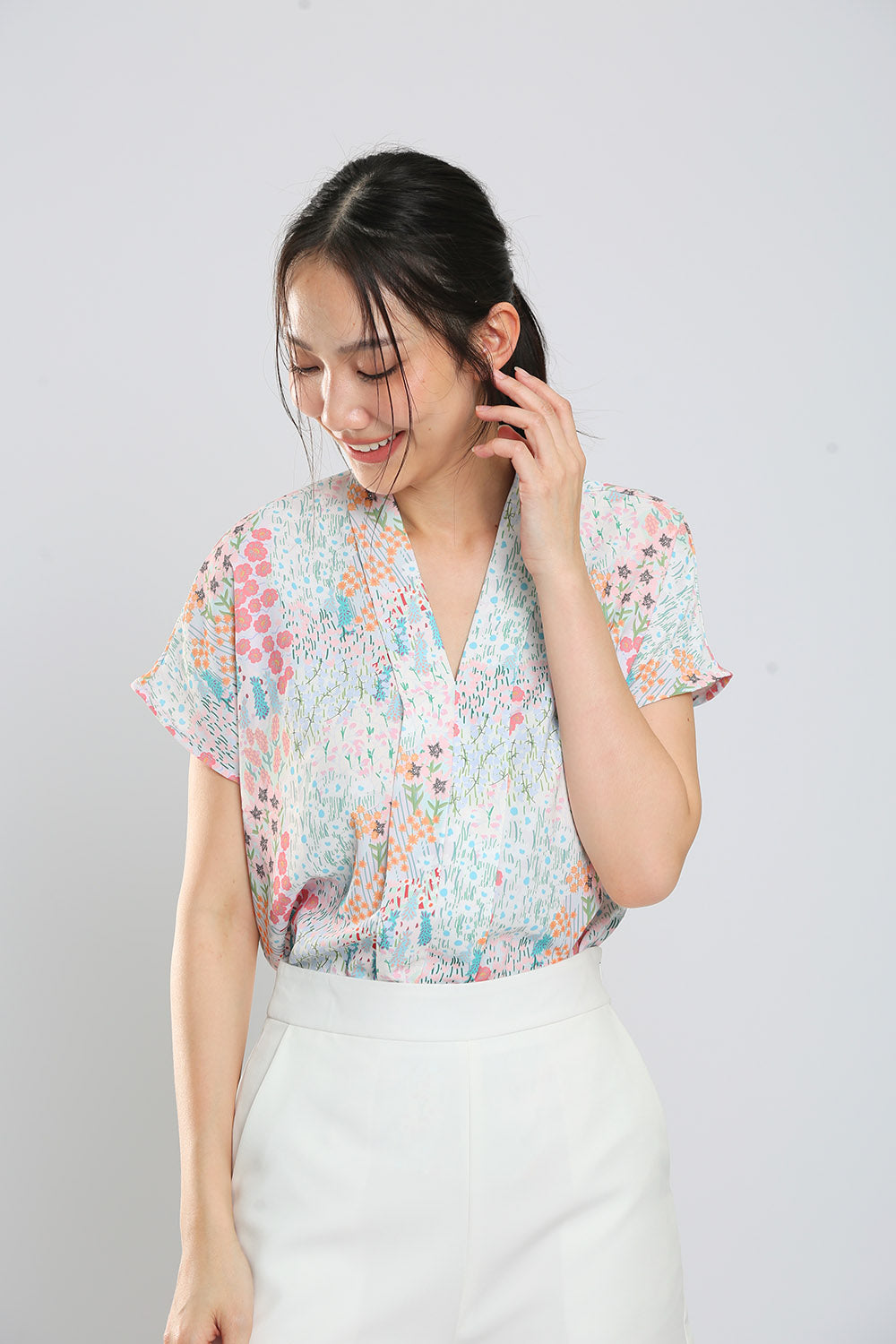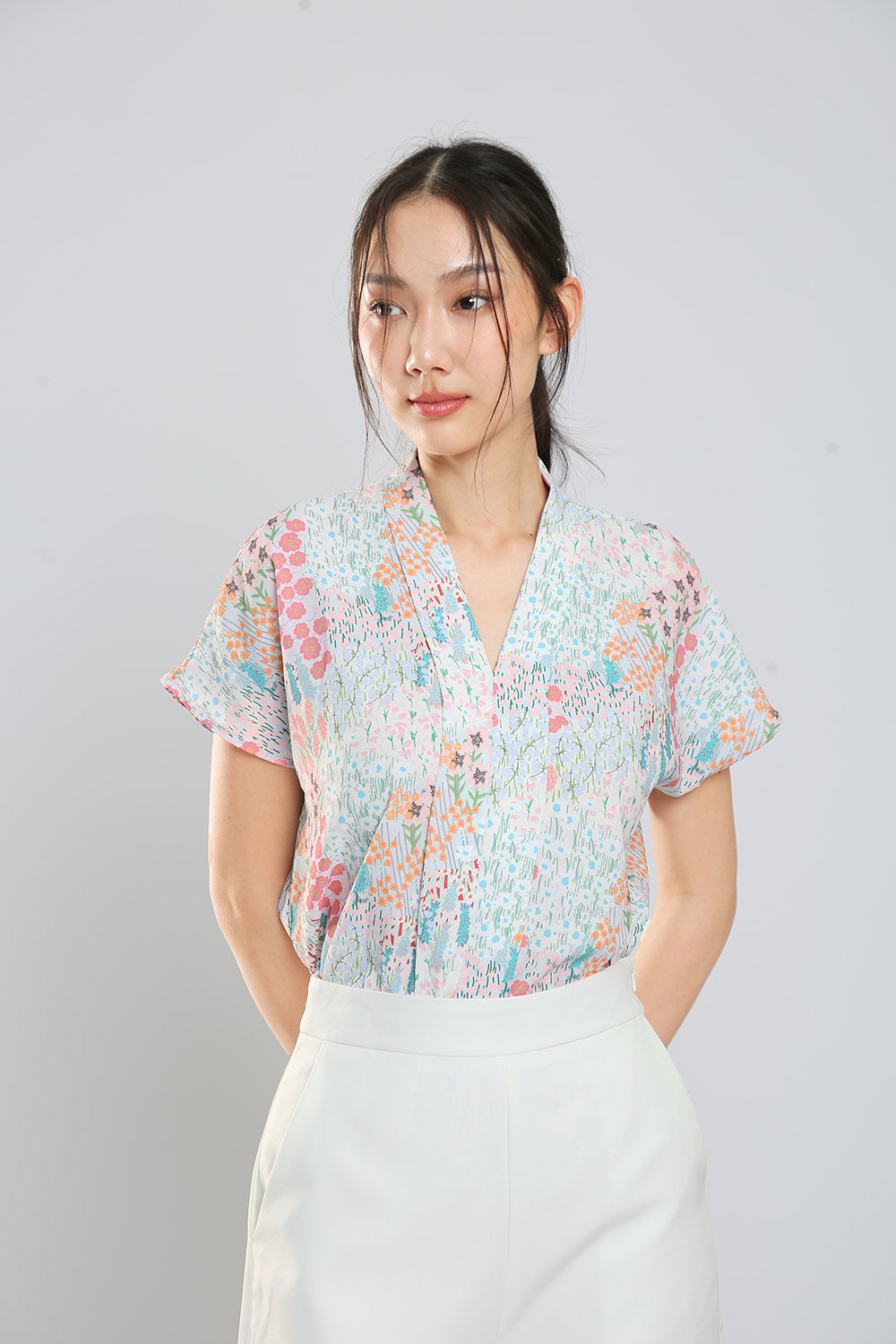 Addie Kimono Neckline Top in Light Animal Print