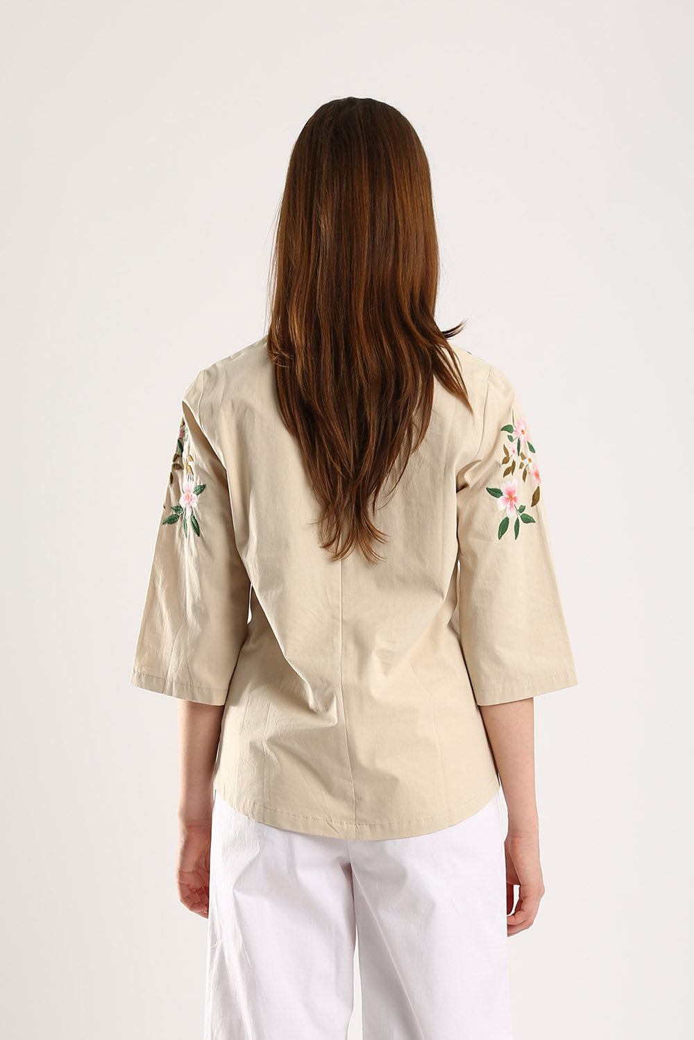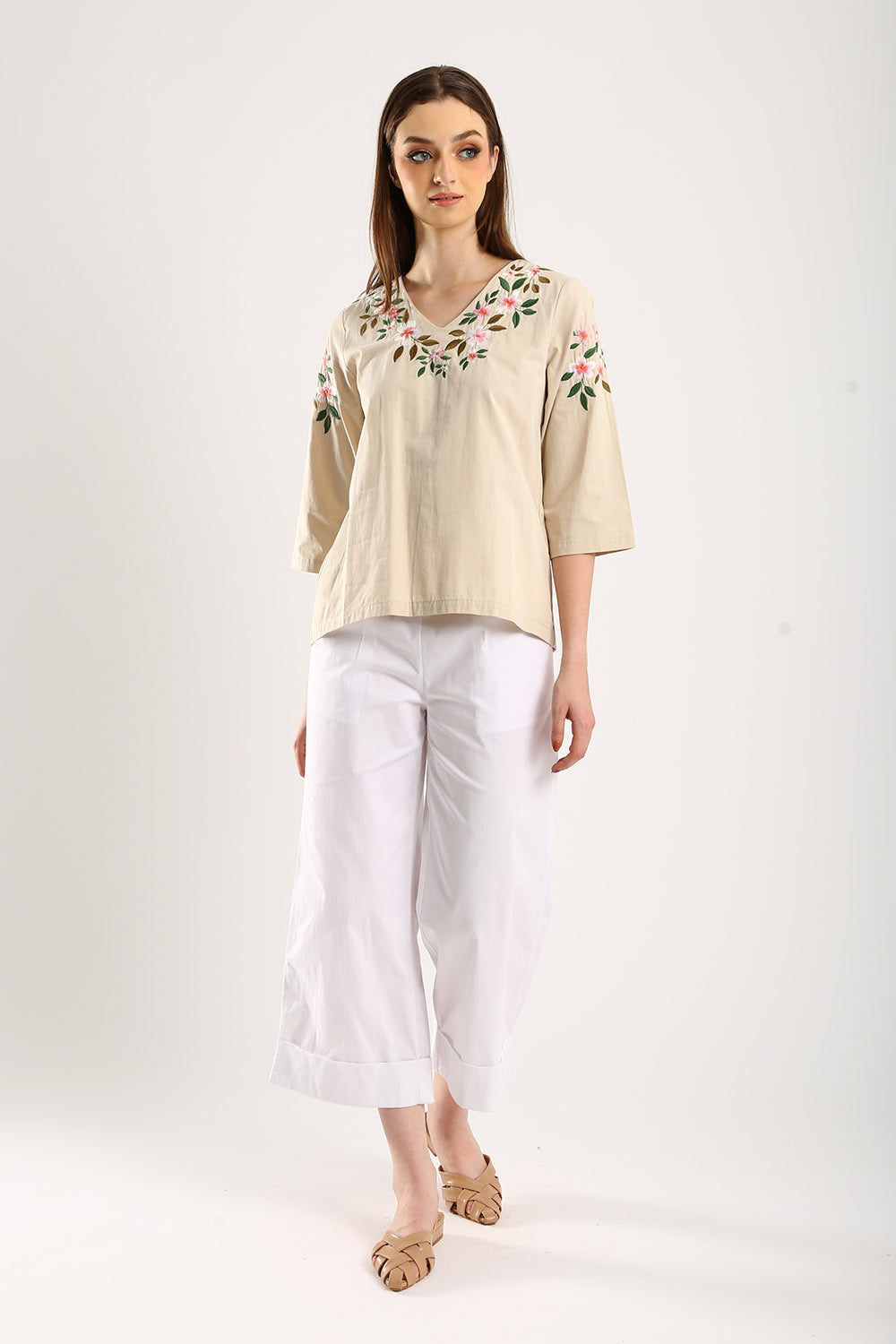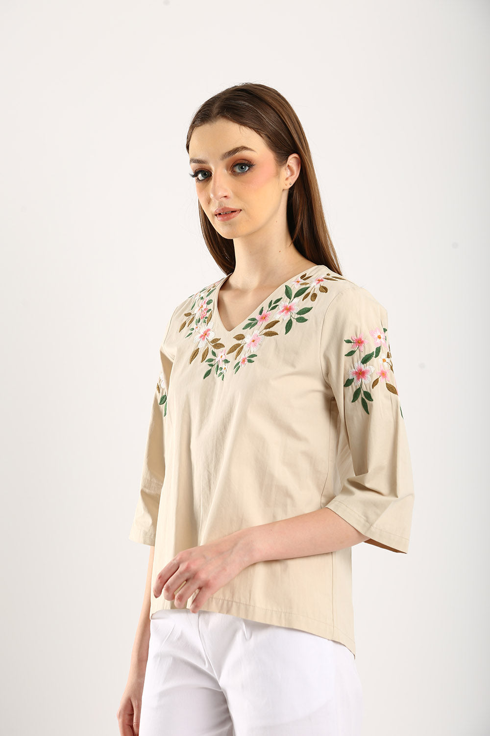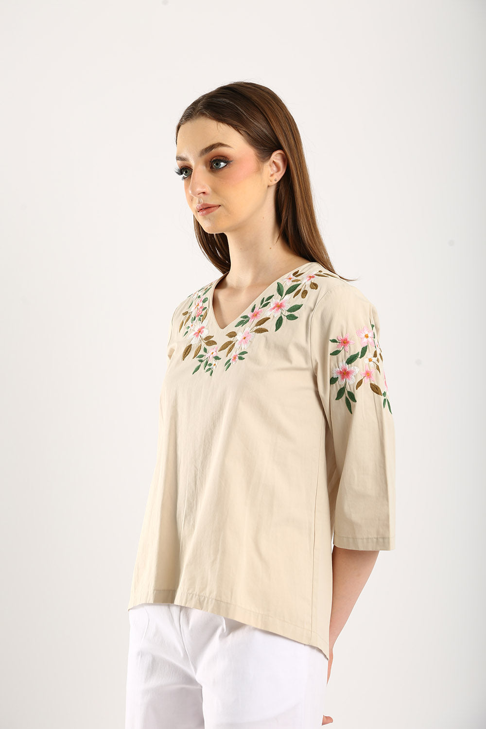 This light apricot blouse features beautiful floral embroidery and is made from 100% premium cotton, ensuring comfort and quality. Its slip on design makes it easy to wear, while the embroidery adds a touch of elegance. Experience the perfect combination of style and comfort with this blouse.