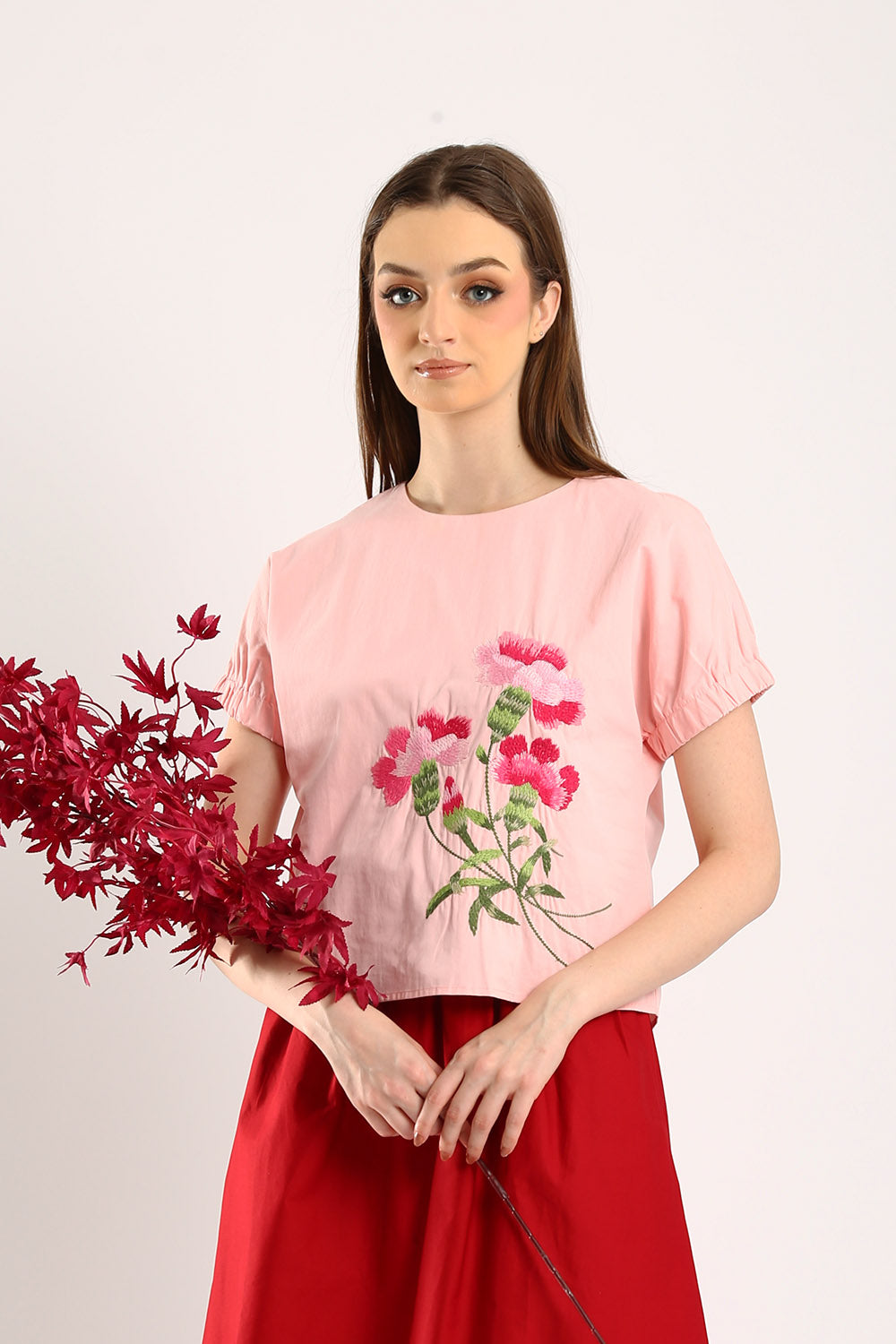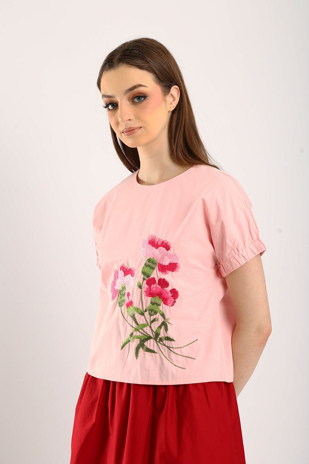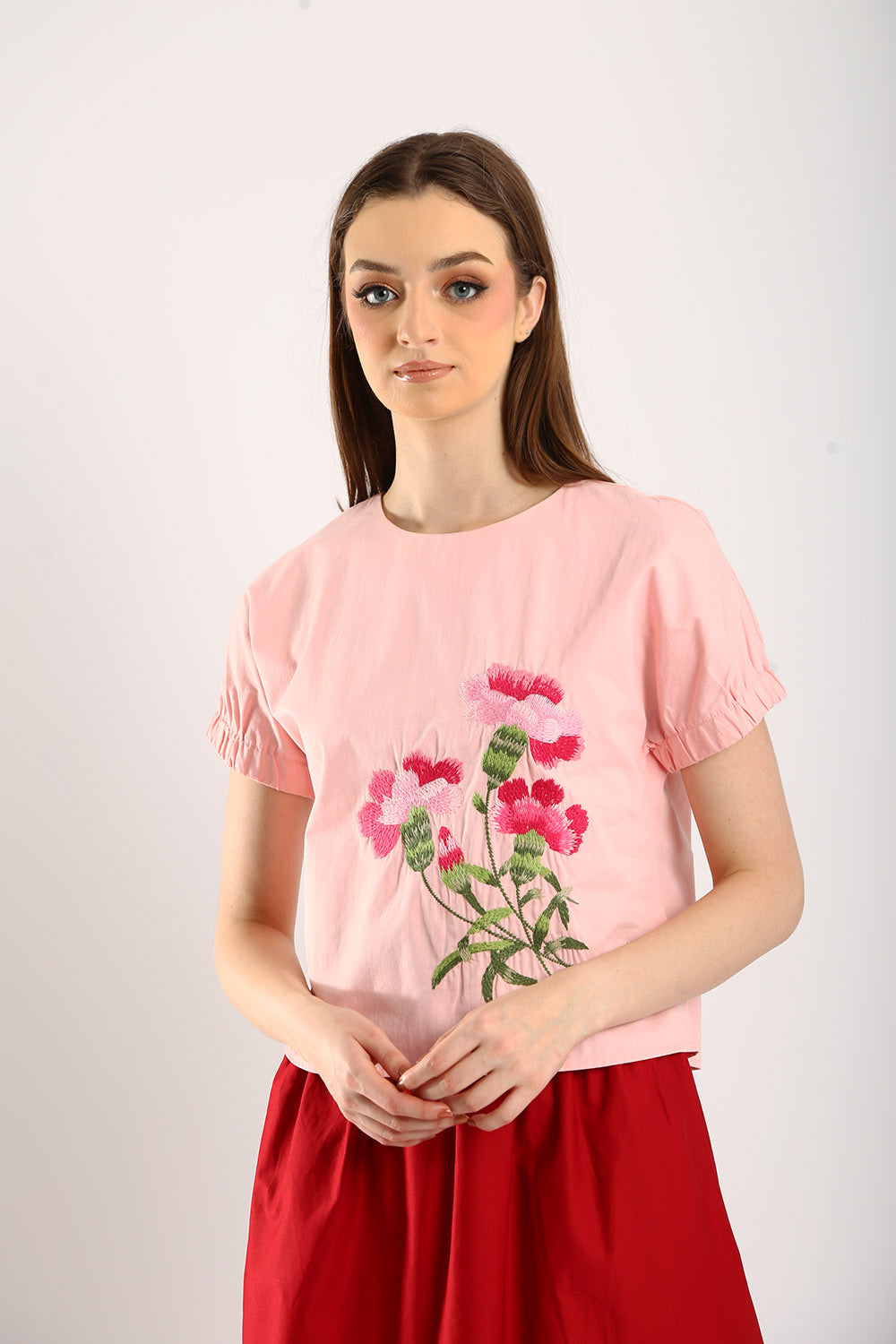 Delight in the elegance of the Blossom Embroidered Pink Top from Simple Spirit. Crafted from 100% premium cotton, this soft and breathable top features intricate floral embroidery that adds a touch of charm and sophistication to your wardrobe. The ruched sleeves lend a playful finish, while the relaxed silhouette ensures all-day comfort. Pair it effortlessly with skirts, tailored pants, or your favorite casual bottoms for a look that radiates timeless style.