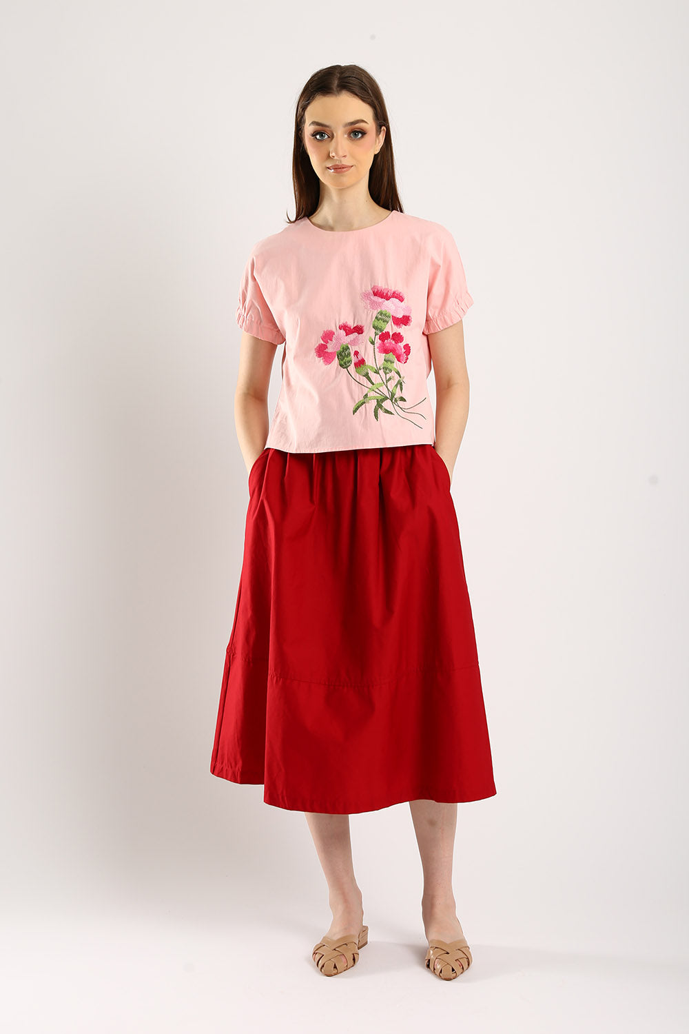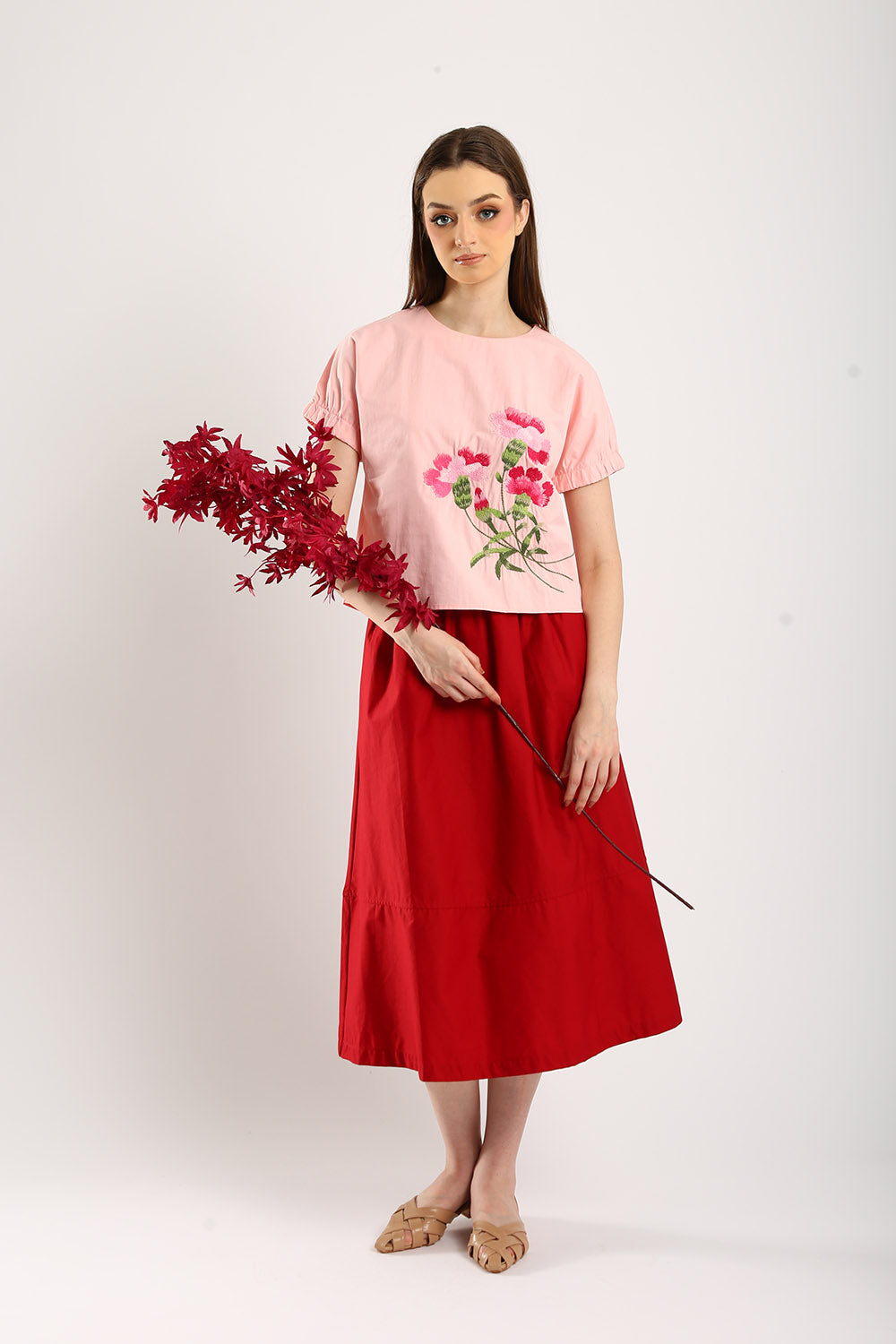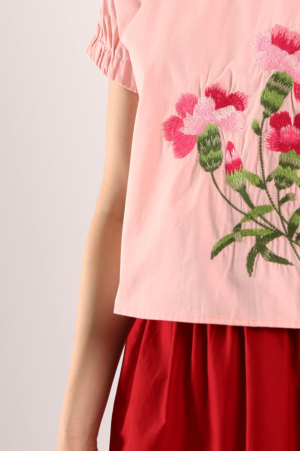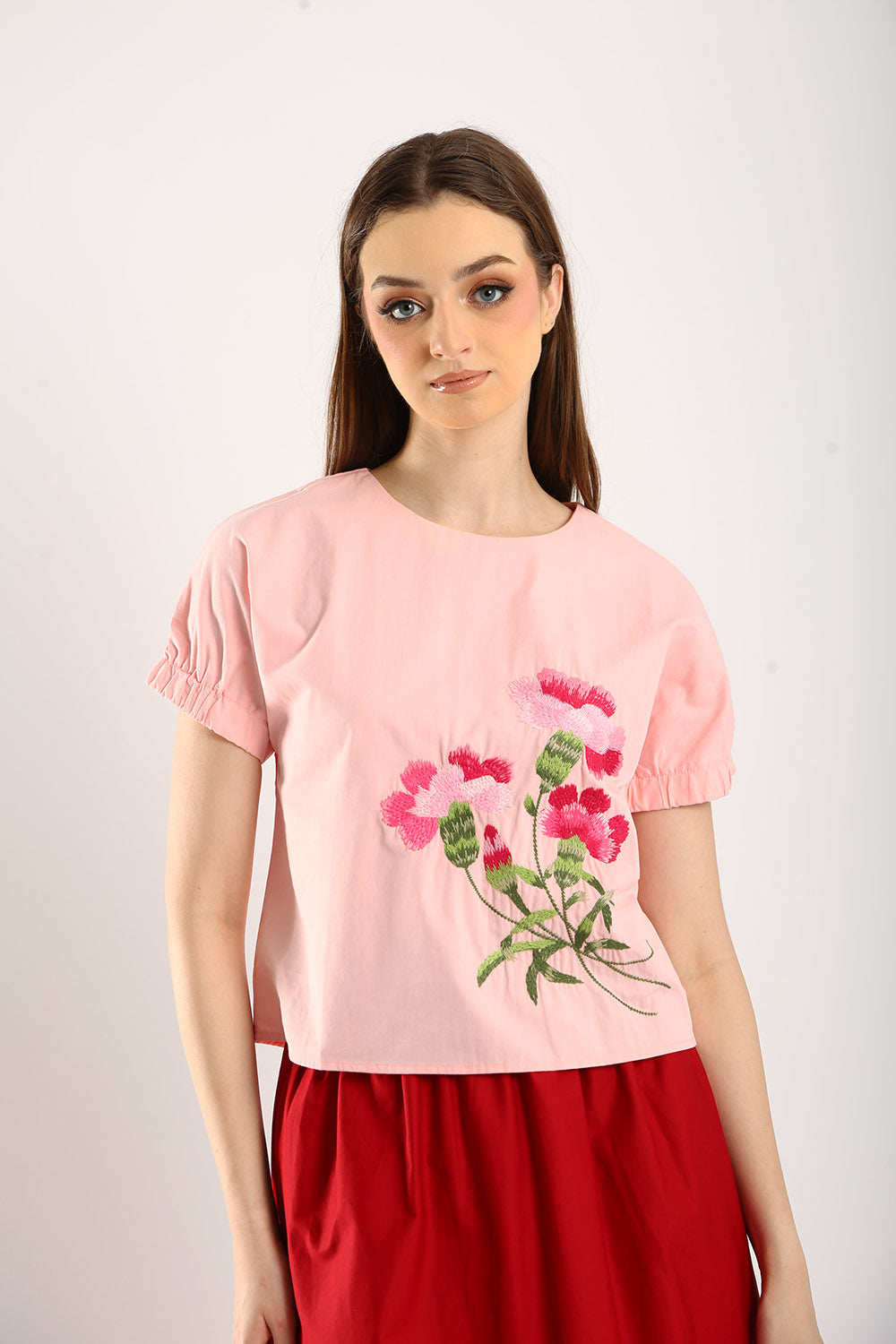 Delight in the elegance of the Blossom Embroidered Pink Top from Simple Spirit. Crafted from 100% premium cotton, this soft and breathable top features intricate floral embroidery that adds a touch of charm and sophistication to your wardrobe. The ruched sleeves lend a playful finish, while the relaxed silhouette ensures all-day comfort. Pair it effortlessly with skirts, tailored pants, or your favorite casual bottoms for a look that radiates timeless style.