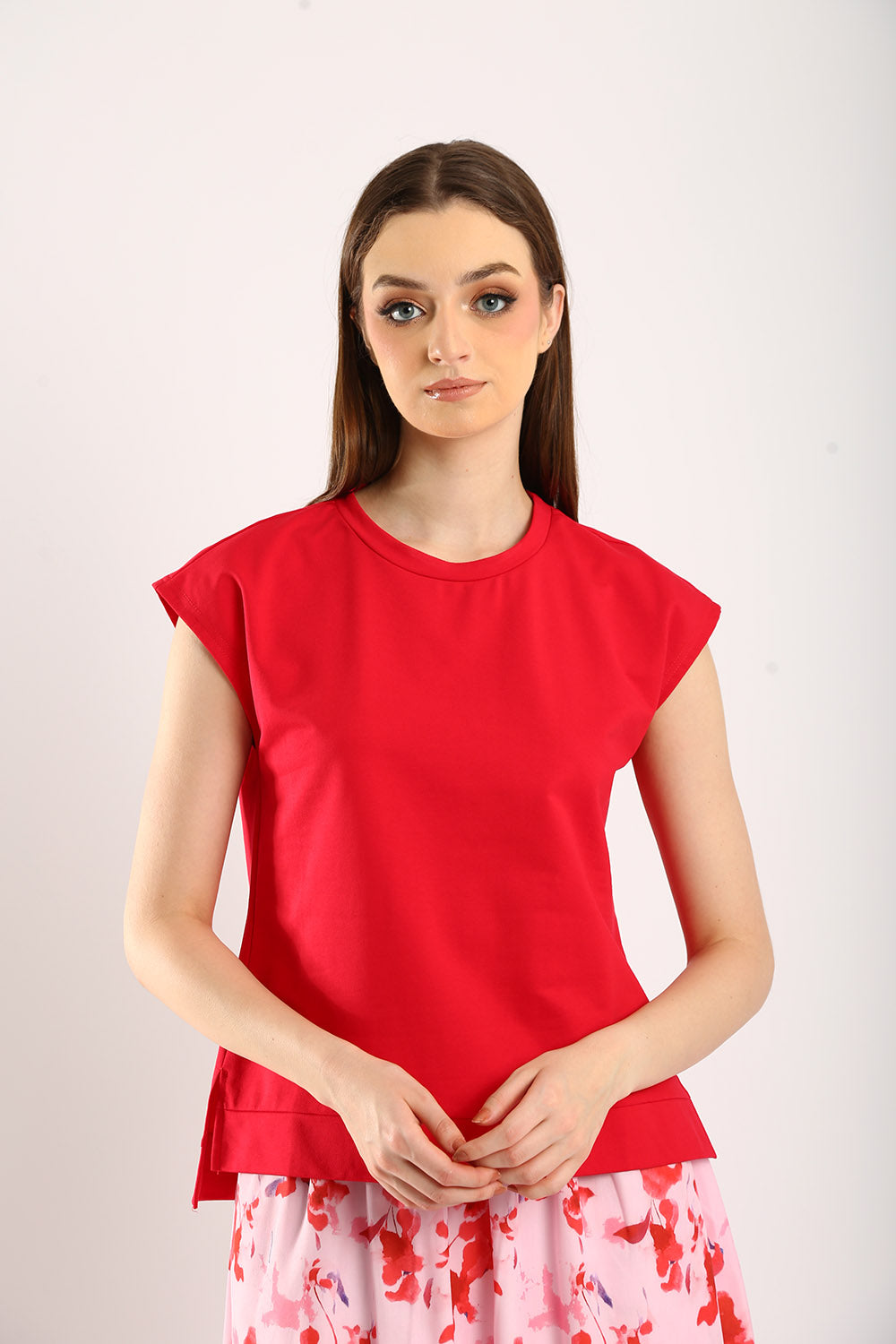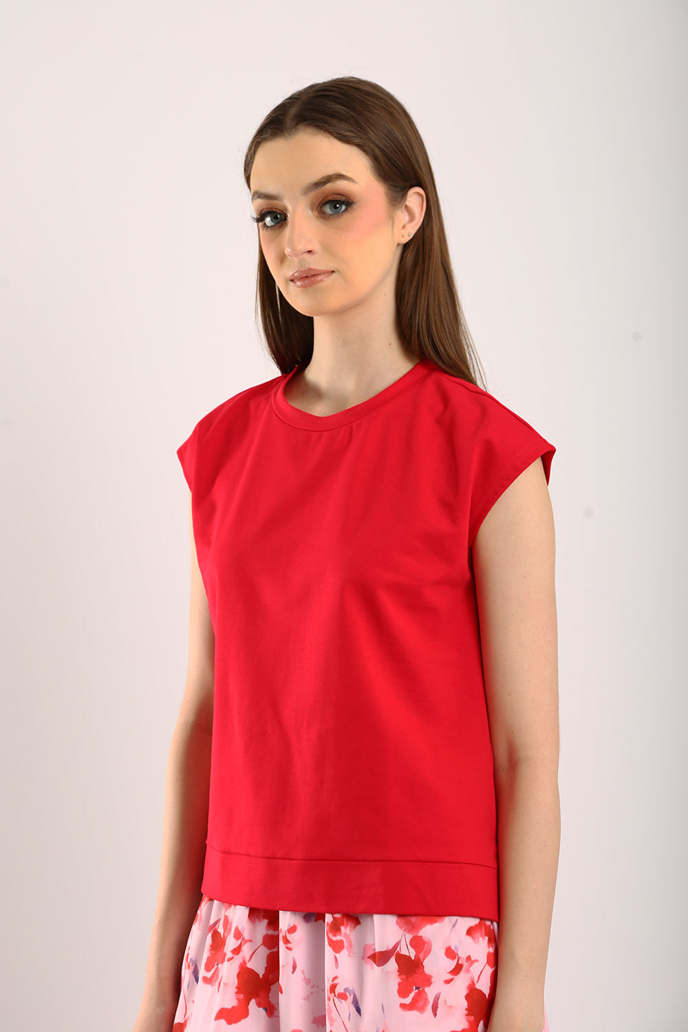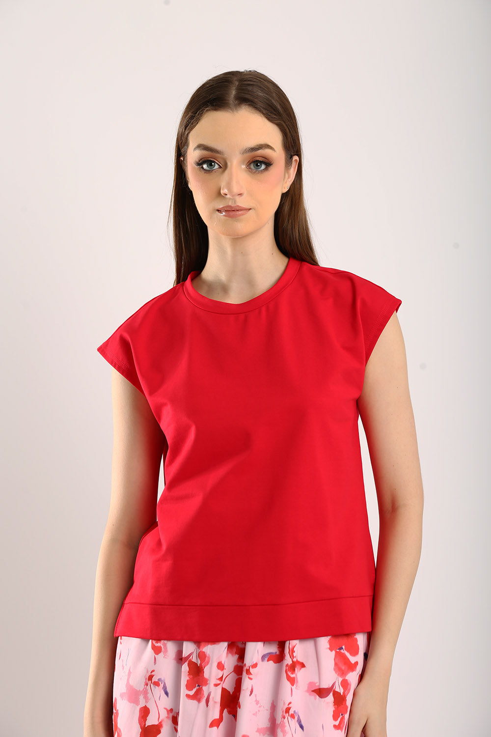 The Celestine Sleeveless Jersey Top in Scarlet Red brings a vibrant pop of color to your wardrobe. Made from premium jersey fabric, this top ensures comfort and breathability, making it ideal for any occasion. The sleeveless design and relaxed fit add a contemporary touch, while the bold scarlet hue effortlessly draws attention. Style it with a flowy skirt for a feminine look or pair it with neutral trousers for a chic, casual outfit. This versatile piece is perfect for adding a touch of elegance to your everyday essentials.