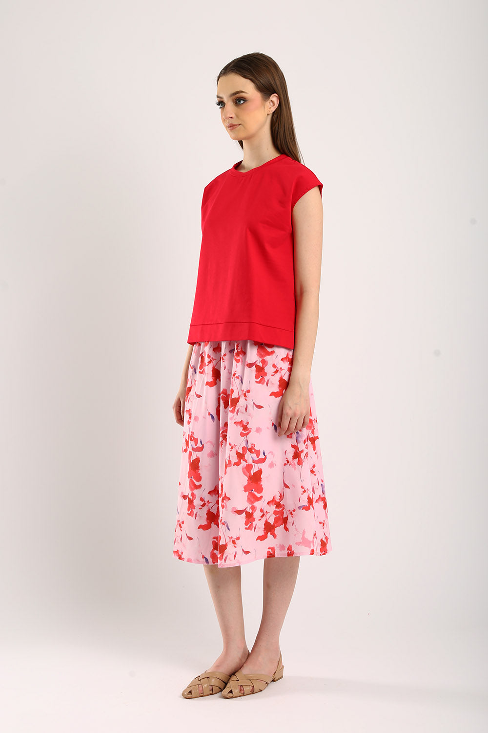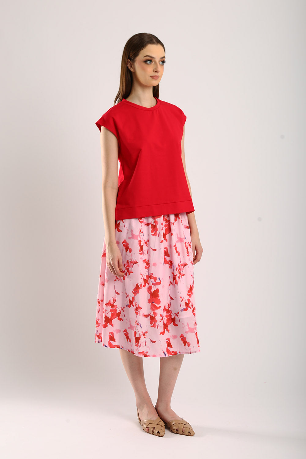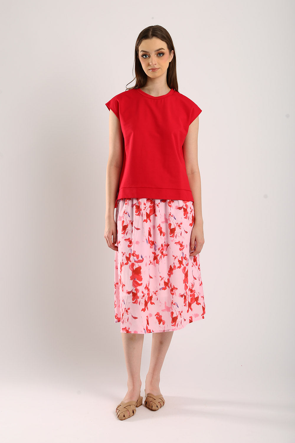 The Celestine Sleeveless Jersey Top in Scarlet Red brings a vibrant pop of color to your wardrobe. Made from premium jersey fabric, this top ensures comfort and breathability, making it ideal for any occasion. The sleeveless design and relaxed fit add a contemporary touch, while the bold scarlet hue effortlessly draws attention. Style it with a flowy skirt for a feminine look or pair it with neutral trousers for a chic, casual outfit. This versatile piece is perfect for adding a touch of elegance to your everyday essentials.