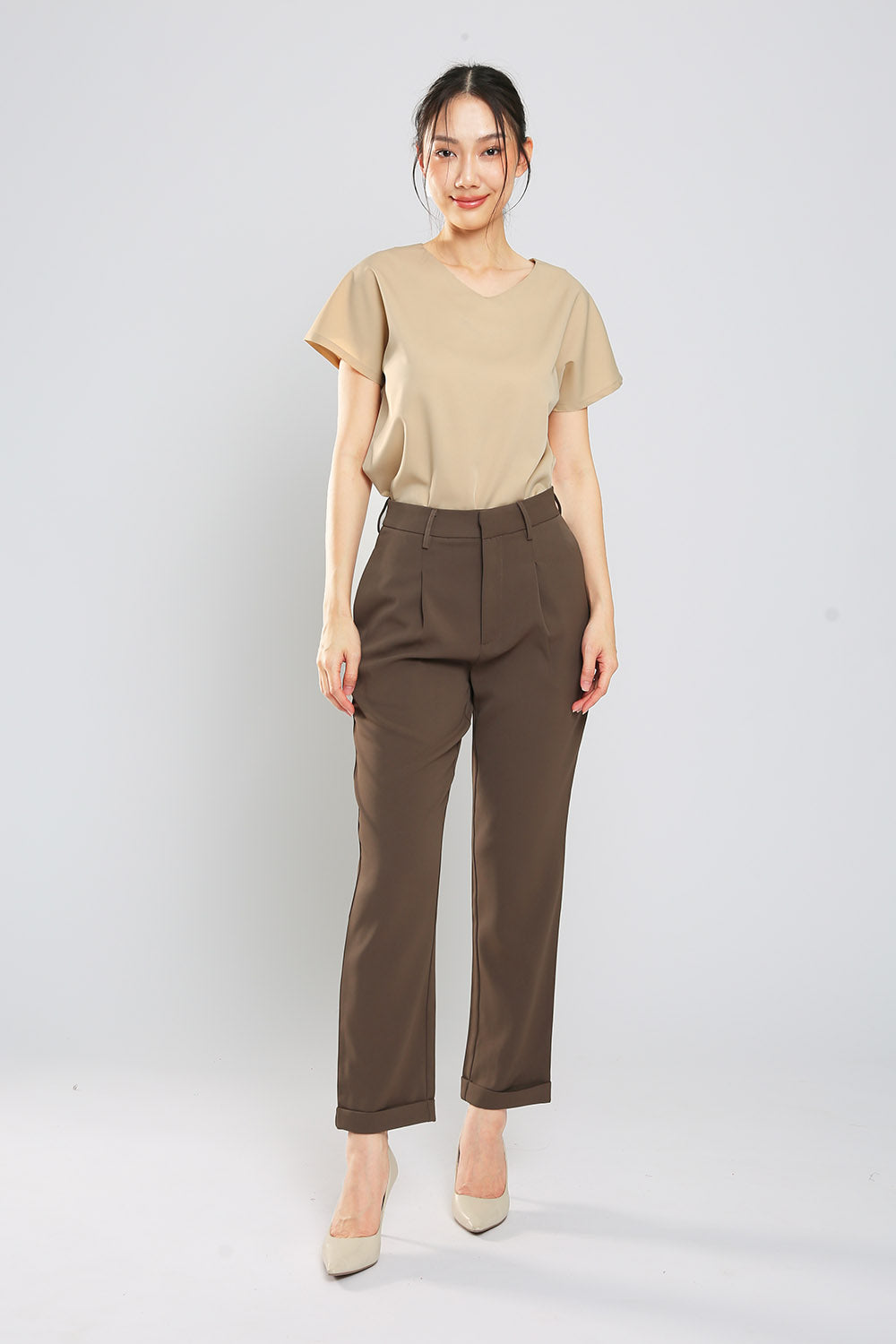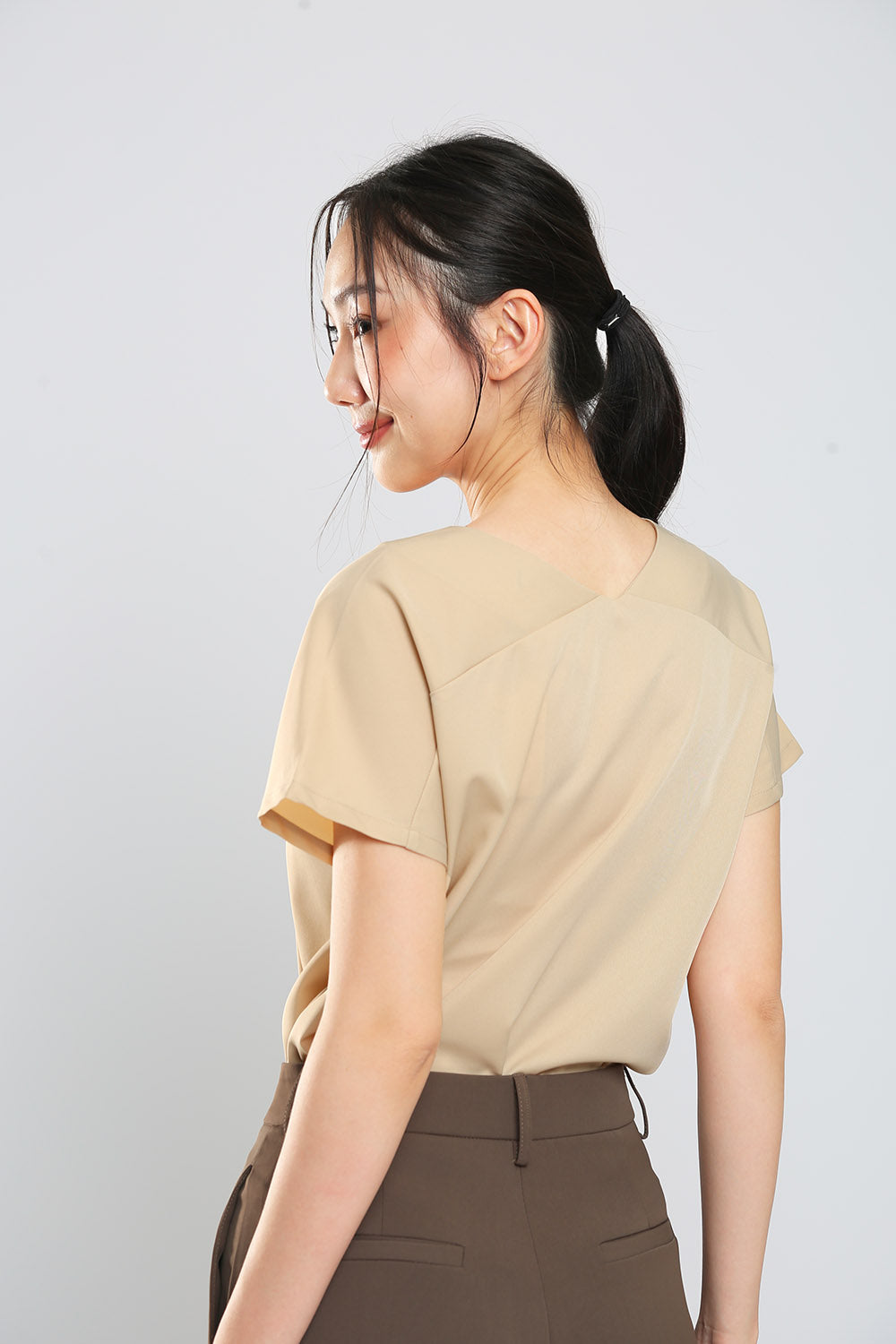 Effortlessly upgrade your wardrobe with our slip on v-neck top. Made from high-quality, easy iron polyester fabric, this piece offers both style and convenience. Perfect for any occasion, with no fussing over buttons or zippers.