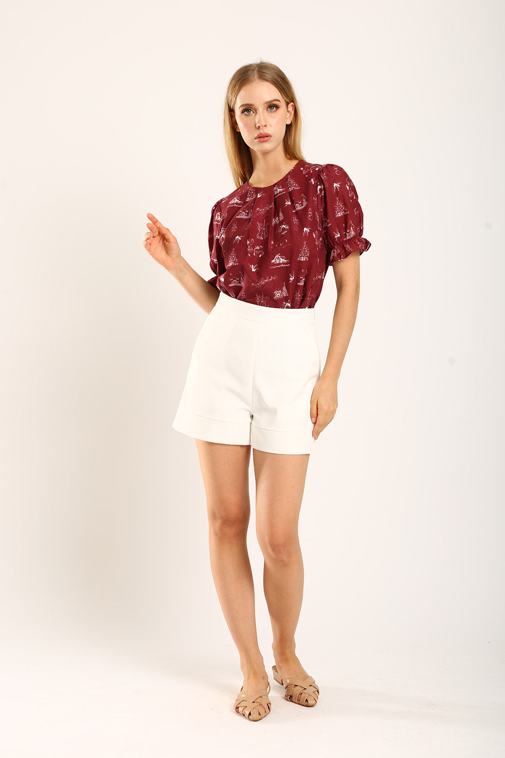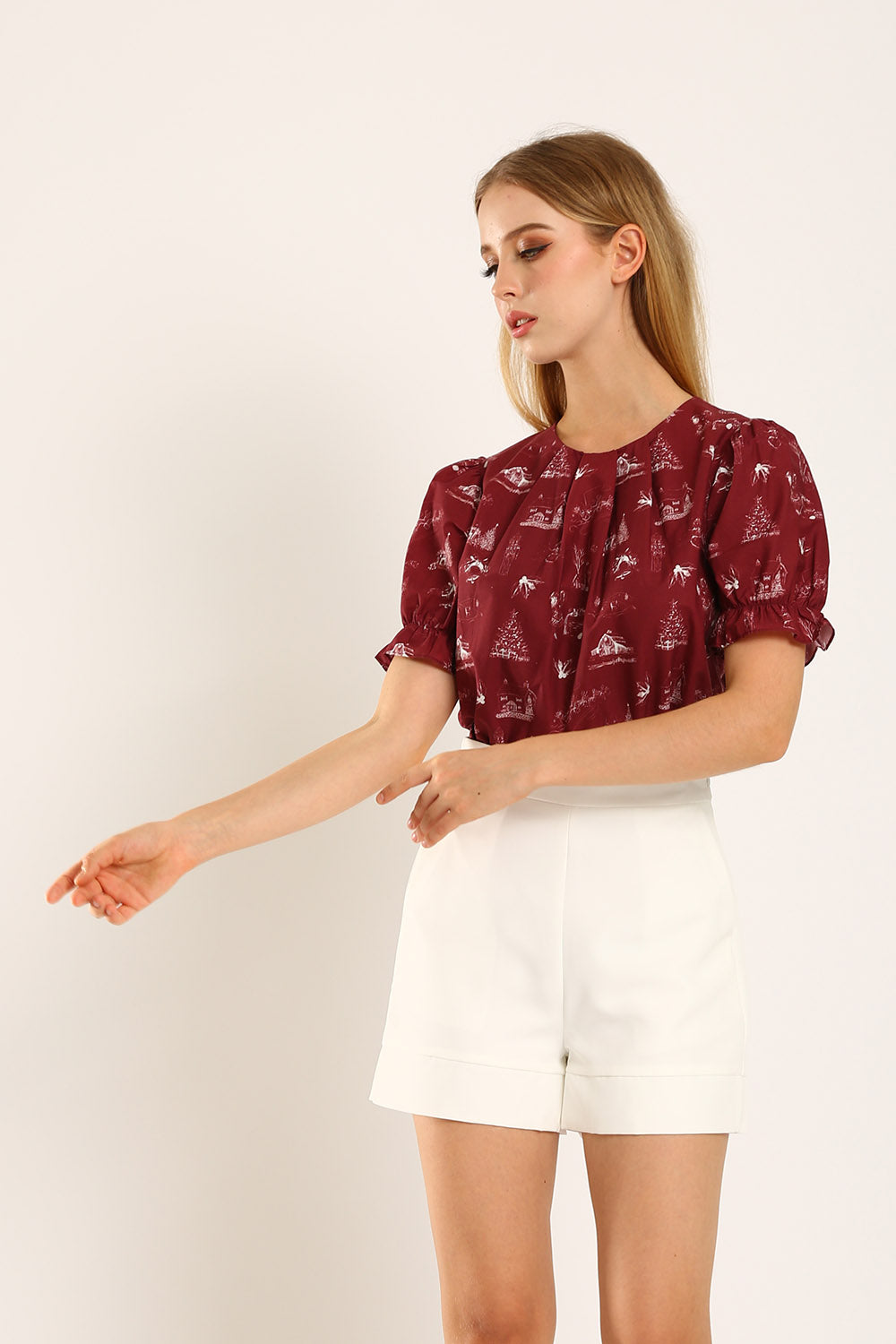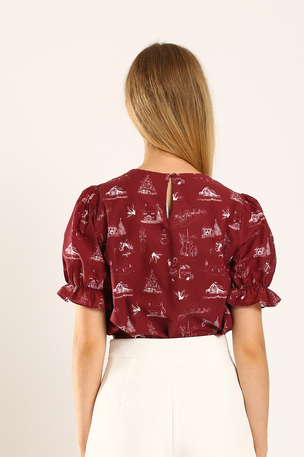Geia Holiday-Inspired Blouse with Red Festive Print