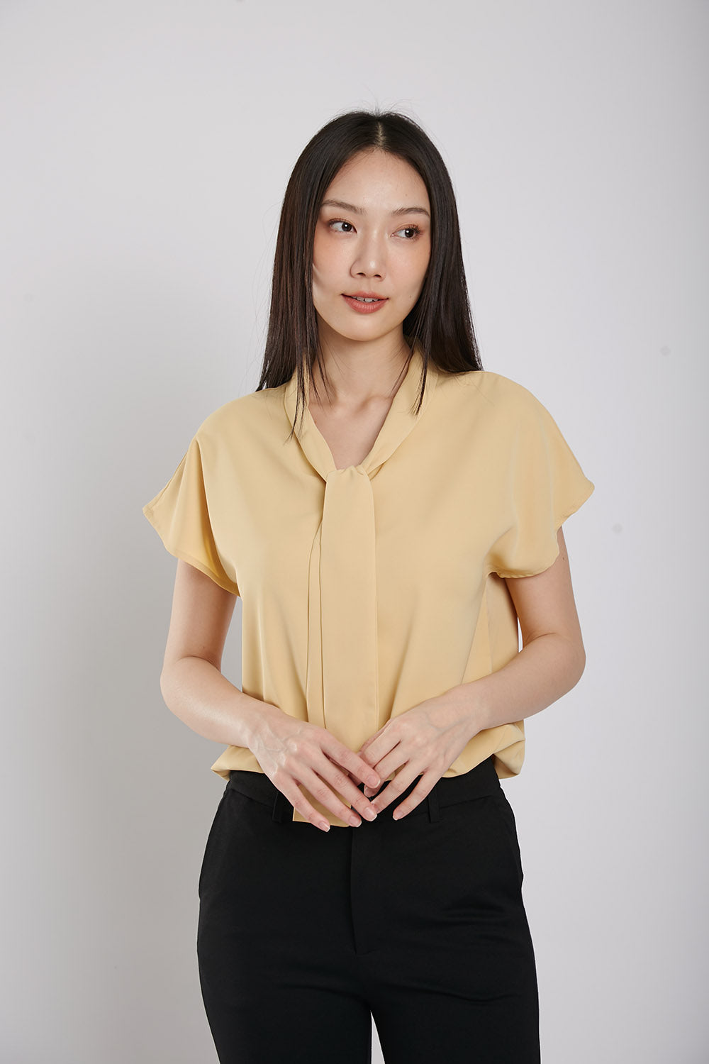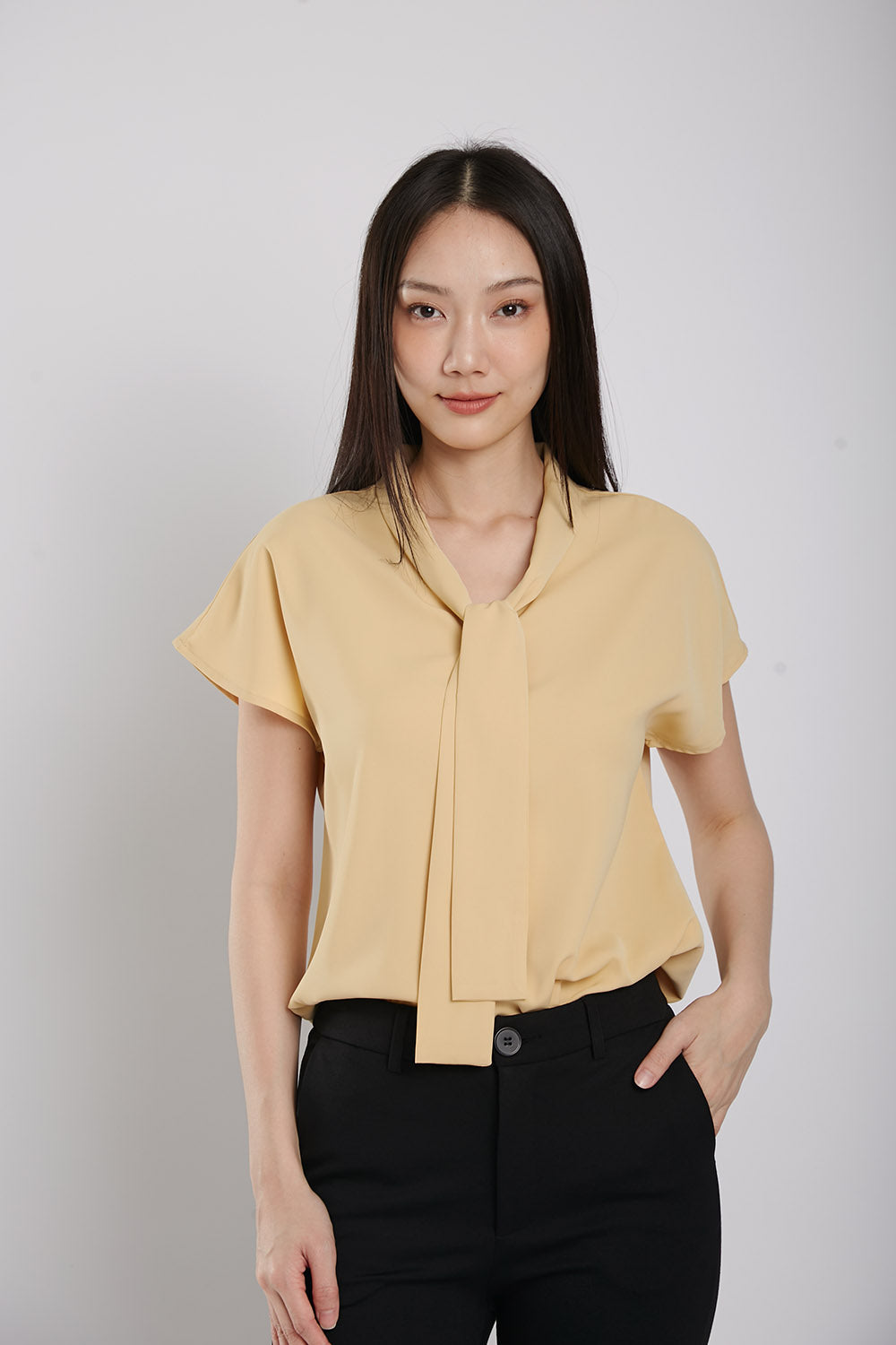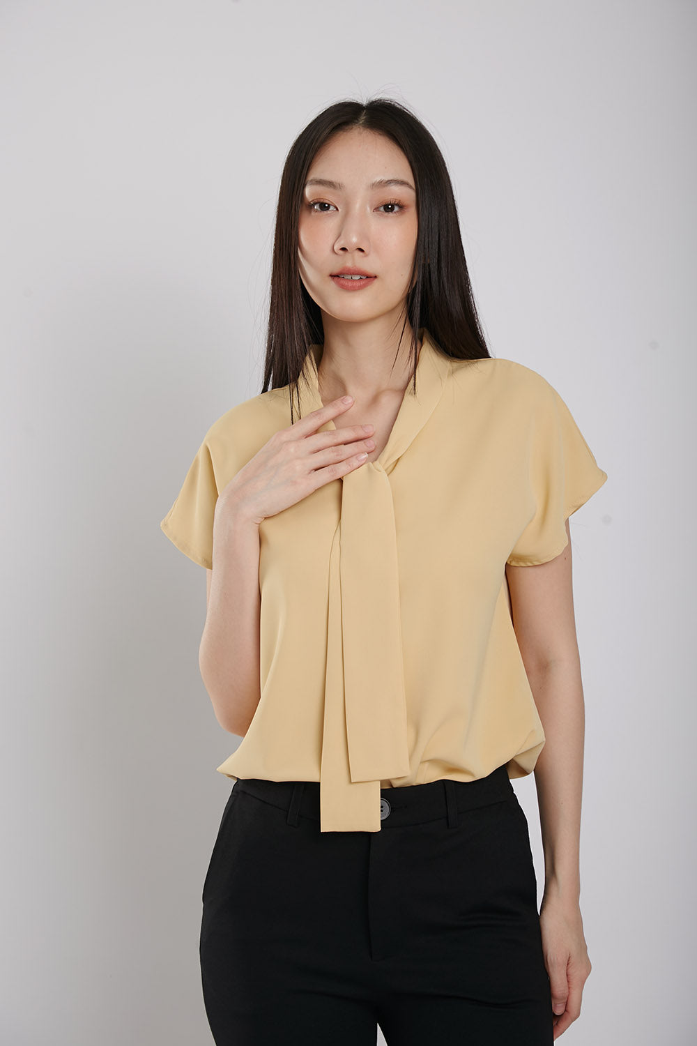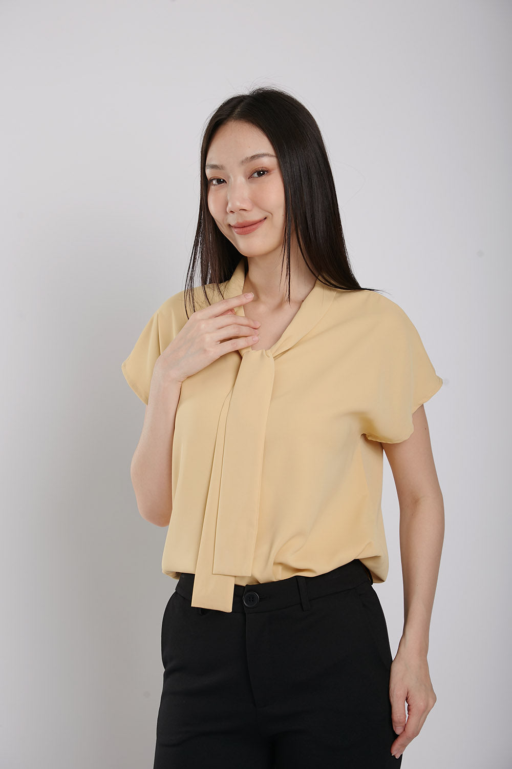 Expertly designed for effortless elegance, the Graciela Blouse features tie neck front details for a sophisticated touch. Made with easy iron-free fabric, this slip-on top offers both comfort and style, making it a versatile addition to any wardrobe.