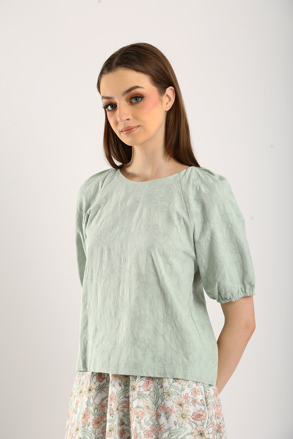 Experience the perfect mix of style and comfort with the Iman Blouse. Crafted from premium soft cotton fabric, this blouse provides a lightweight, breathable feel that keeps you cool and comfortable on warm days. The cotton is chosen for its durability, moisture-wicking properties, and smooth finish, ensuring lasting comfort. With subtle puff sleeves and a delicate jacquard texture, this blouse brings a touch of elegance to any outfit, making it ideal for both casual and refined occasions.