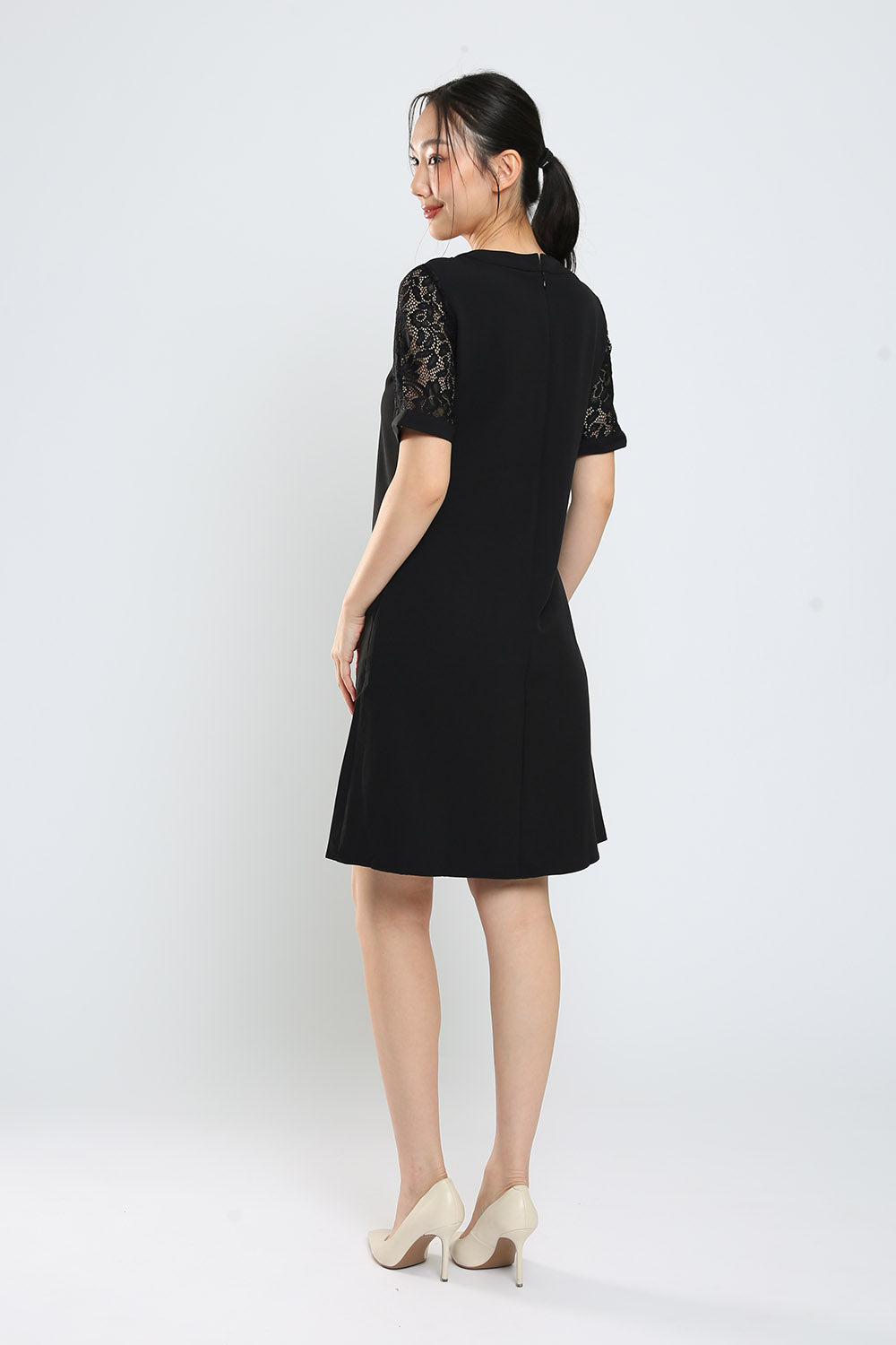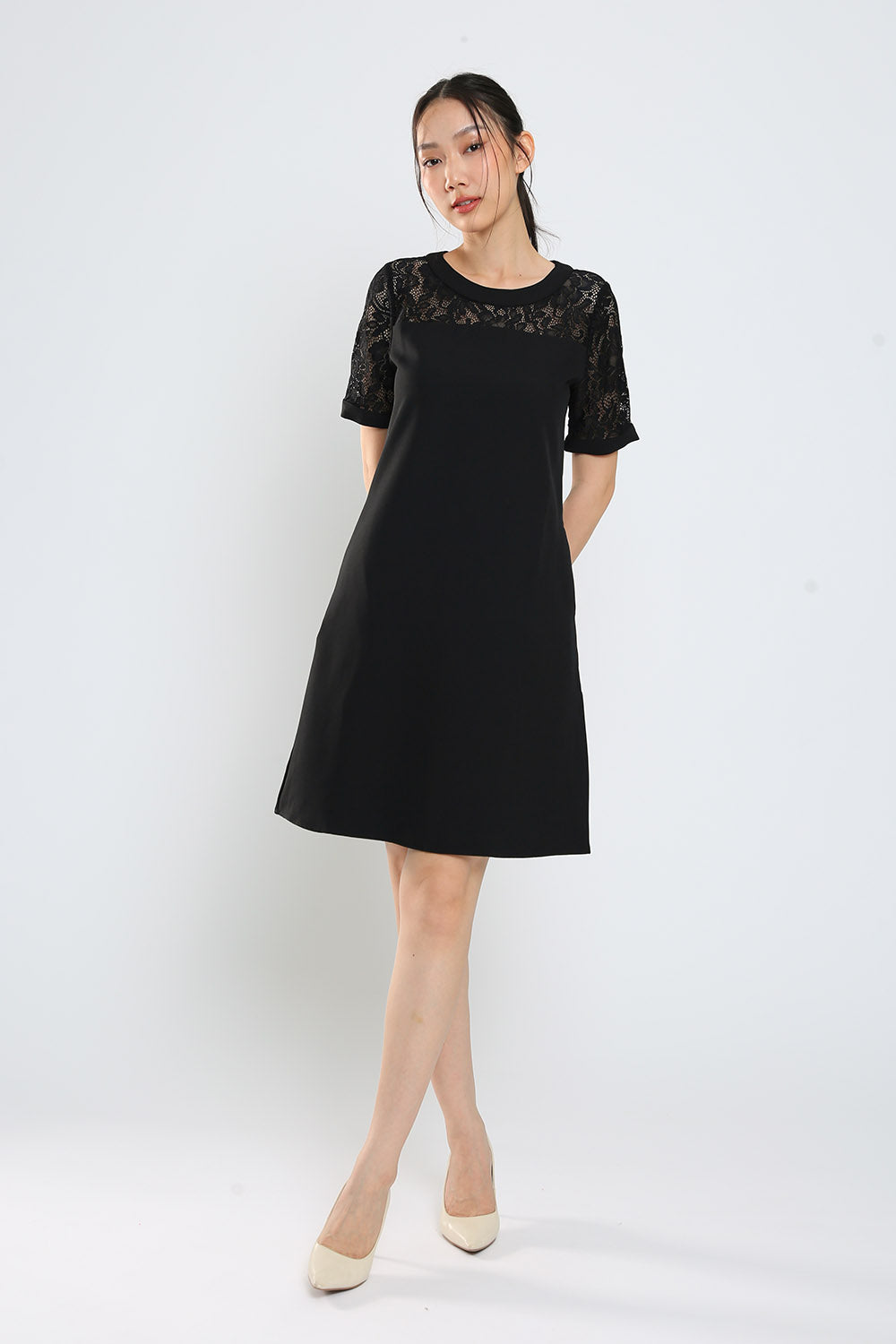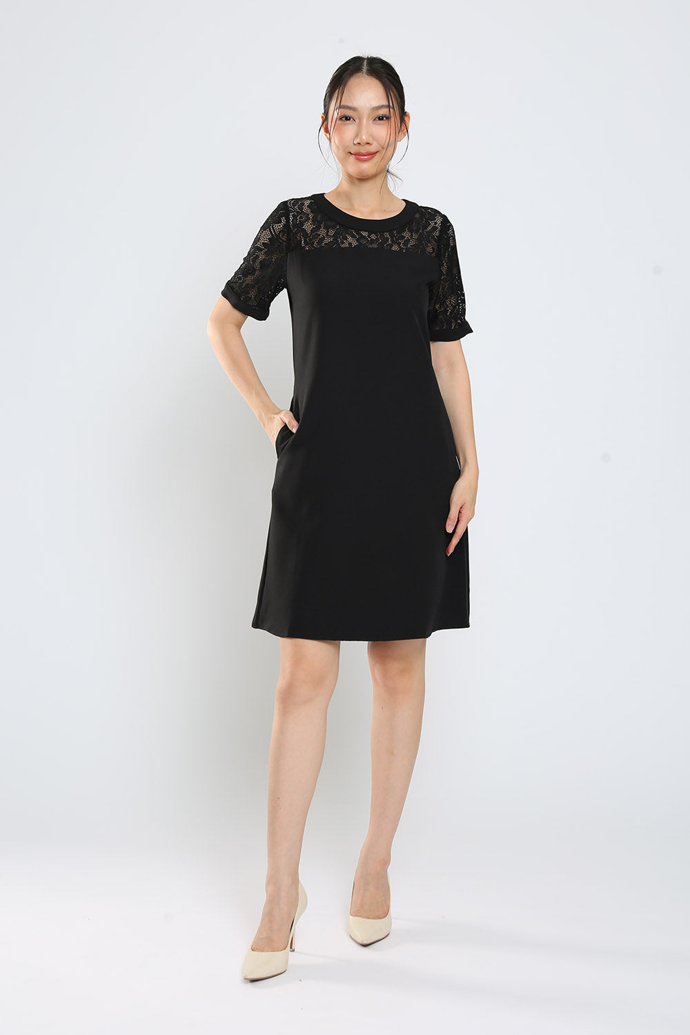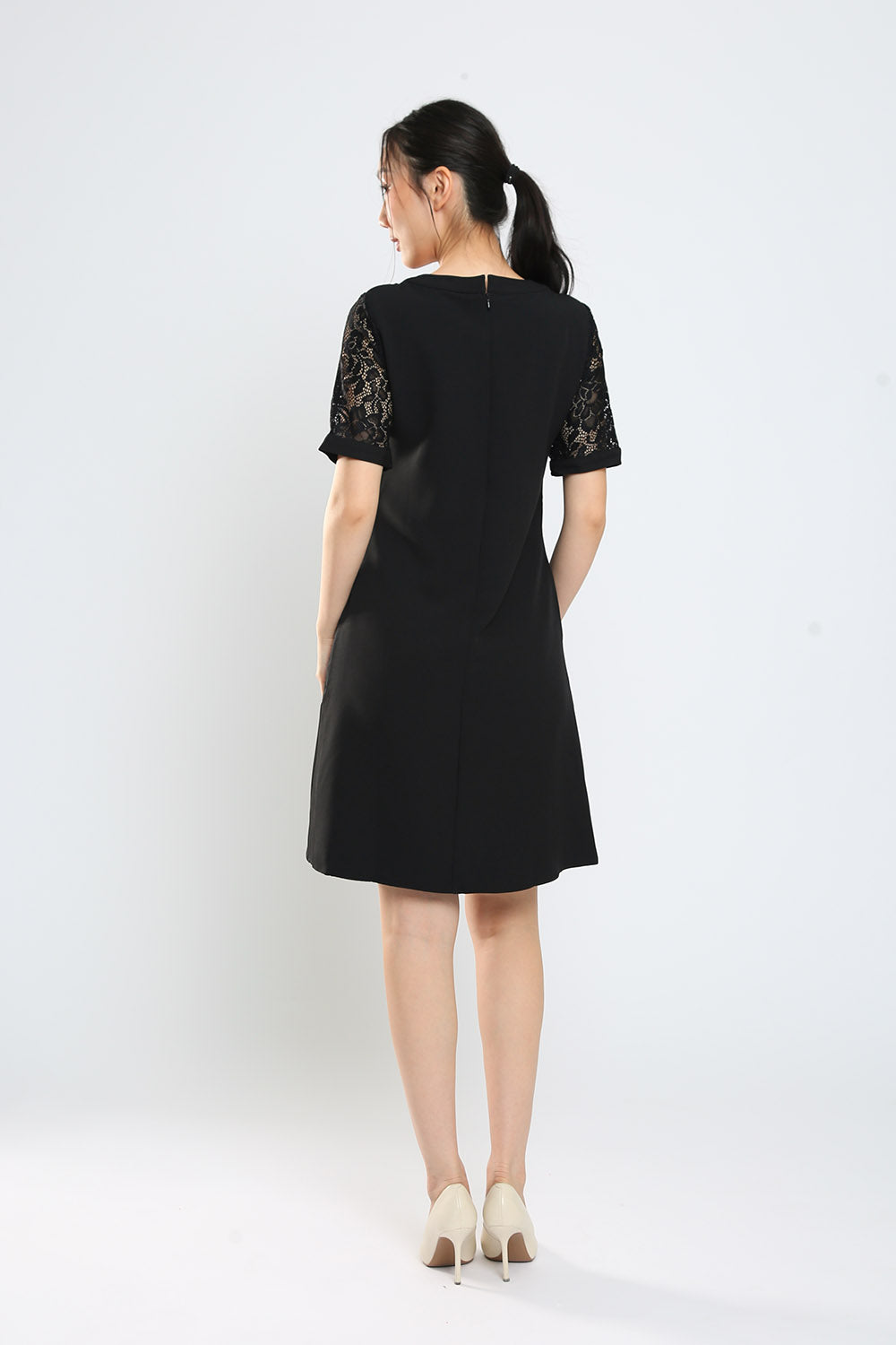 Transform your look with the Kadin Shift Dress in Black Lace. The daring front and sleeve lace details add a touch of edginess, while the back zip closure keeps you looking flawless. Plus, side pockets make it perfect for a night out on the town! Take a fashion risk and elevate your style.