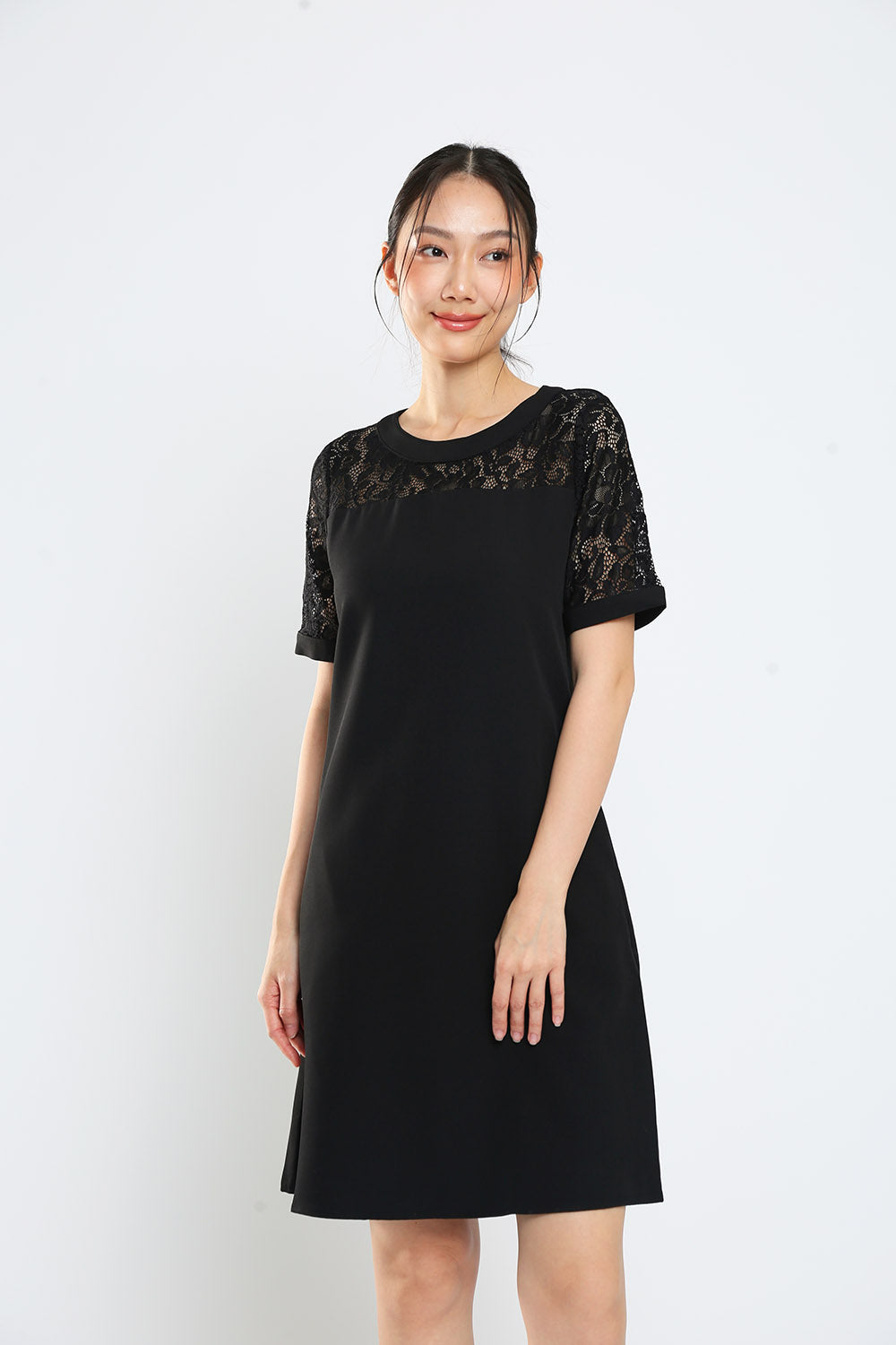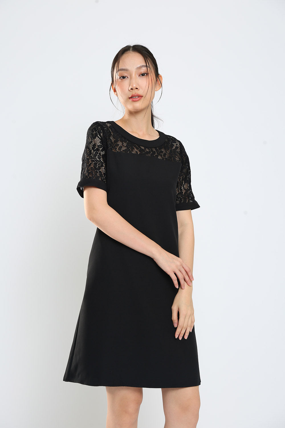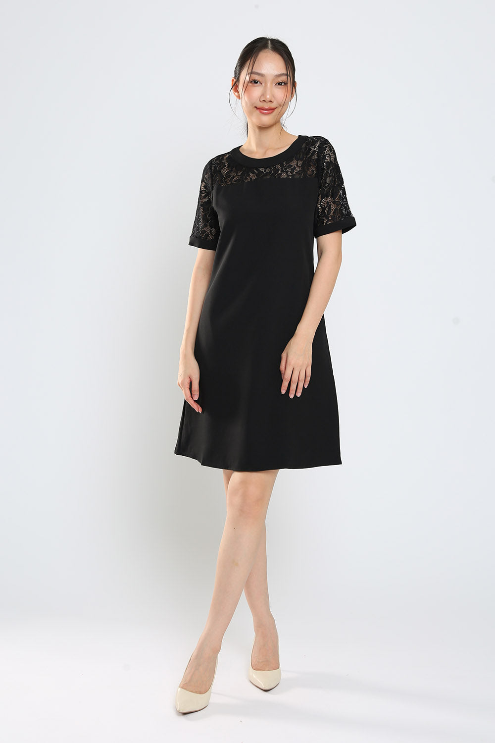 Transform your look with the Kadin Shift Dress in Black Lace. The daring front and sleeve lace details add a touch of edginess, while the back zip closure keeps you looking flawless. Plus, side pockets make it perfect for a night out on the town! Take a fashion risk and elevate your style.