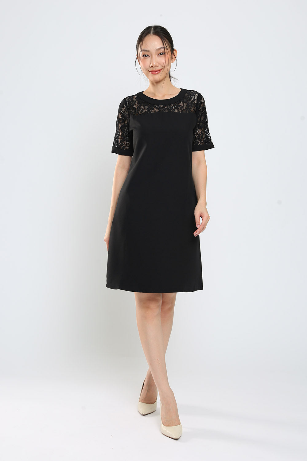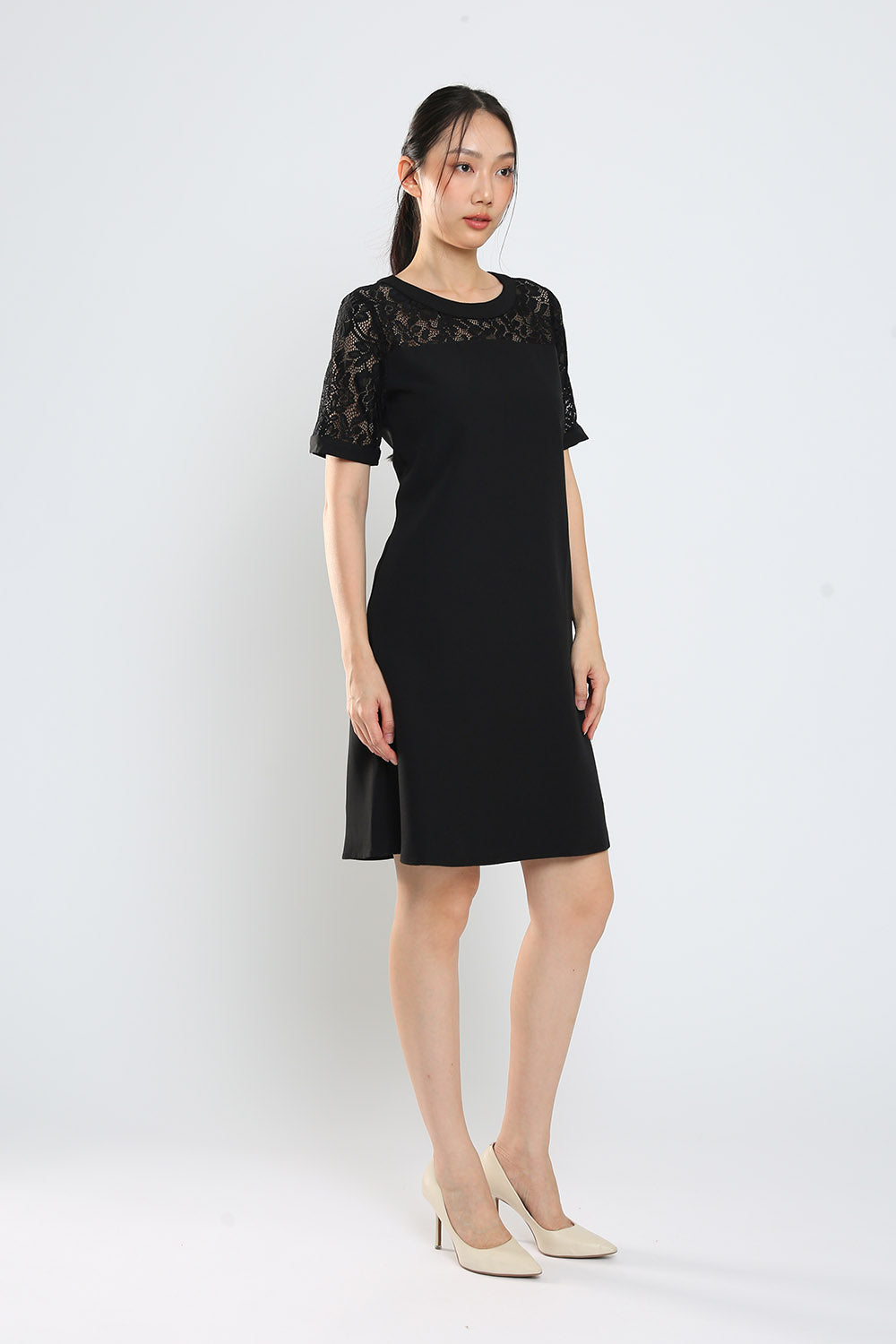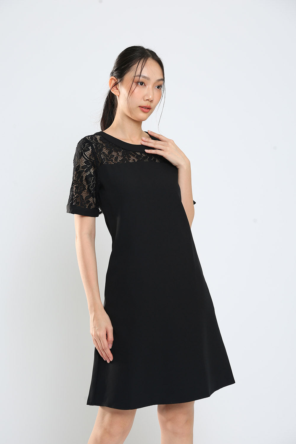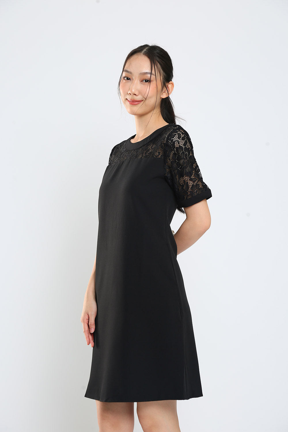 Transform your look with the Kadin Shift Dress in Black Lace. The daring front and sleeve lace details add a touch of edginess, while the back zip closure keeps you looking flawless. Plus, side pockets make it perfect for a night out on the town! Take a fashion risk and elevate your style.