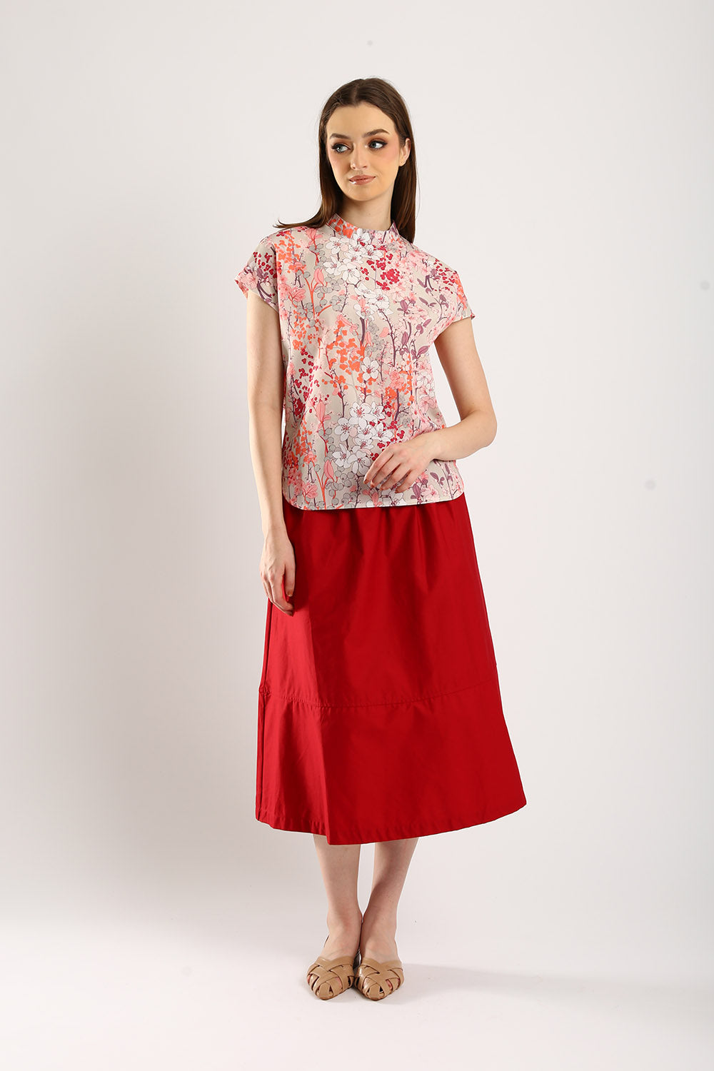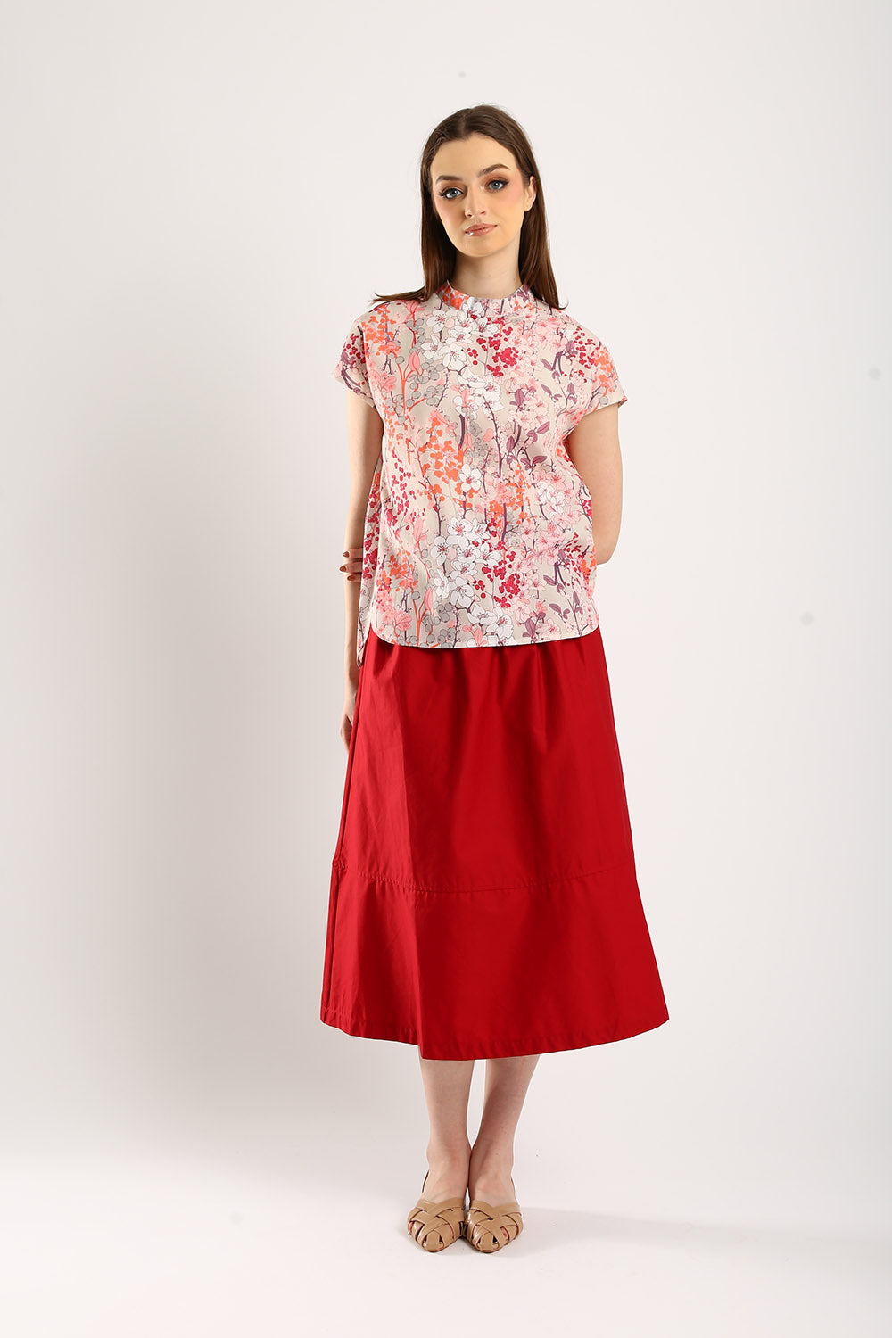 Astrid Floral Cotton Top in Mandarin