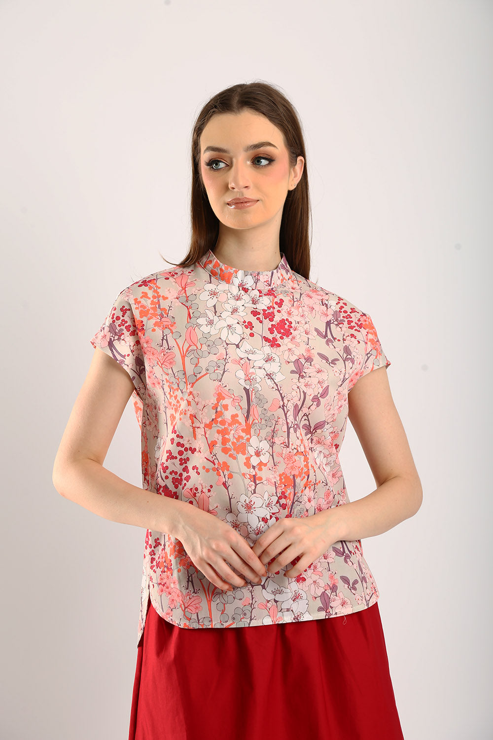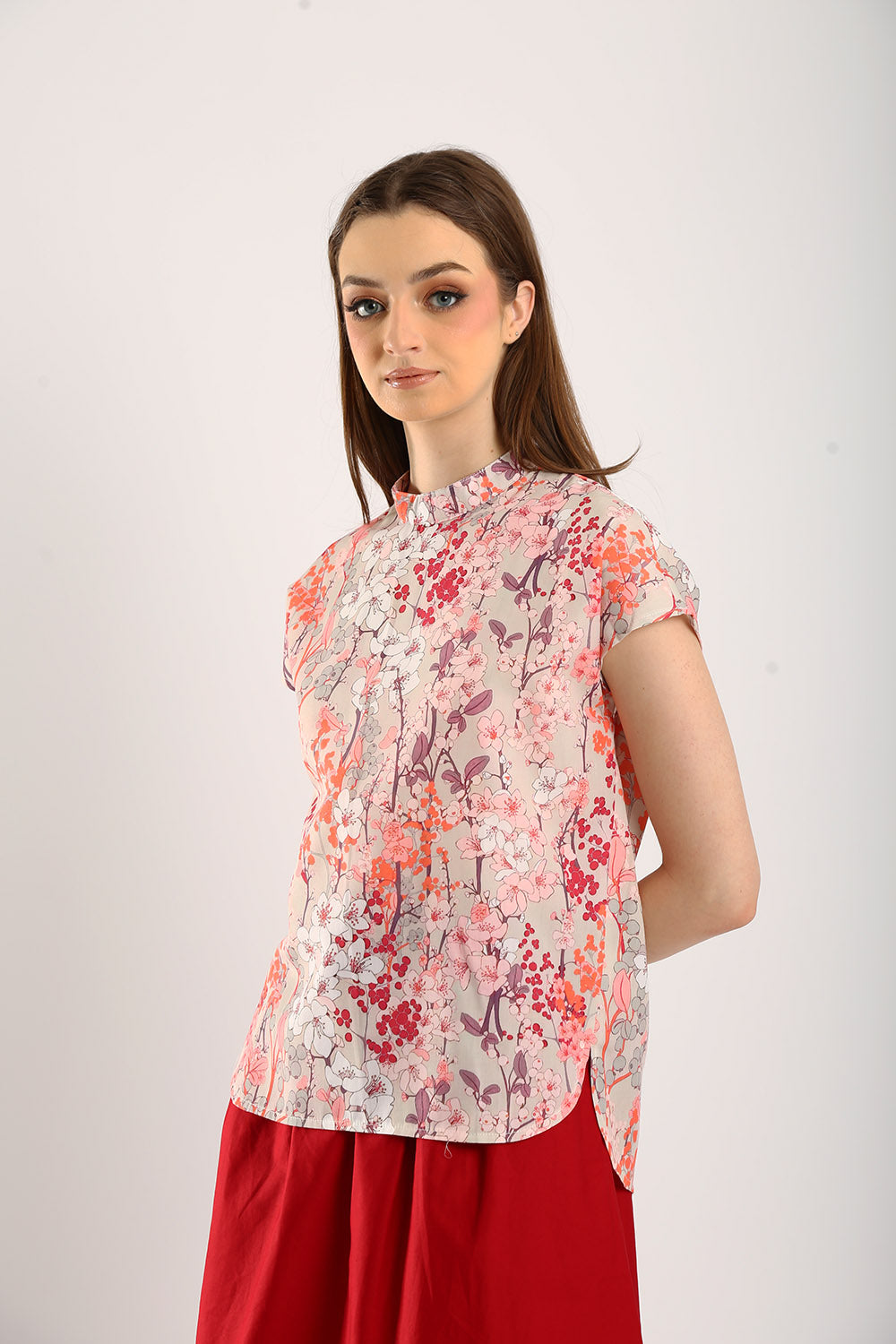 Brighten up your wardrobe with the Lexi Floral Cotton Blend Top. This lightweight, breathable top features a beautiful floral print in shades of pink, coral, and lavender, creating a fresh, feminine aesthetic. Designed with a chic mock neckline and cap sleeves, it offers a polished yet relaxed fit that’s perfect for both casual outings and dressier occasions. Made from a soft cotton blend, it drapes comfortably, making it ideal for warm days. Pair it with tailored pants or a flowy skirt for a look that’s effortlessly elegant and timeless.