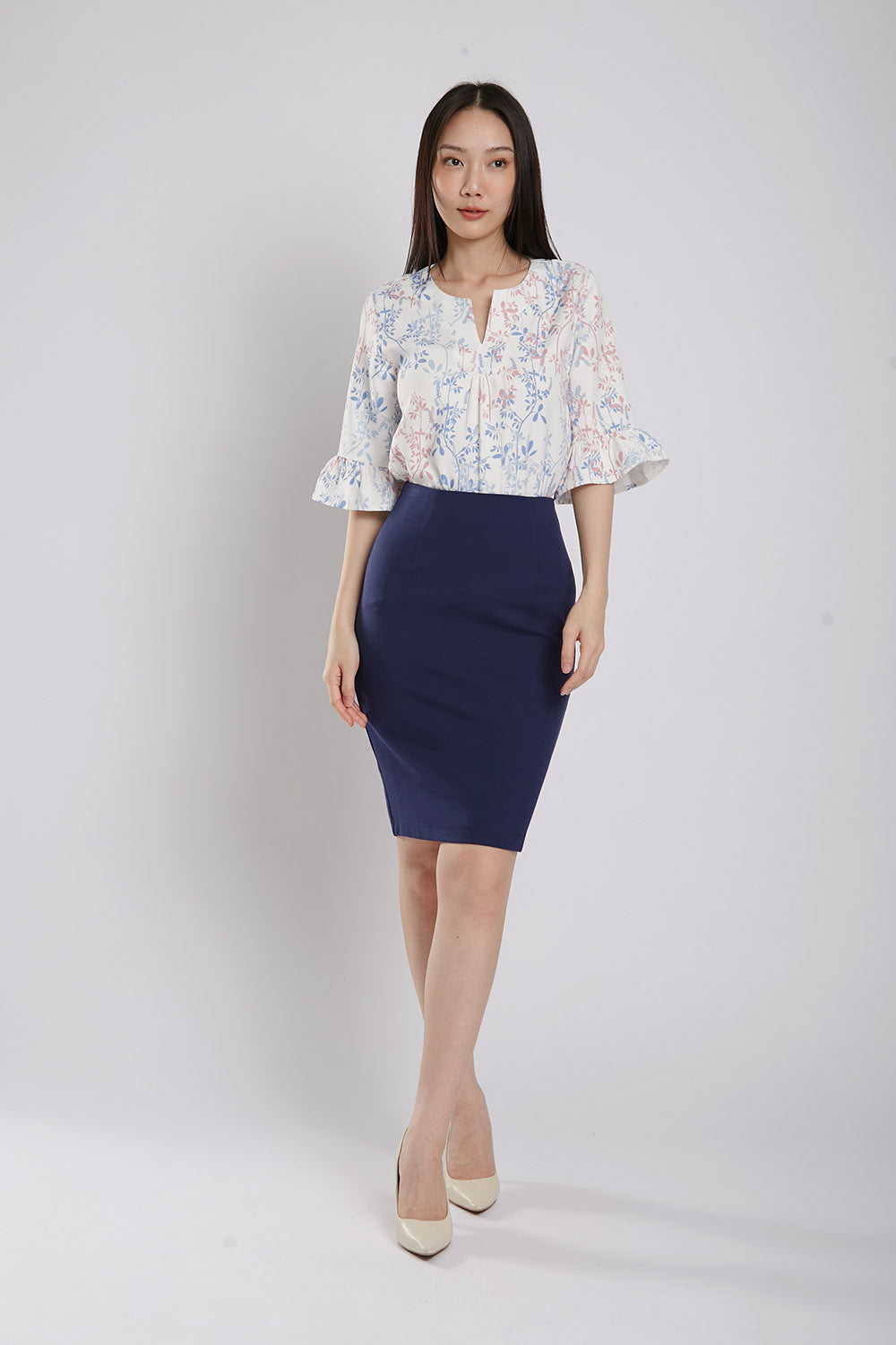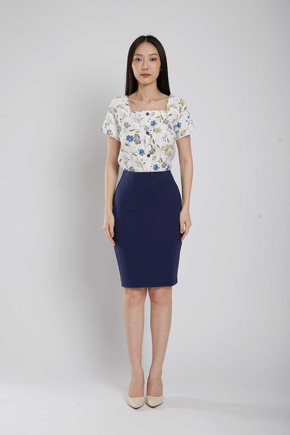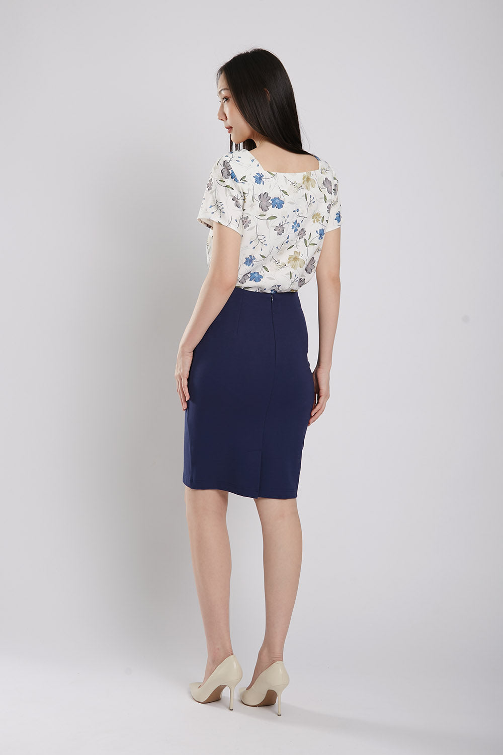 Lisette Pencil Ultra-Stretch Skirt in Navy Blue