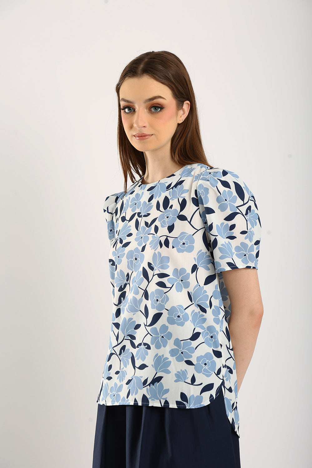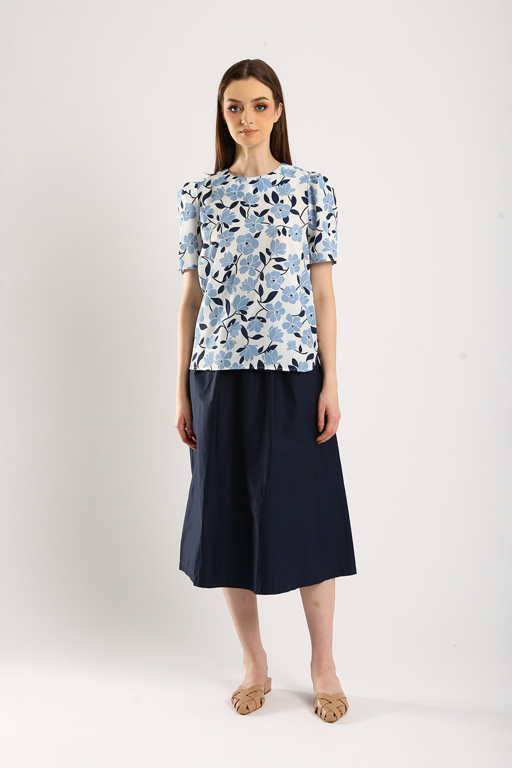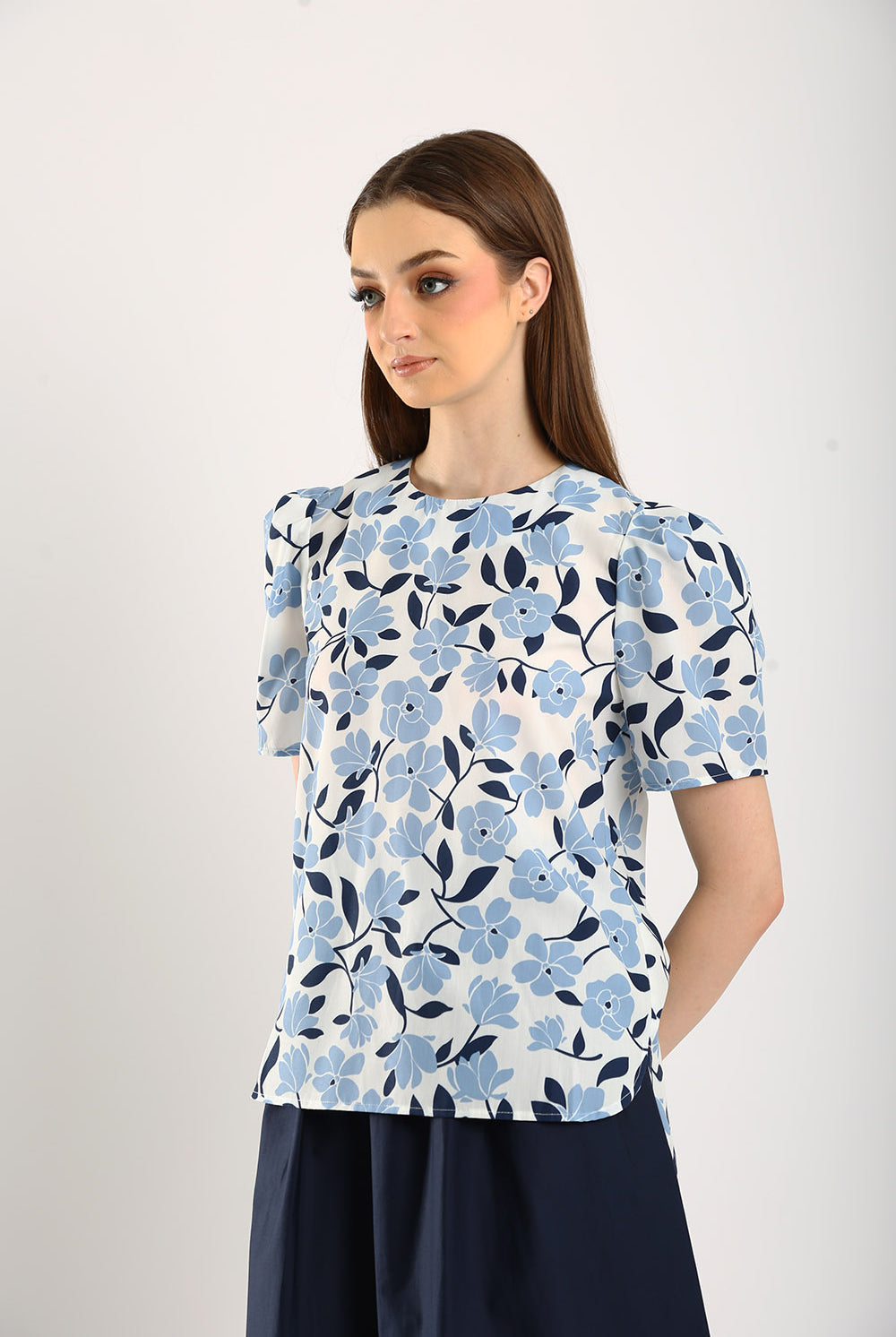 The Azure top is a refreshing take on everyday elegance. Crafted from a breathable cotton-linen blend, this top offers a perfect balance of comfort and sophistication. Featuring a delicate blue-and-white floral print, it exudes a fresh, timeless charm. The puff sleeves add a touch of femininity, while the classic round neckline makes it versatile for both casual and dressy occasions.