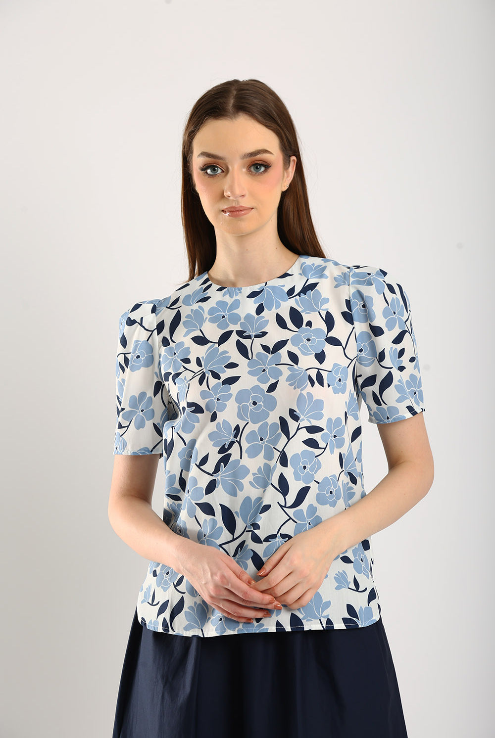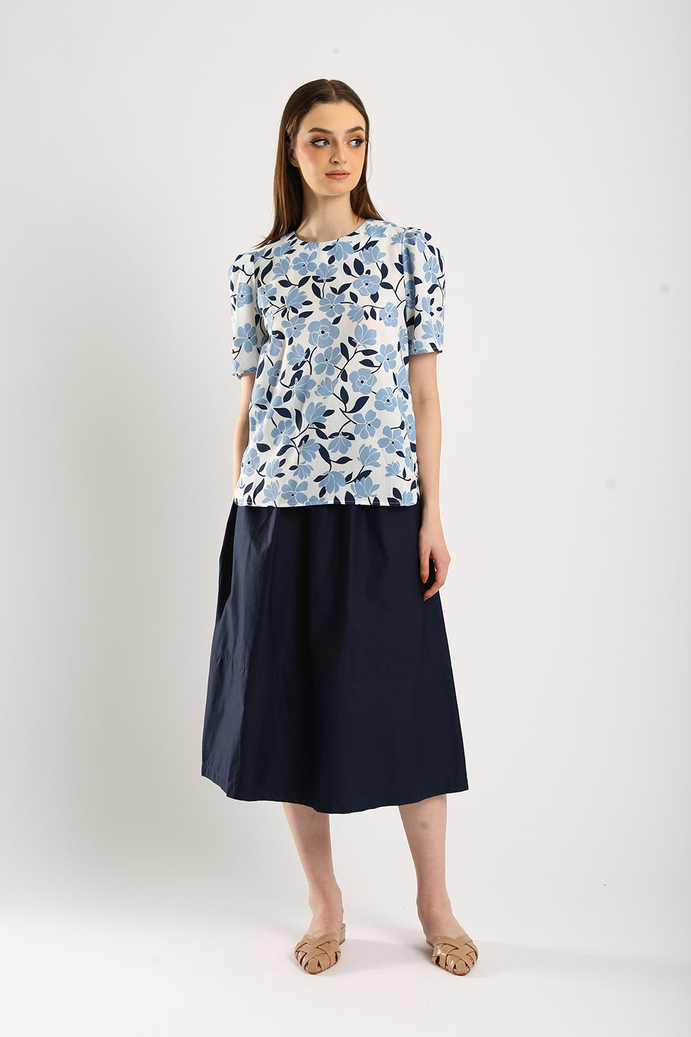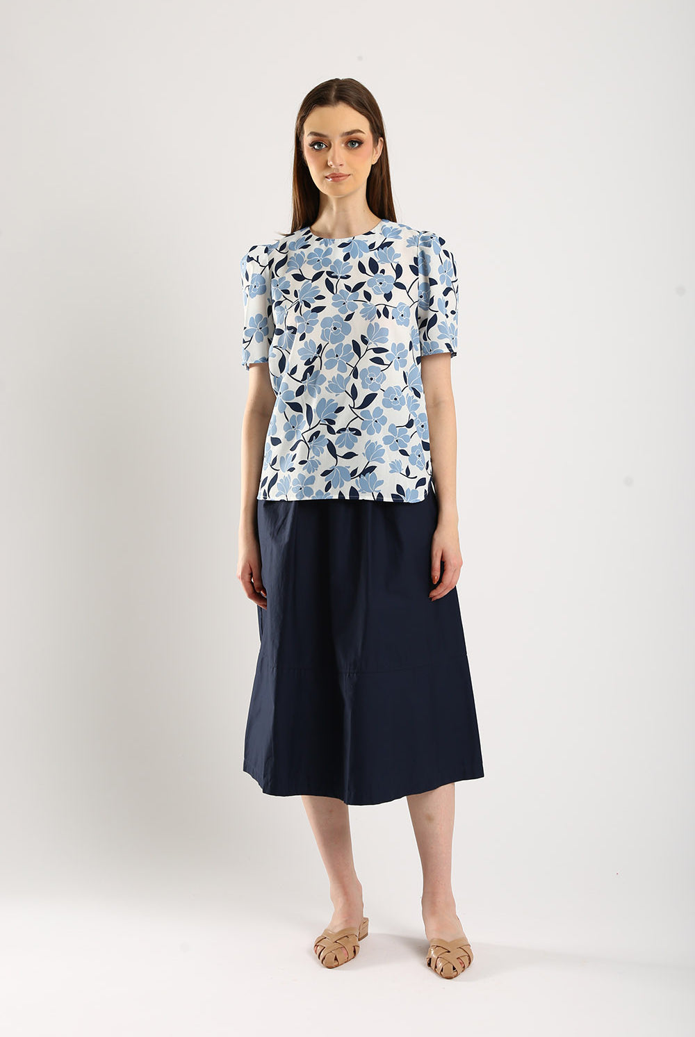 The Azure top is a refreshing take on everyday elegance. Crafted from a breathable cotton-linen blend, this top offers a perfect balance of comfort and sophistication. Featuring a delicate blue-and-white floral print, it exudes a fresh, timeless charm. The puff sleeves add a touch of femininity, while the classic round neckline makes it versatile for both casual and dressy occasions.
