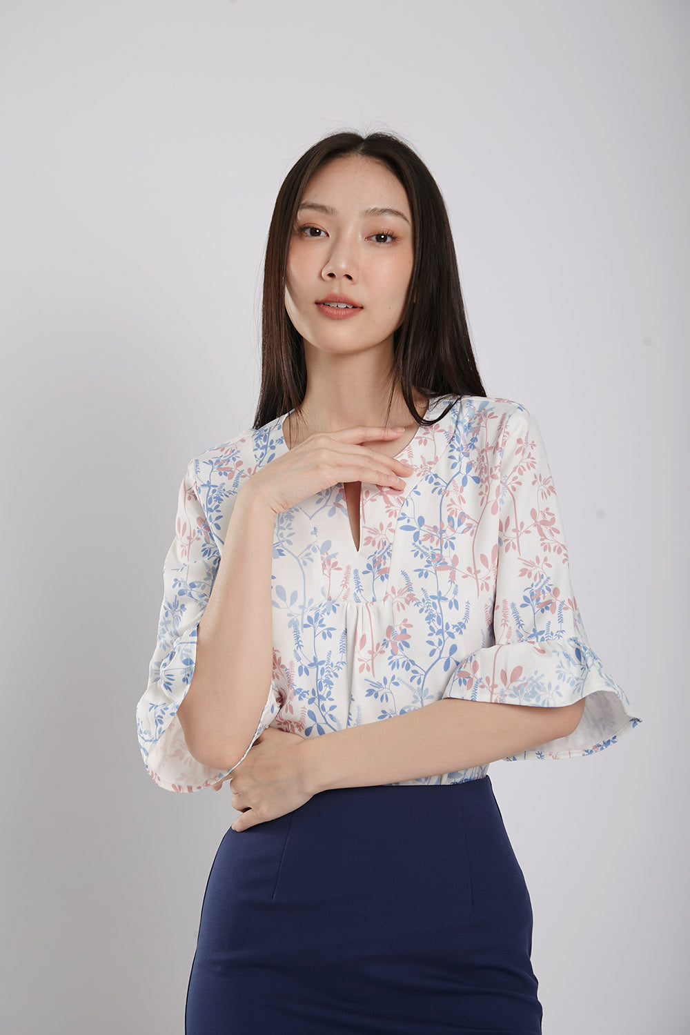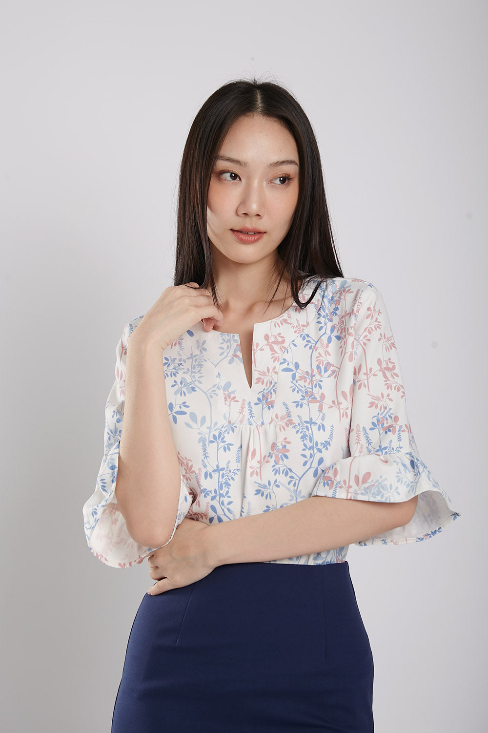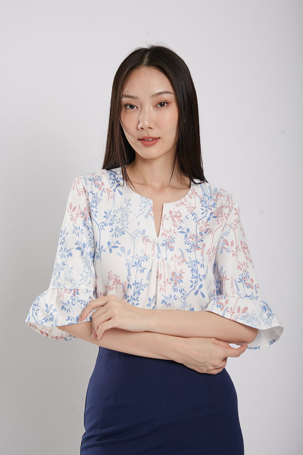 The Sevynn Blouse features elegant bell sleeves, making it a versatile addition to your wardrobe. Crafted from premium polyester fabric, this blouse offers comfort and style in one. With its slip on design, getting dressed has never been easier. Upgrade your wardrobe with this stylish and easy-to-wear blouse.