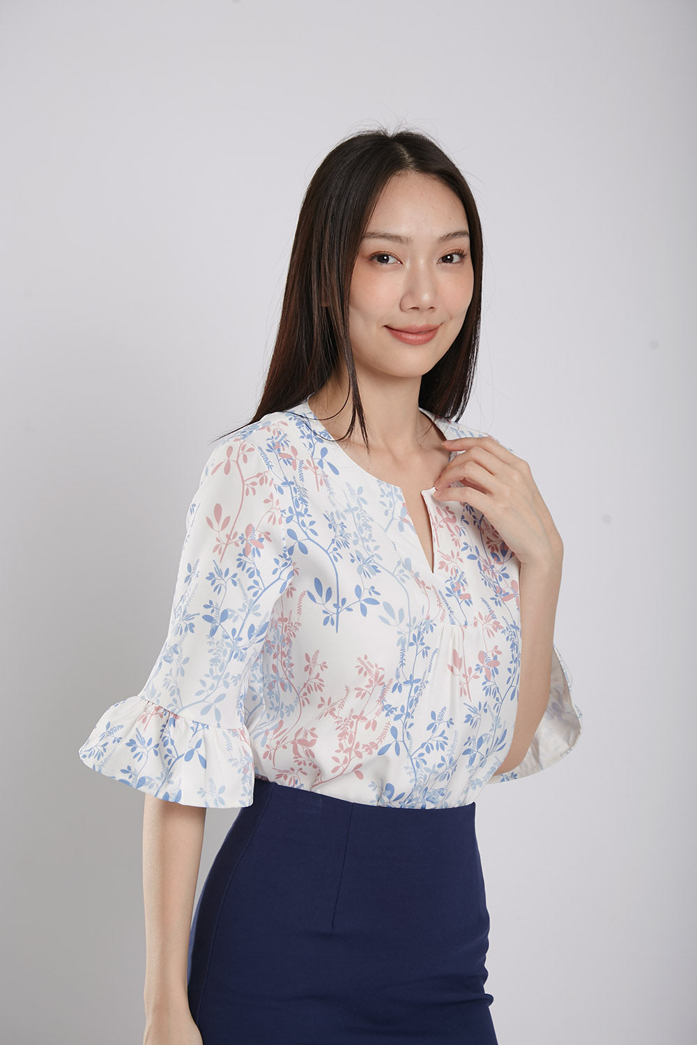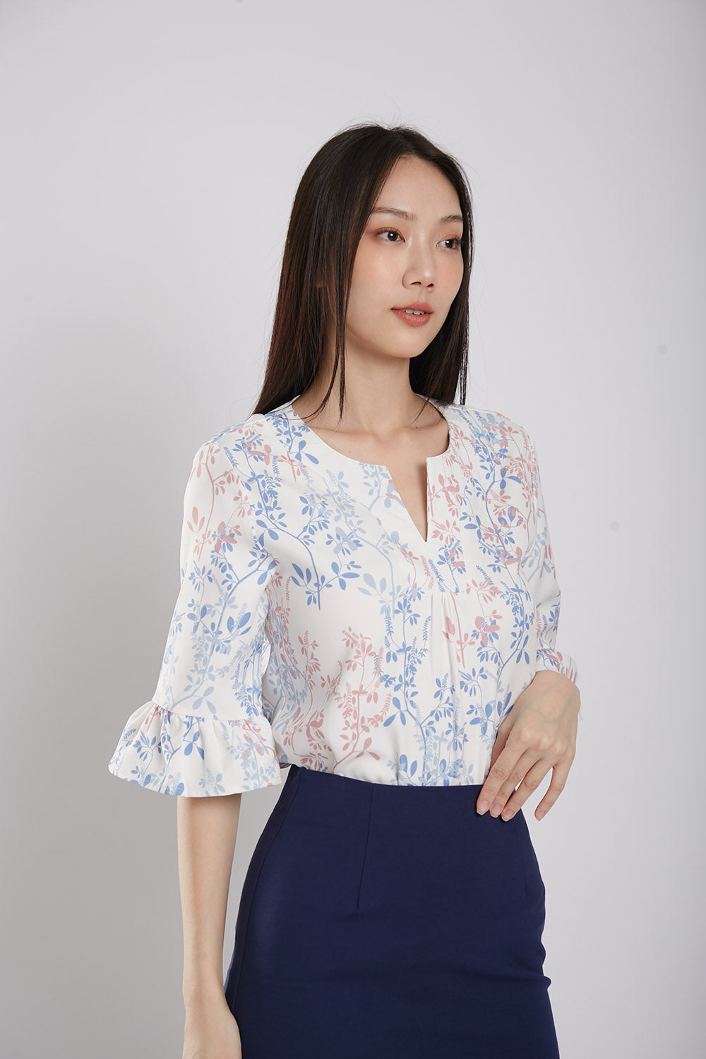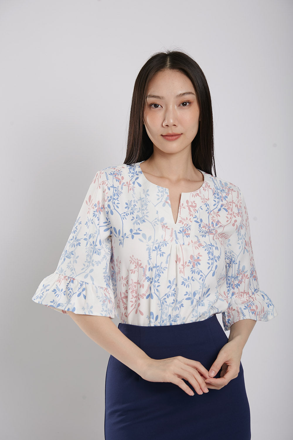 The Sevynn Blouse features elegant bell sleeves, making it a versatile addition to your wardrobe. Crafted from premium polyester fabric, this blouse offers comfort and style in one. With its slip on design, getting dressed has never been easier. Upgrade your wardrobe with this stylish and easy-to-wear blouse.