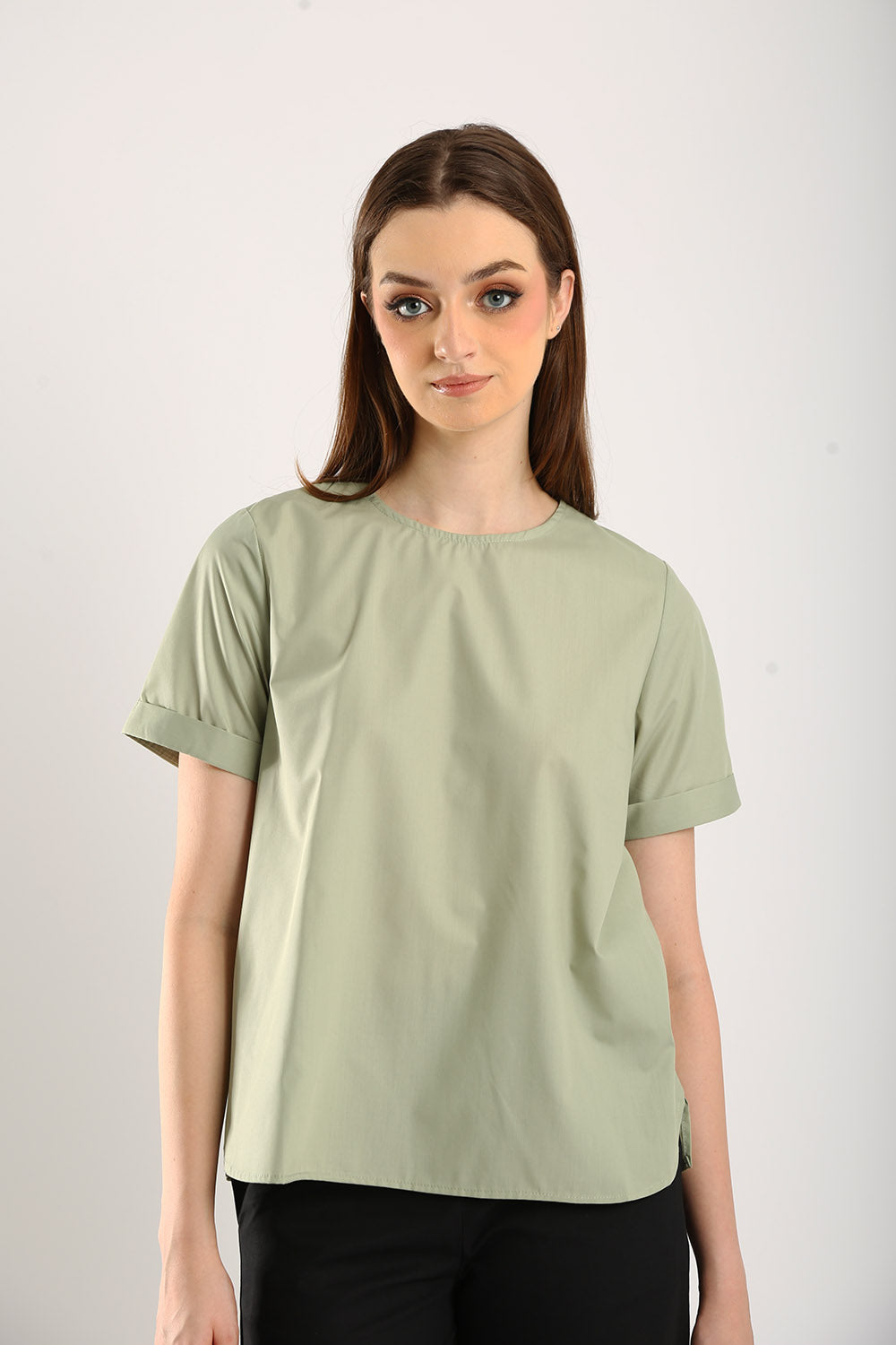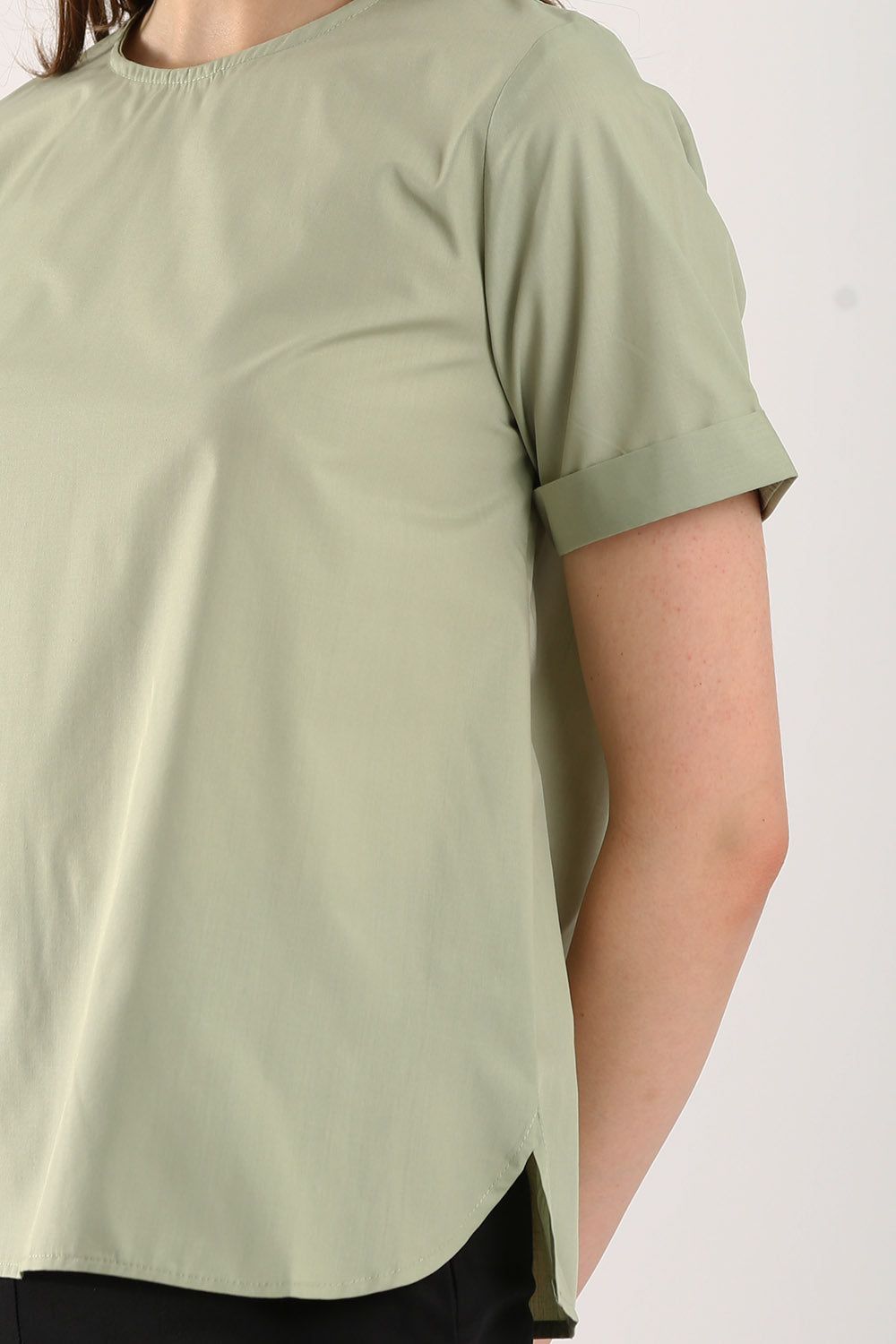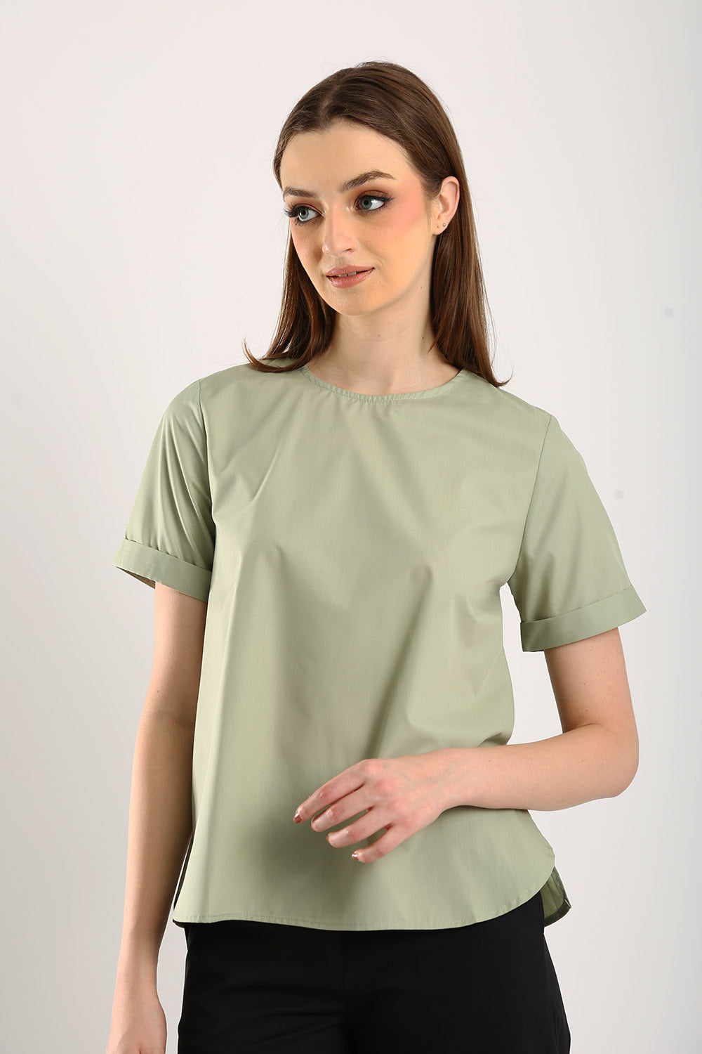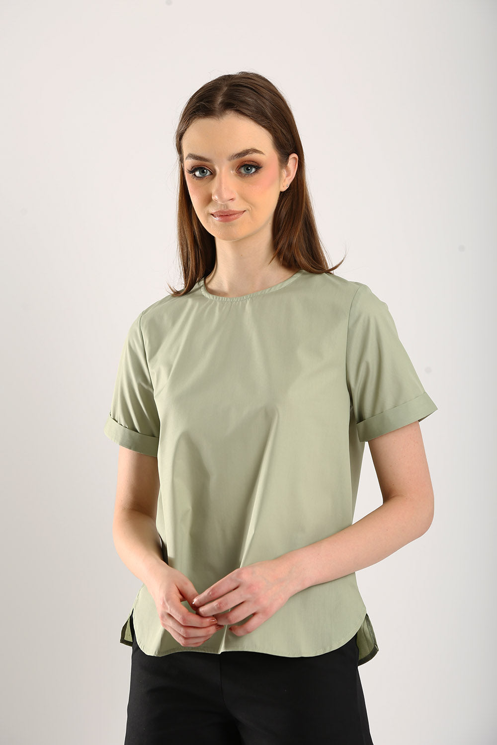 Elevate your wardrobe with the Surin Folded Cuff Blouse in bold red. Made from a breathable cotton-blend fabric, it features a round neckline, chic folded cuffs, and a high-low hemline with side slits. Perfect for versatile styling—pair with skirts for a feminine touch or trousers for a polished look.
