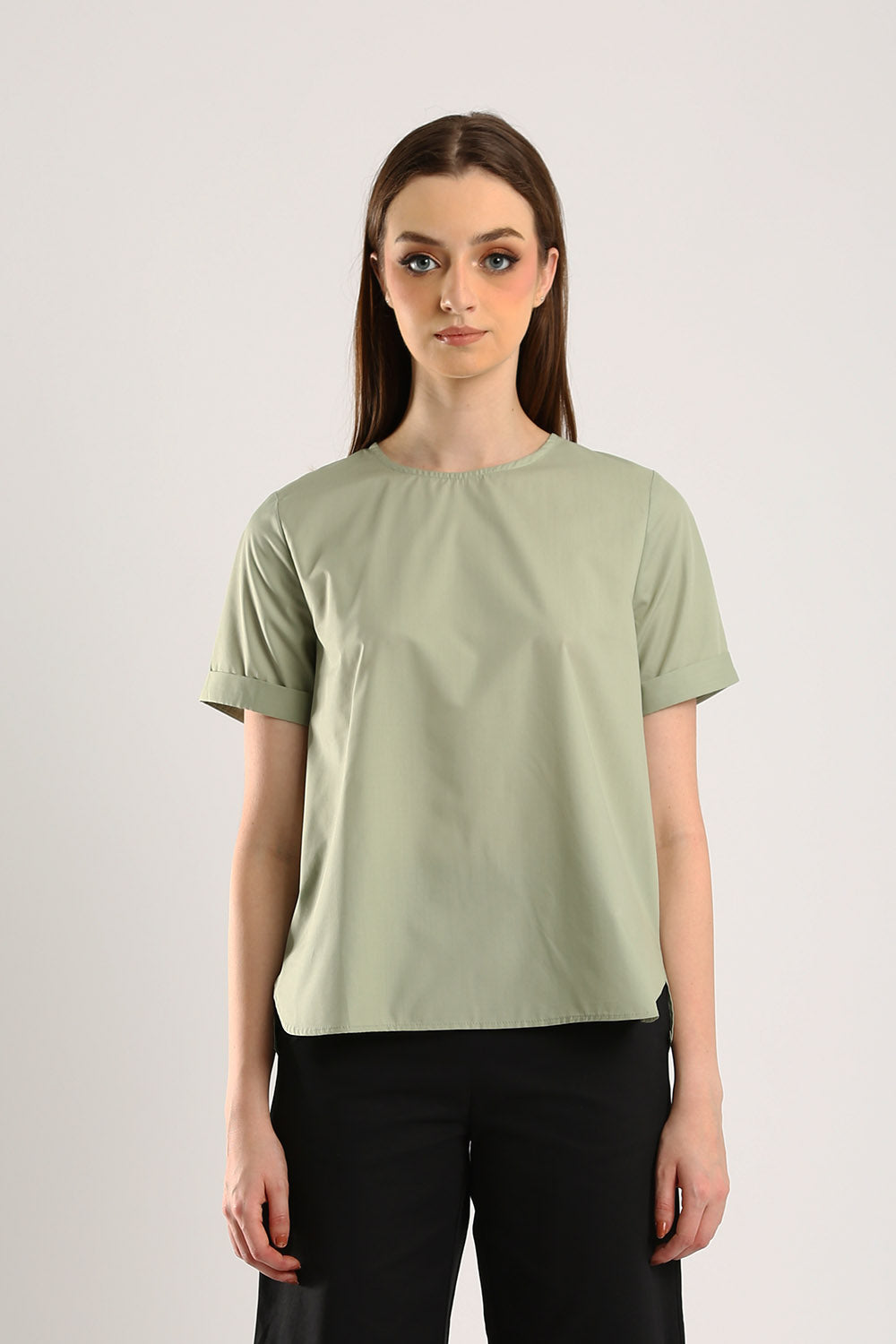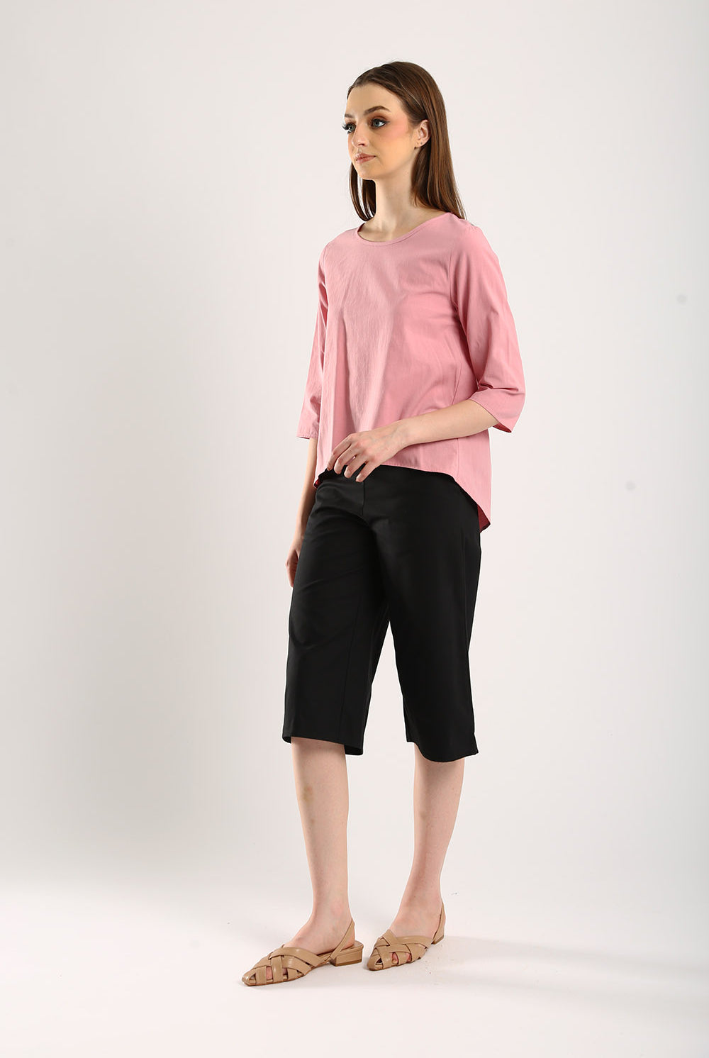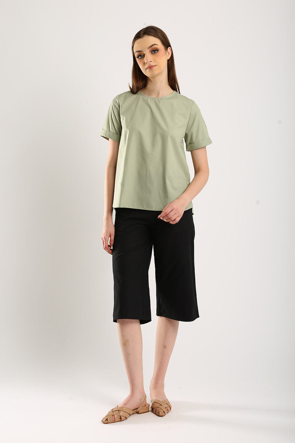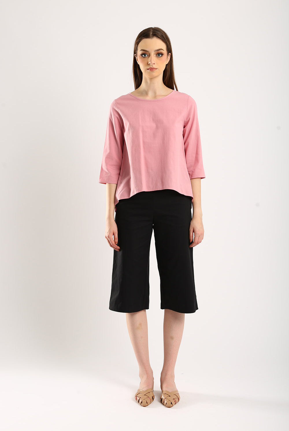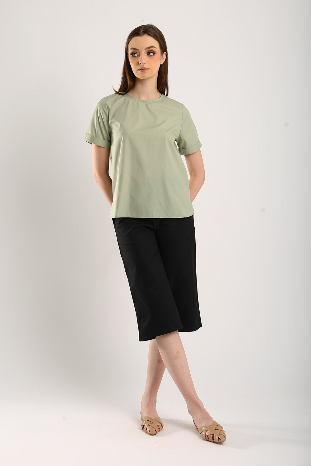 Elevate your wardrobe with the Surin Folded Cuff Blouse in bold red. Made from a breathable cotton-blend fabric, it features a round neckline, chic folded cuffs, and a high-low hemline with side slits. Perfect for versatile styling—pair with skirts for a feminine touch or trousers for a polished look.