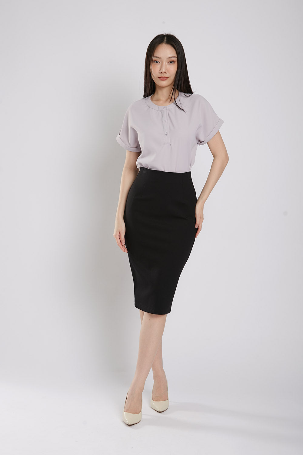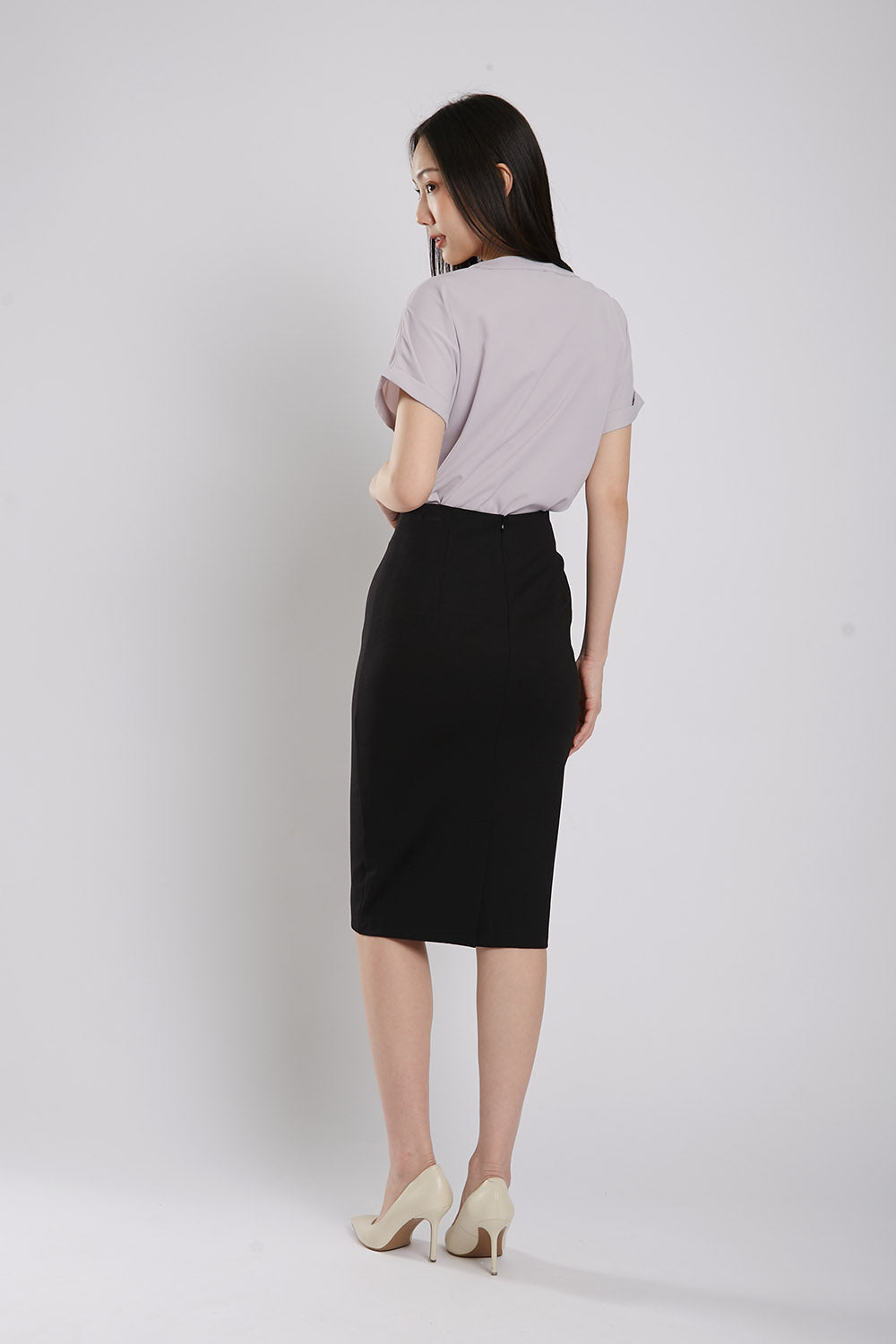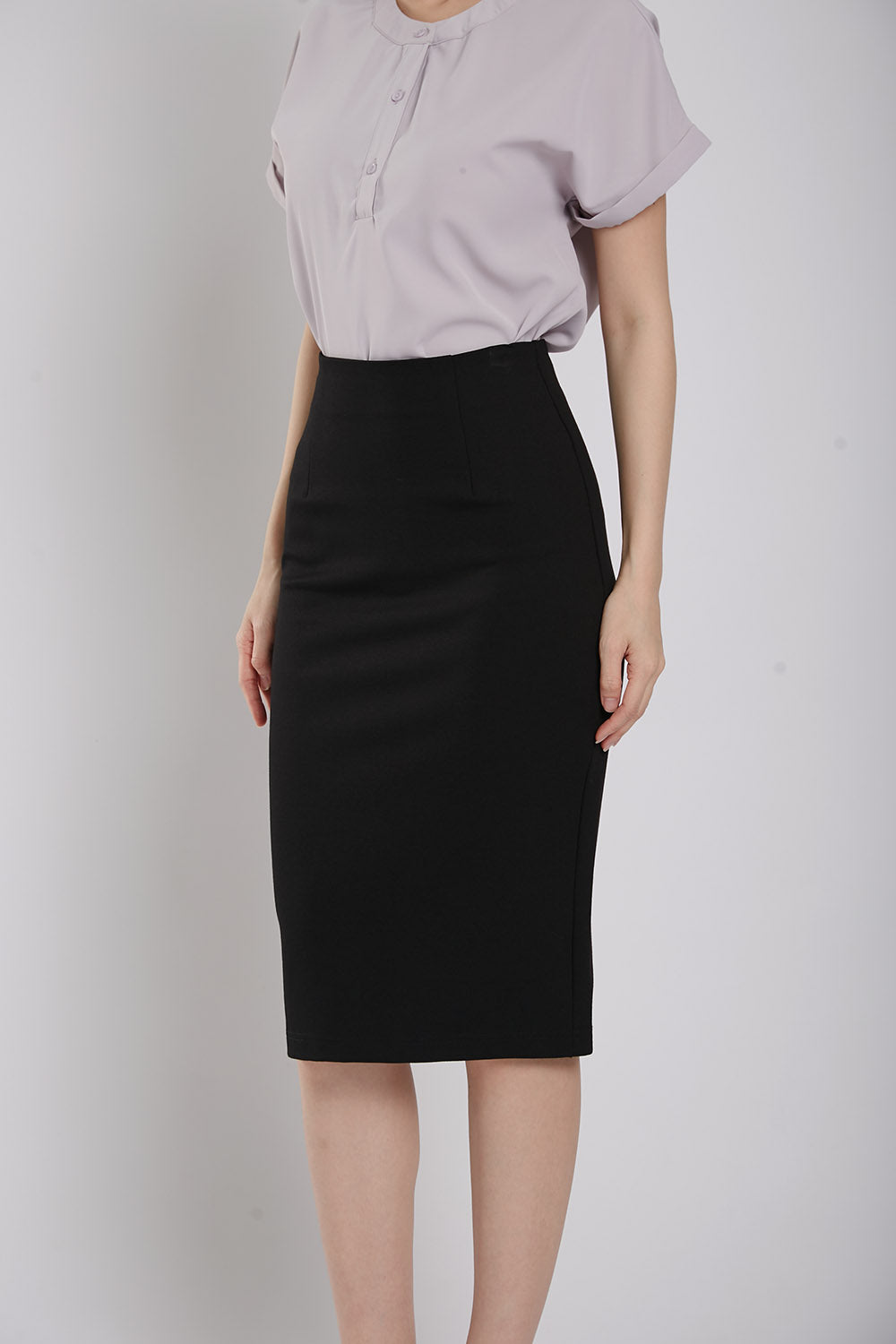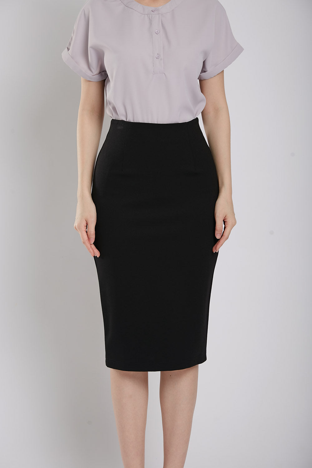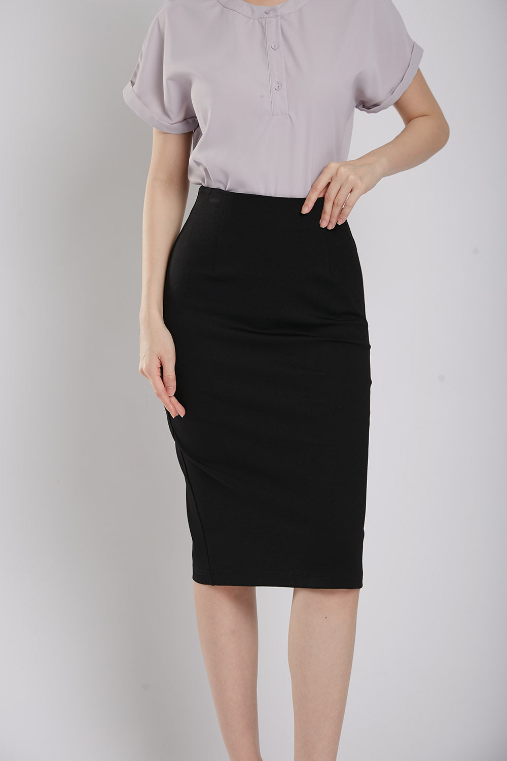 Thysha Ultra-Stretch Pencil Skirt in Black