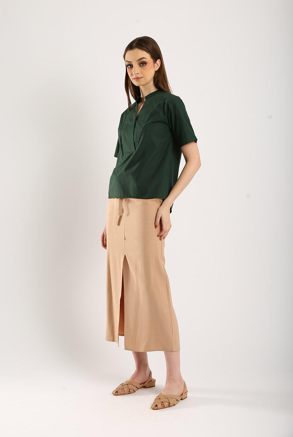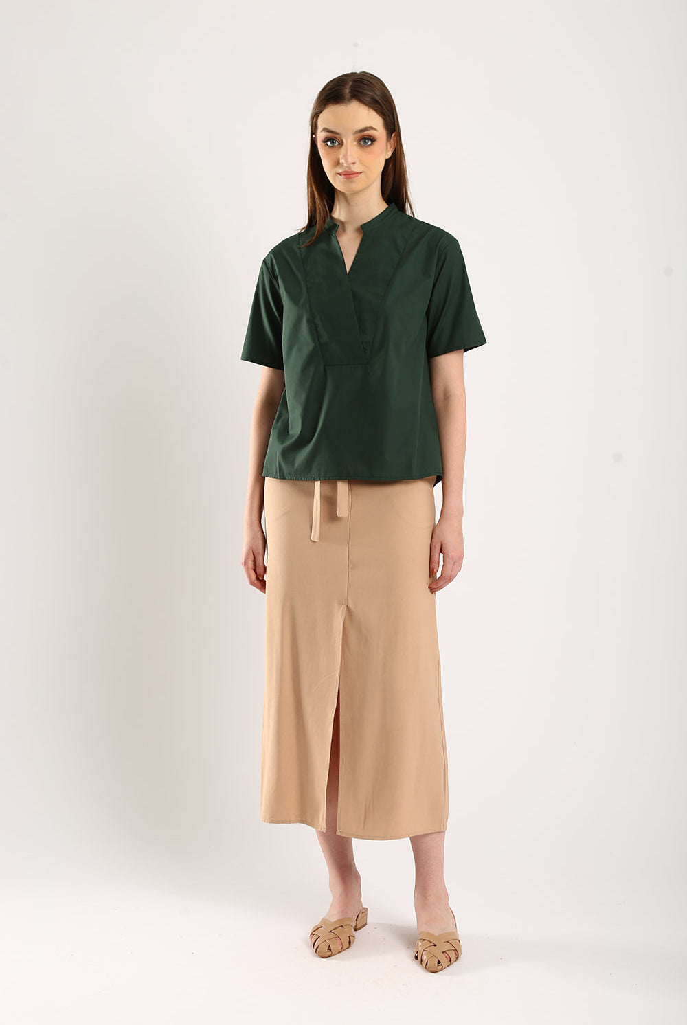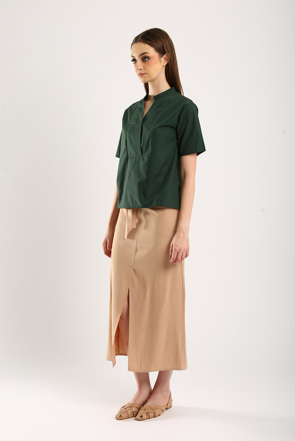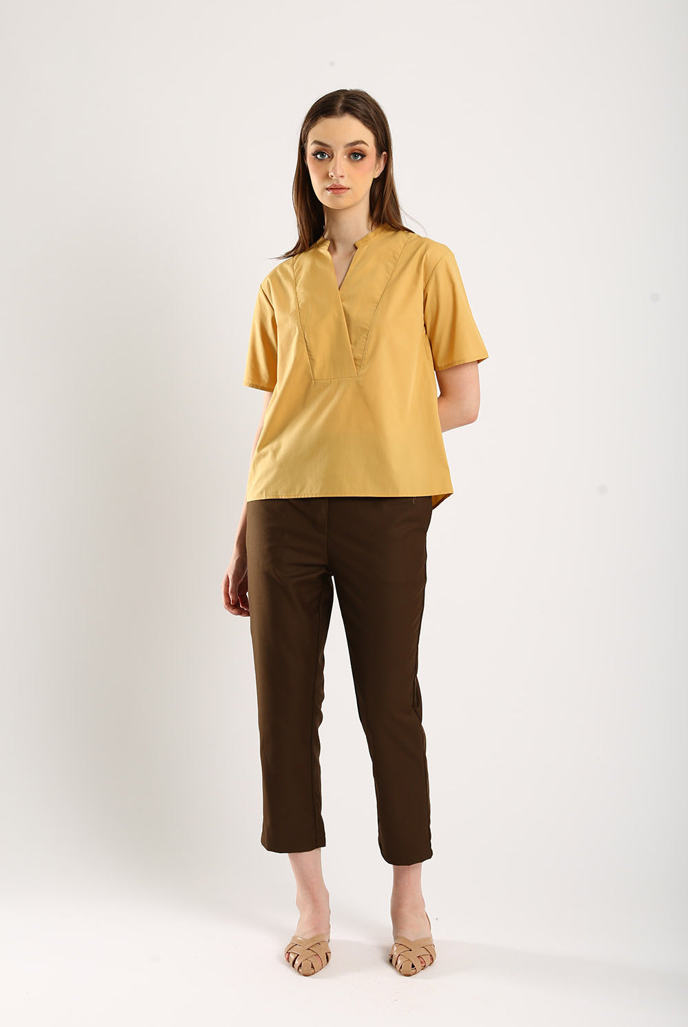 Add a touch of elegance to your everyday wardrobe with the Veera V-Neck Blouse. This versatile mustard blouse features a deep V-neckline with a structured collar, creating a chic and modern silhouette. Made from cotton blend fabric, it combines comfort and durability for a lasting addition to your collection. The relaxed fit and short sleeves make it perfect for warm weather, while the clean lines and minimalist design ensure effortless styling. Pair it with tailored pants or jeans for a refined, casual look that works from day to night.