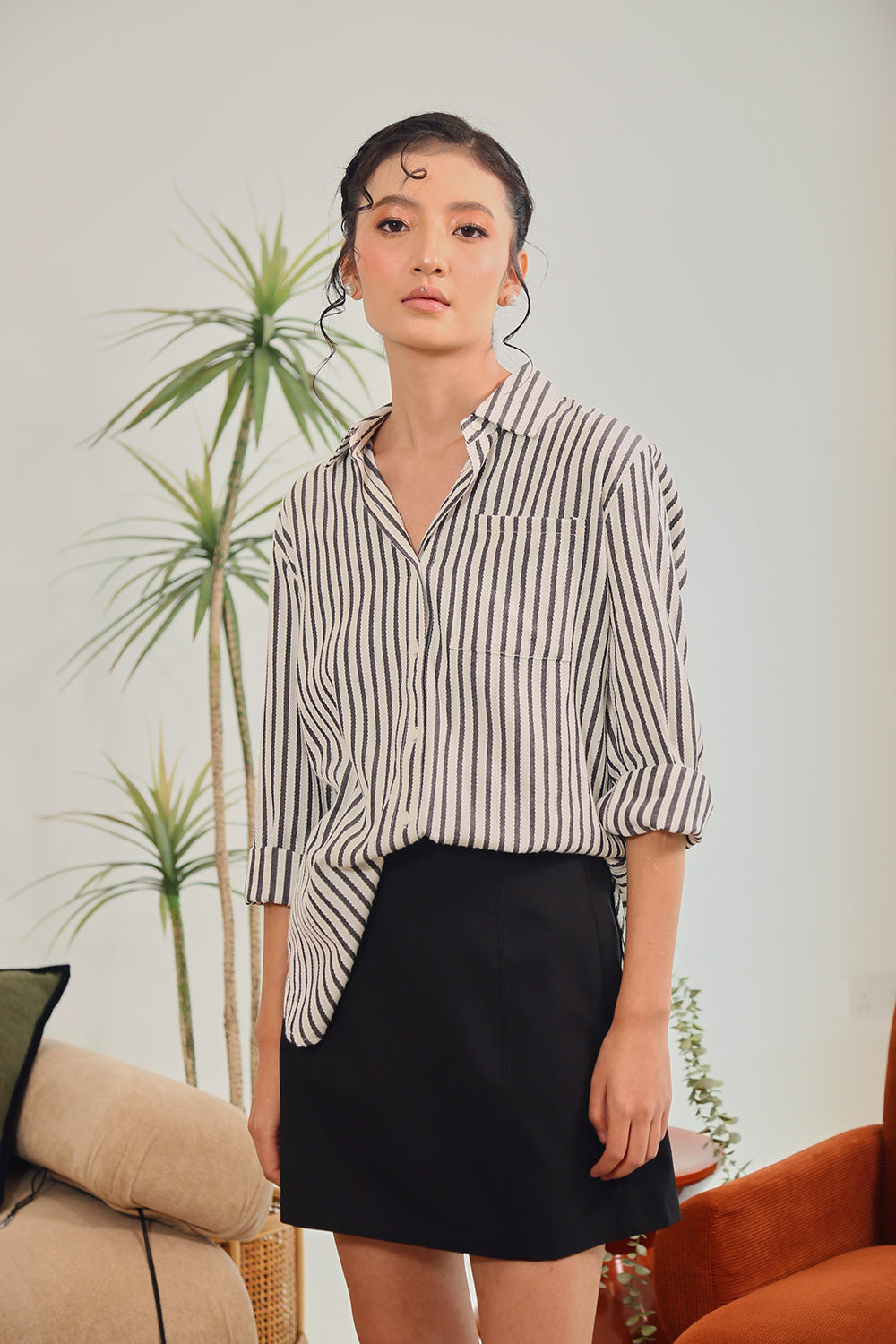 The Amilea Striped Shirt is a wardrobe essential designed for modern versatility. Crafted from 100% breathable cotton, it features a soft textured stripe pattern that brings both comfort and understated elegance.