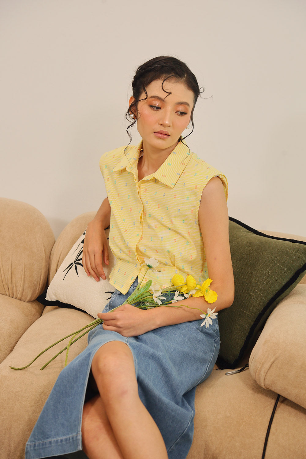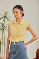 Amina Sleeveless Shirt in Yellow Gingham Top
