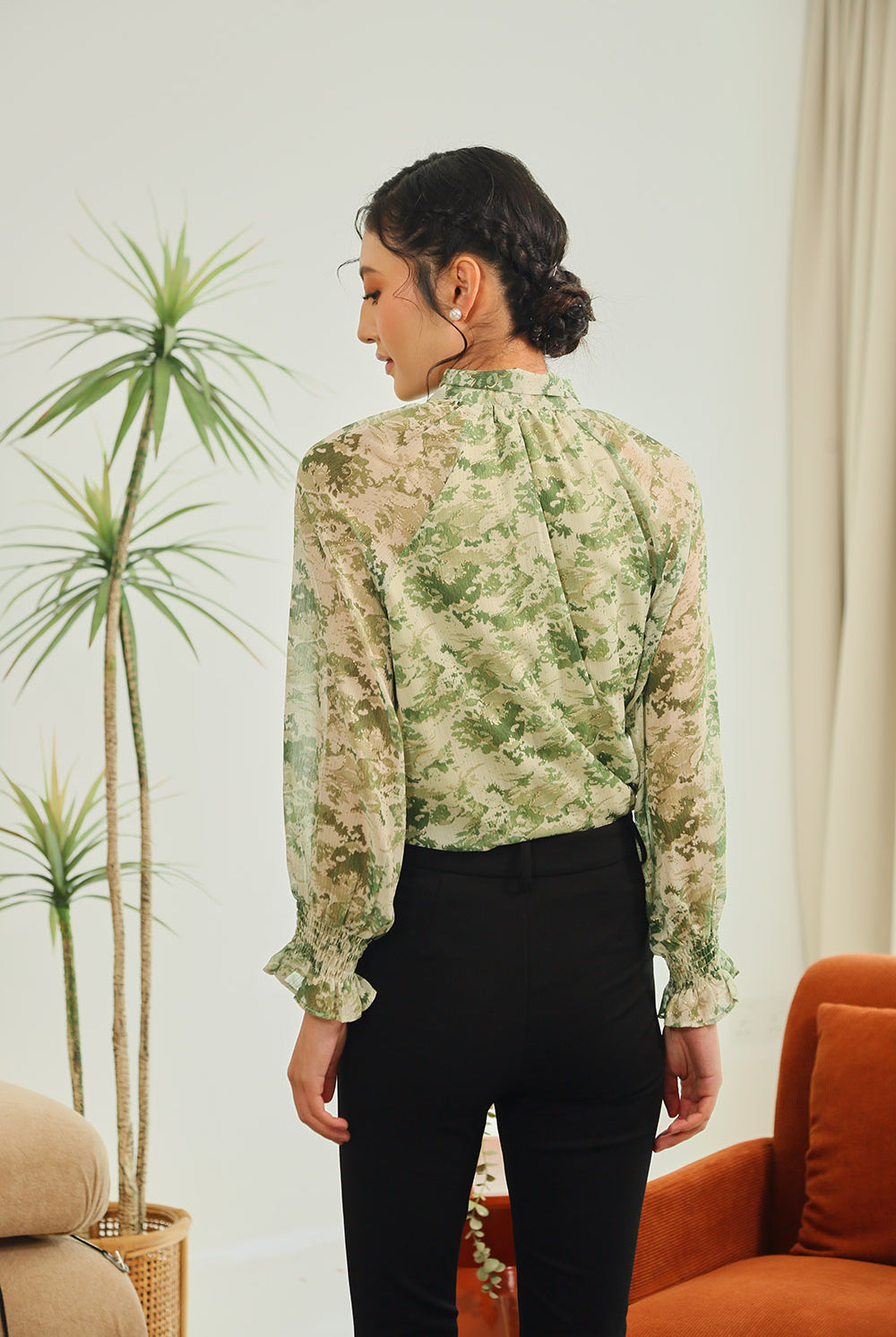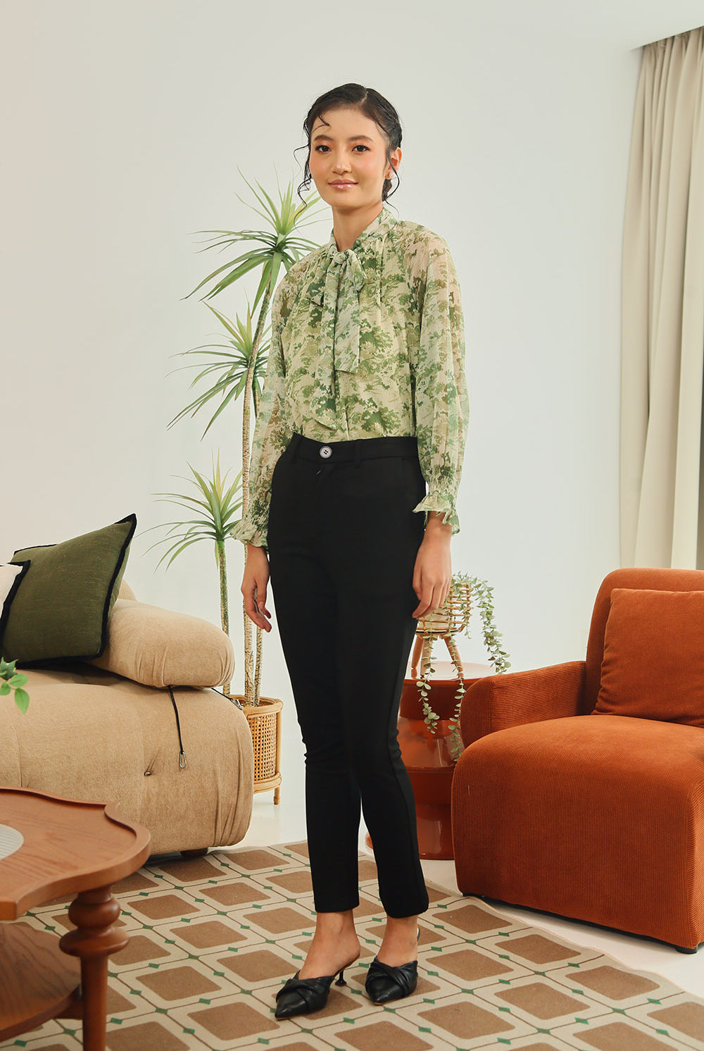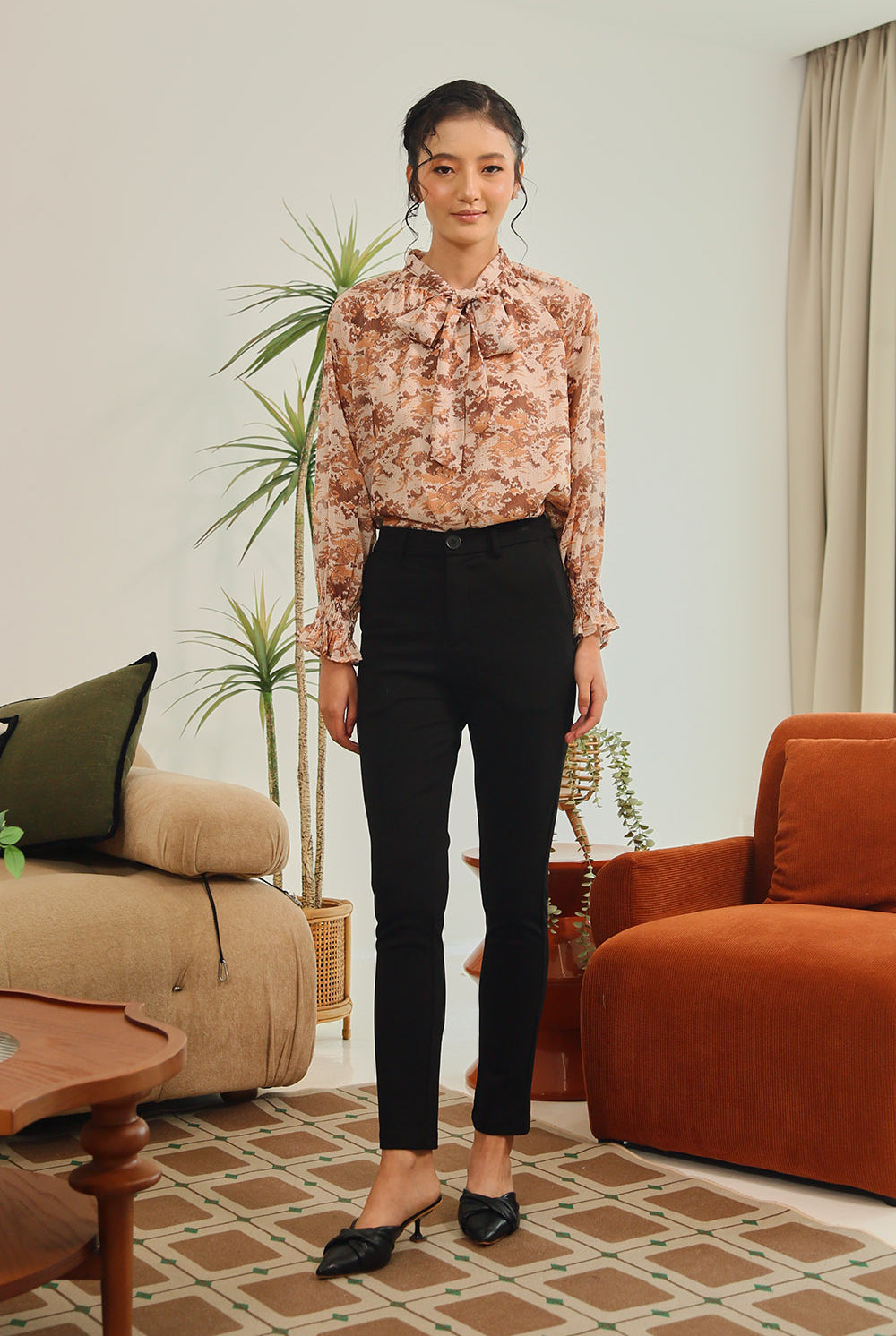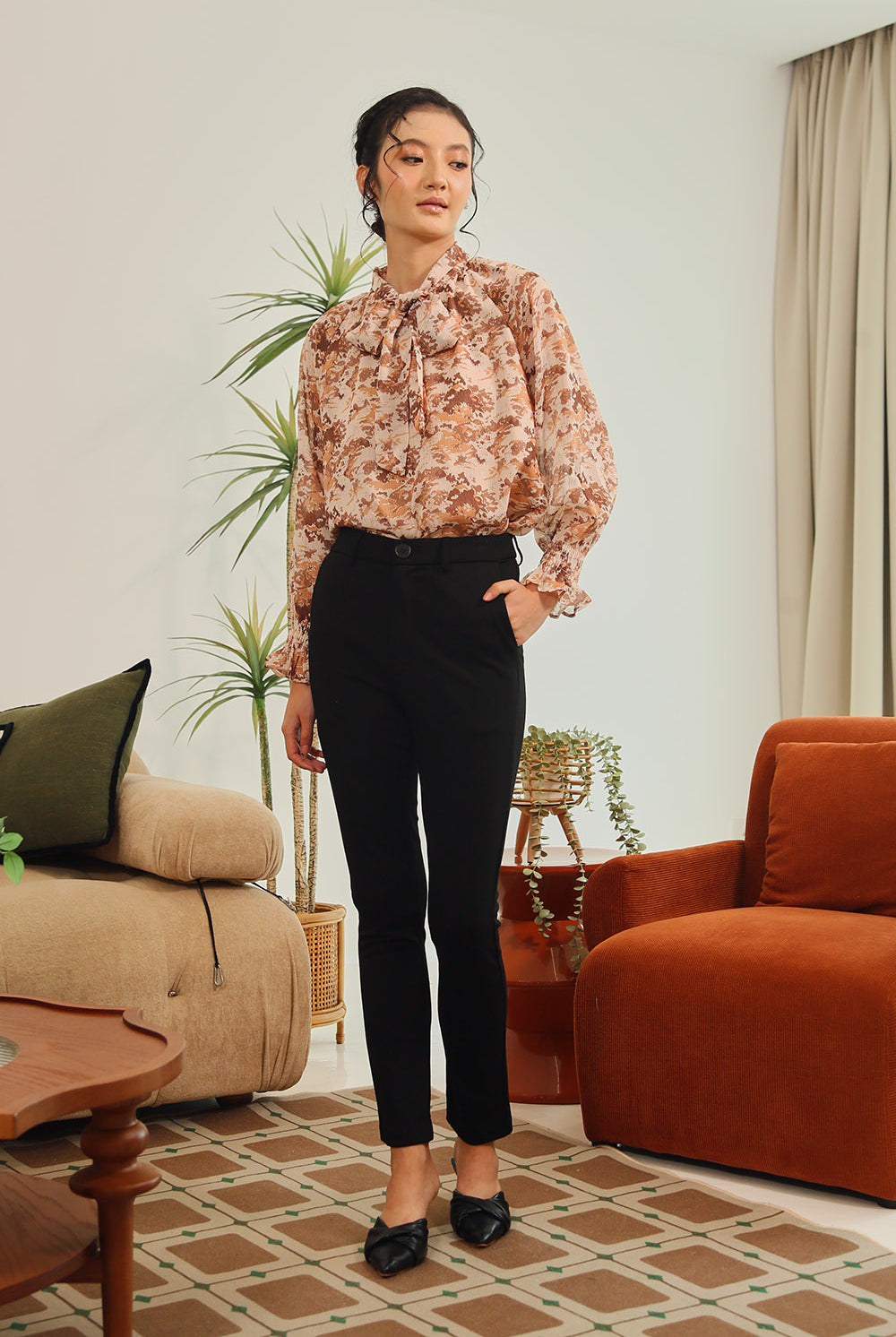 Elevate your everyday elegance with the Aureline Tie-Neck Blouse in Burnt Sienna Floral. Crafted from a lightweight sheer fabric with subtle golden accents, this blouse features long sleeves with gathered cuffs and a graceful tie-neck detail for a feminine yet polished finish. Its earthy floral tones bring warmth and sophistication, making it the perfect choice for both workdays and evenings out.