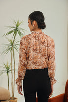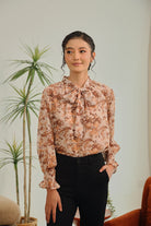 Aureline Tie-Neck Blouse in Burnt Sienna Floral