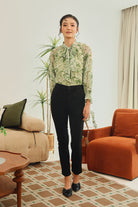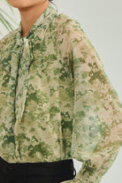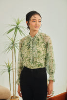 Aureline Tie-Neck Blouse in Moss Green Floral