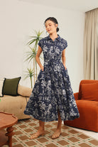 Dezza Midi Dress in Navy Blue Scenic Embroidery