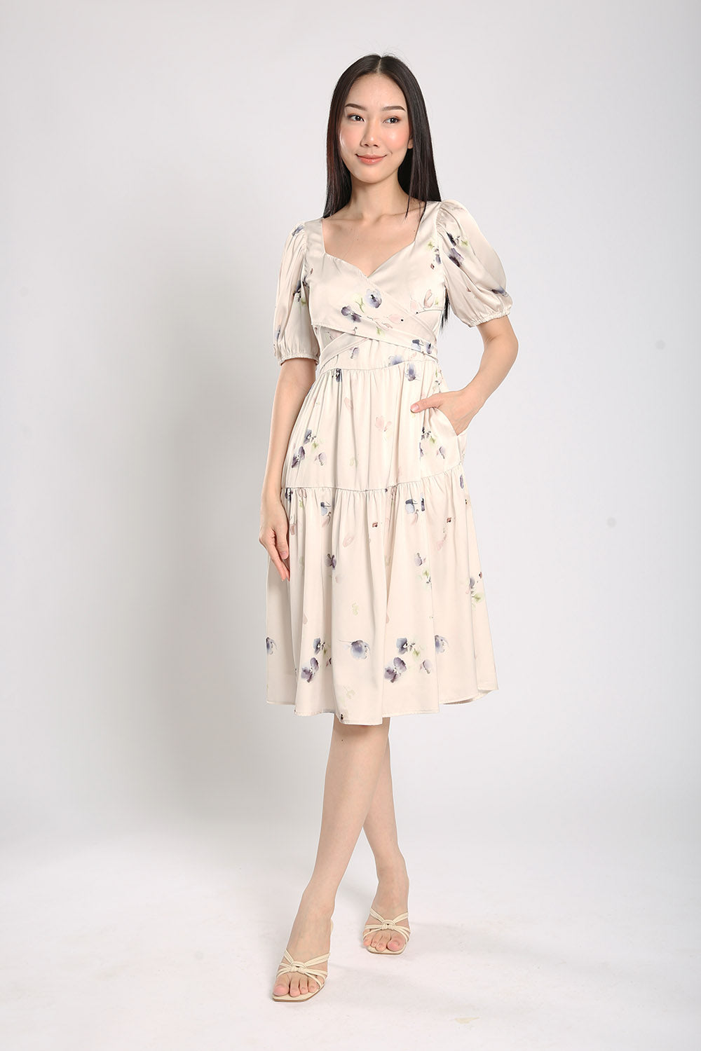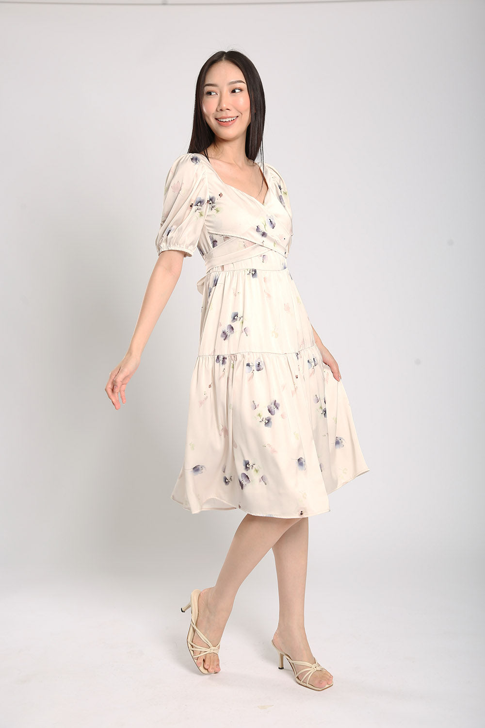 Katrine Floral Printed Dress in Apricot