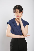 Expertly crafted from lightweight linen fabric, the Maryanne Tailored Blouse in Coffee offers a sleek and stylish look. The tailored vest top and front snap button closure provide a flattering fit and easy wear. Elevate your wardrobe with this versatile piece.