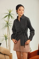 Narela Ruched Stripe Shirt in Black