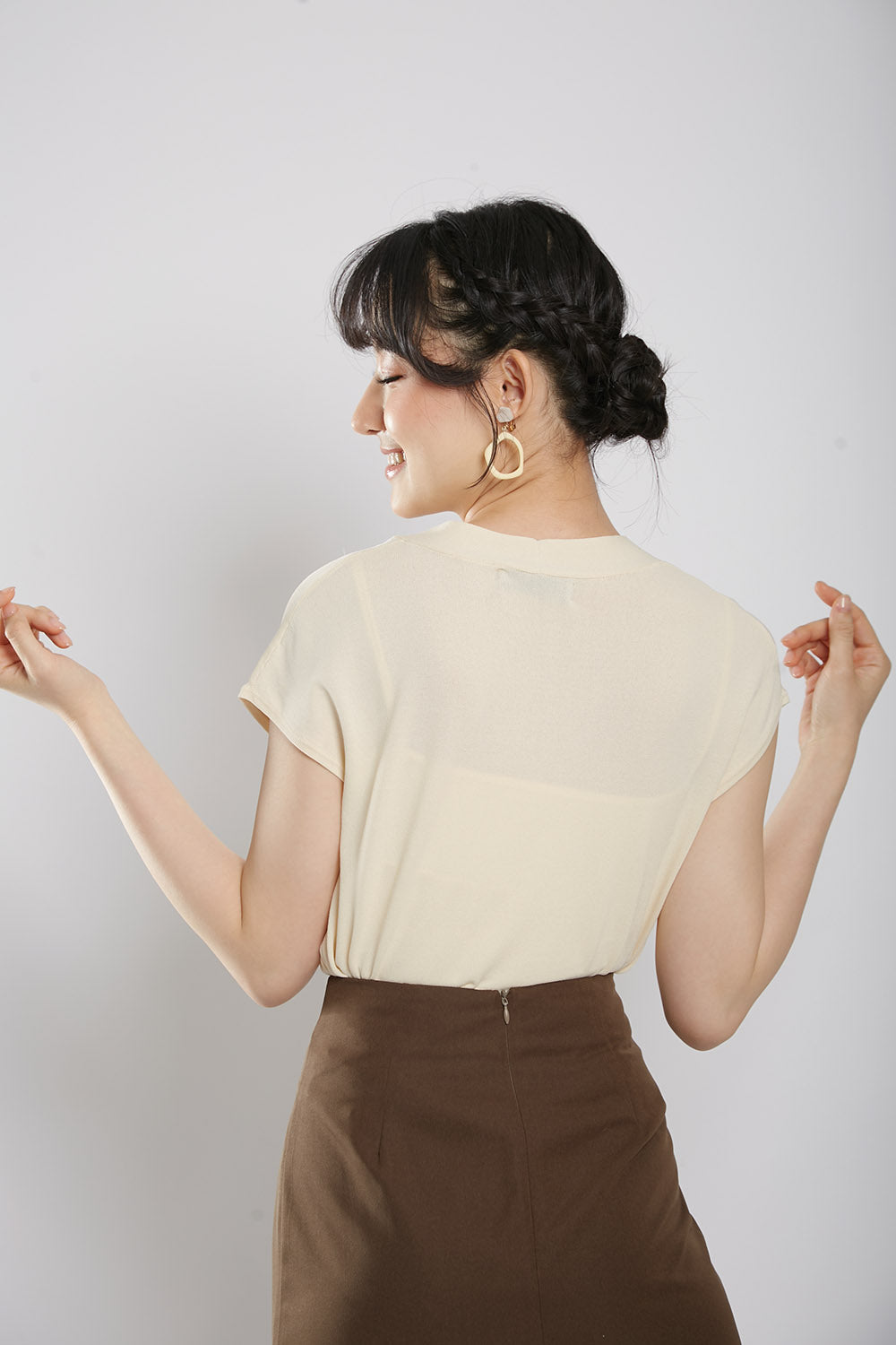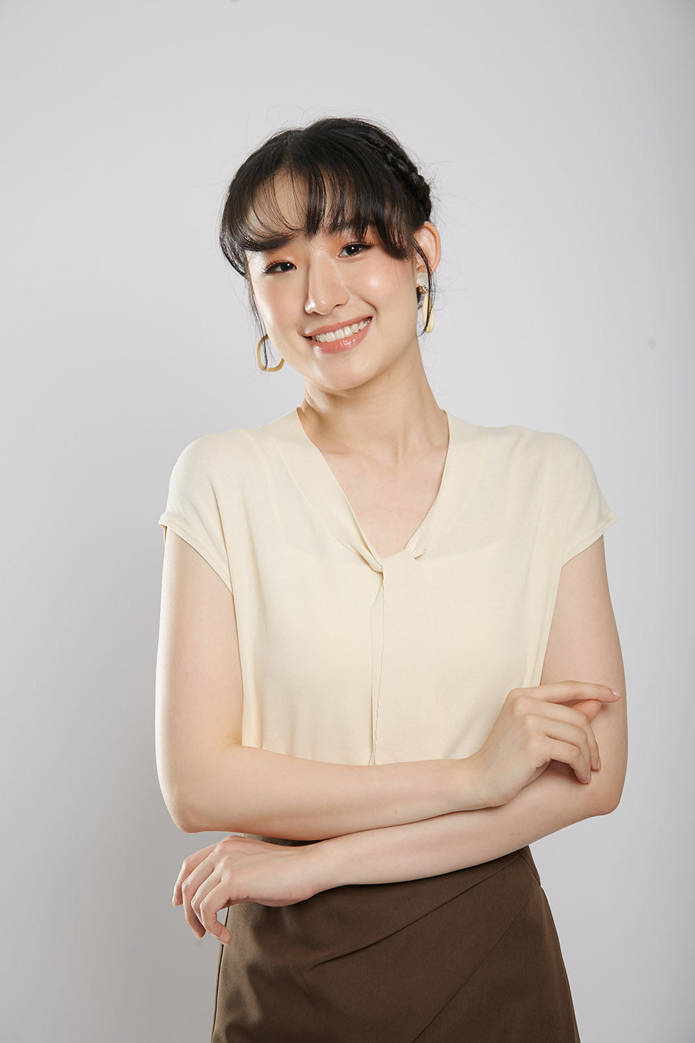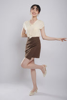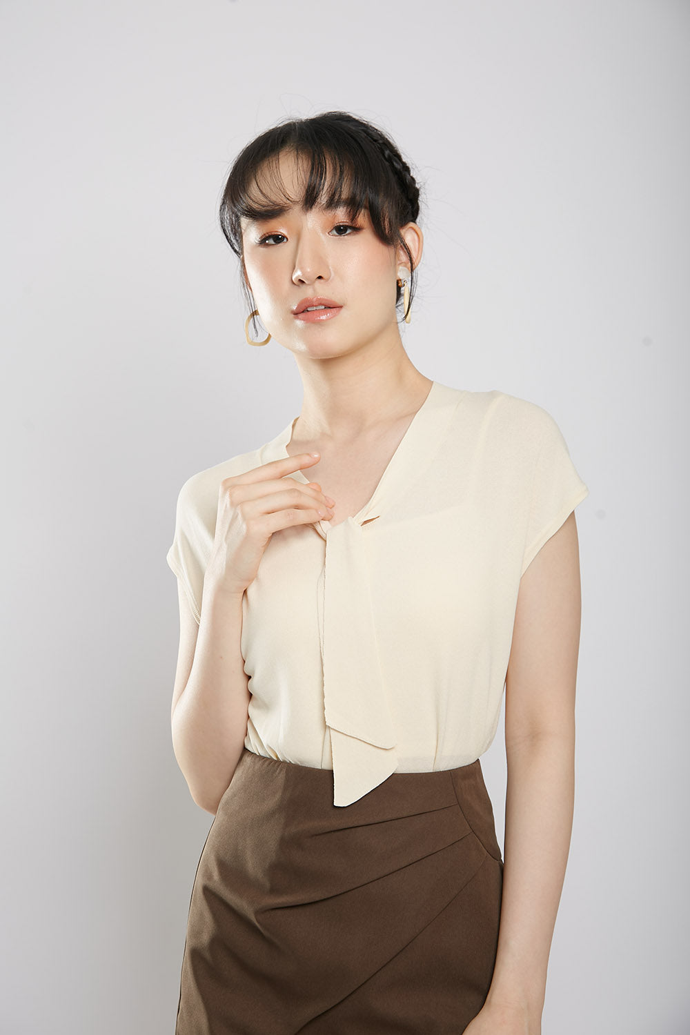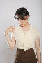 Novabelle Sash Knit Top in Beige