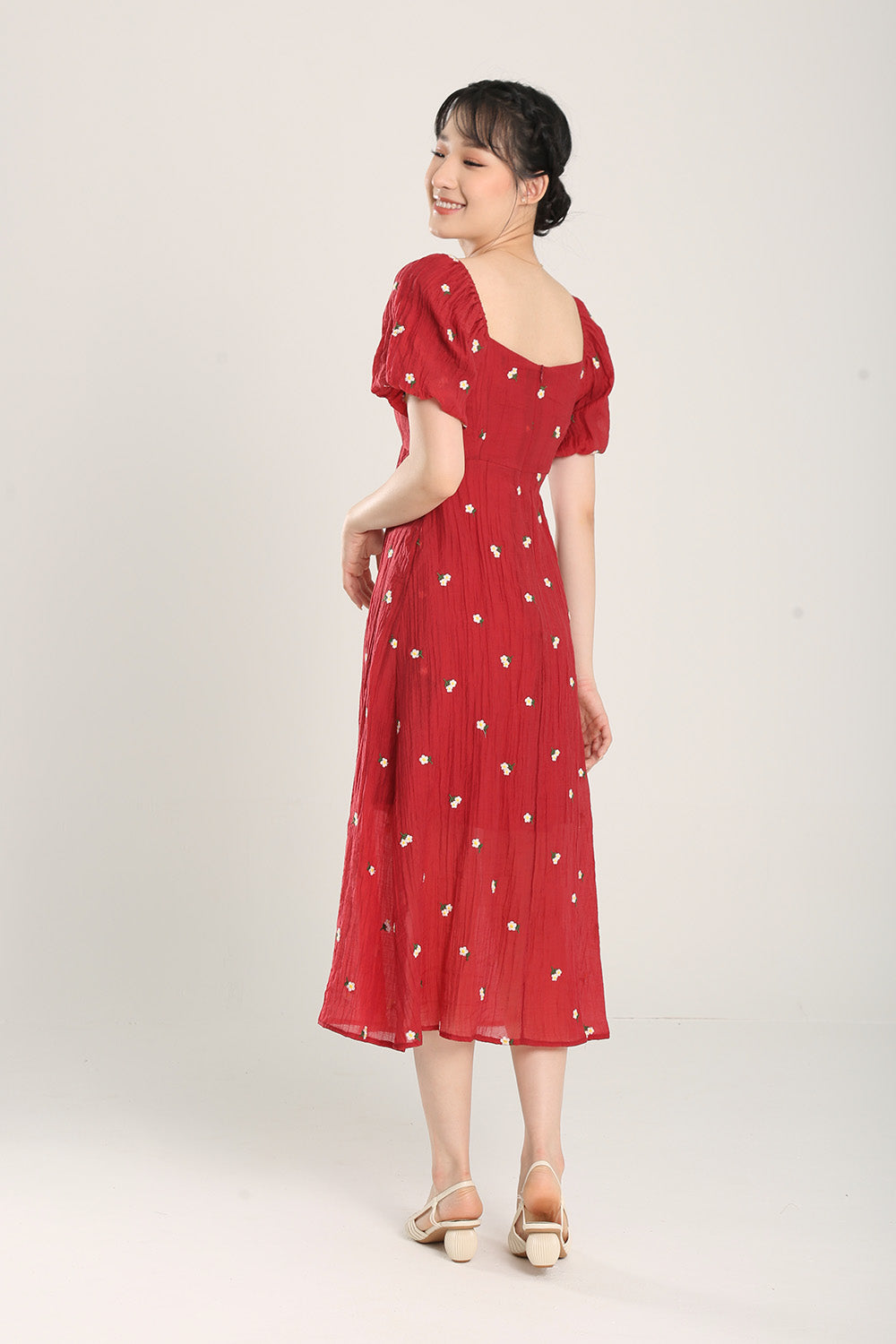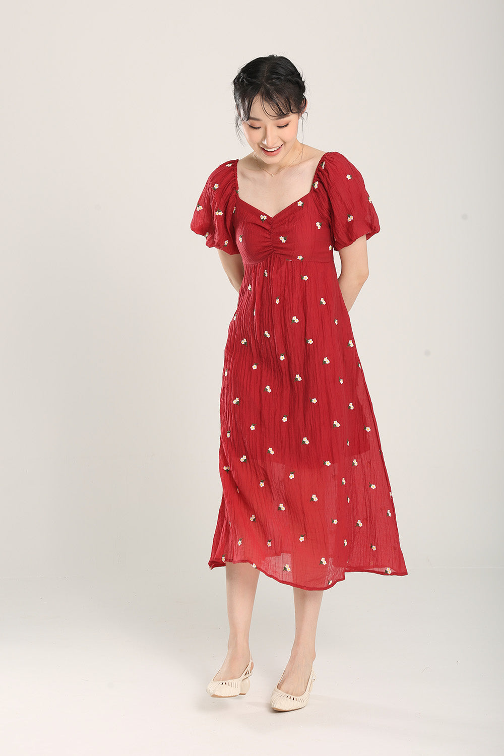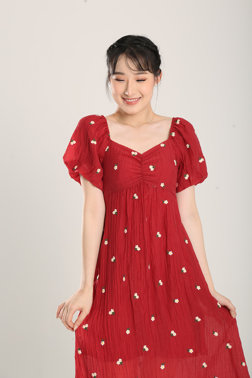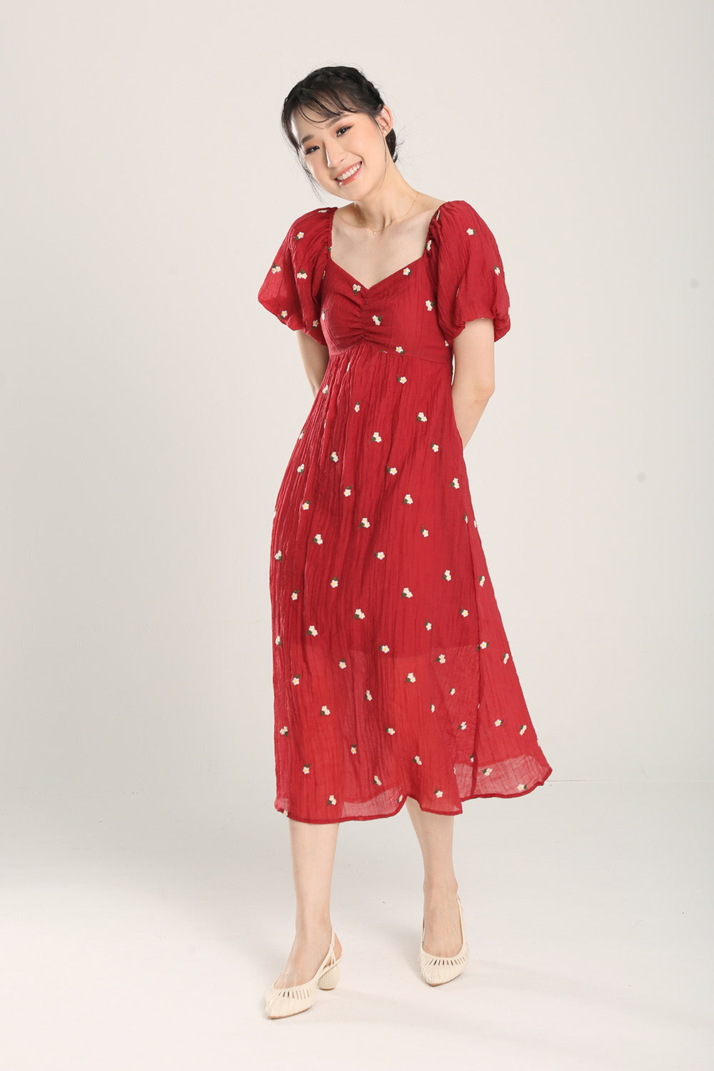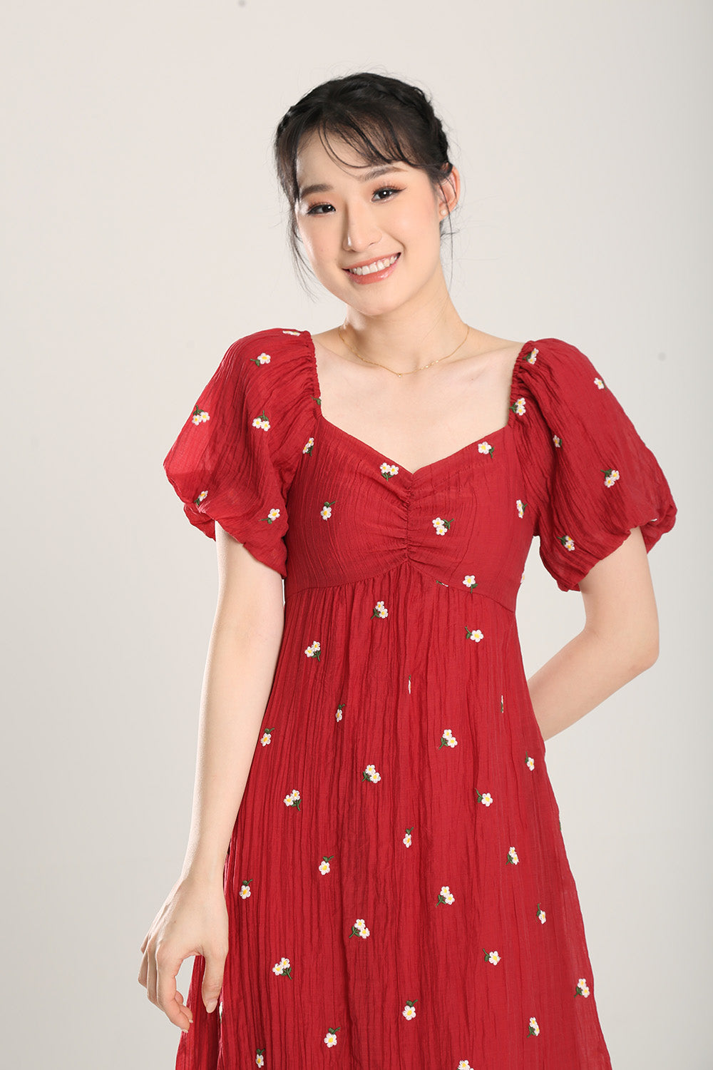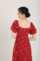Sasha Floral Embroidered Dress in Red