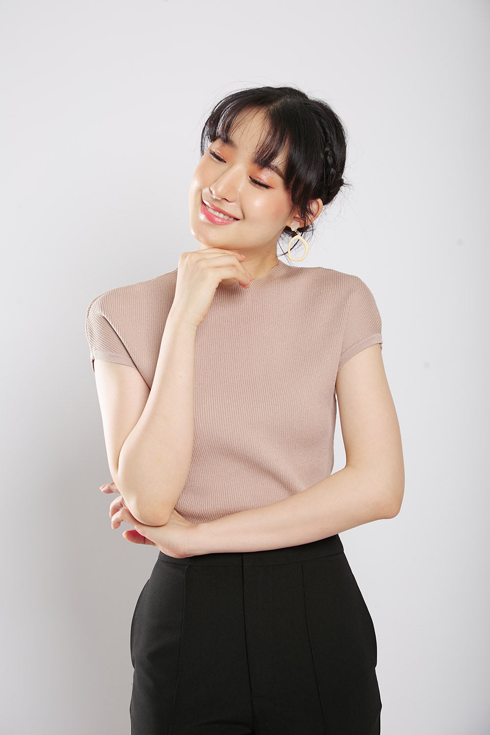 The Yesenia Knit Top in Beige is the ultimate blend of comfort and style. This top features a classic crew neck and ribbing texture on the neck, armholes, and hem, adding subtle dimension and character to any outfit. Perfect for any occasion, this top will quickly become a staple in your wardrobe.