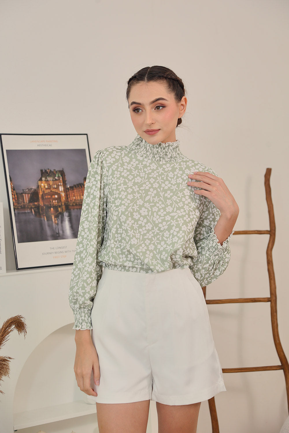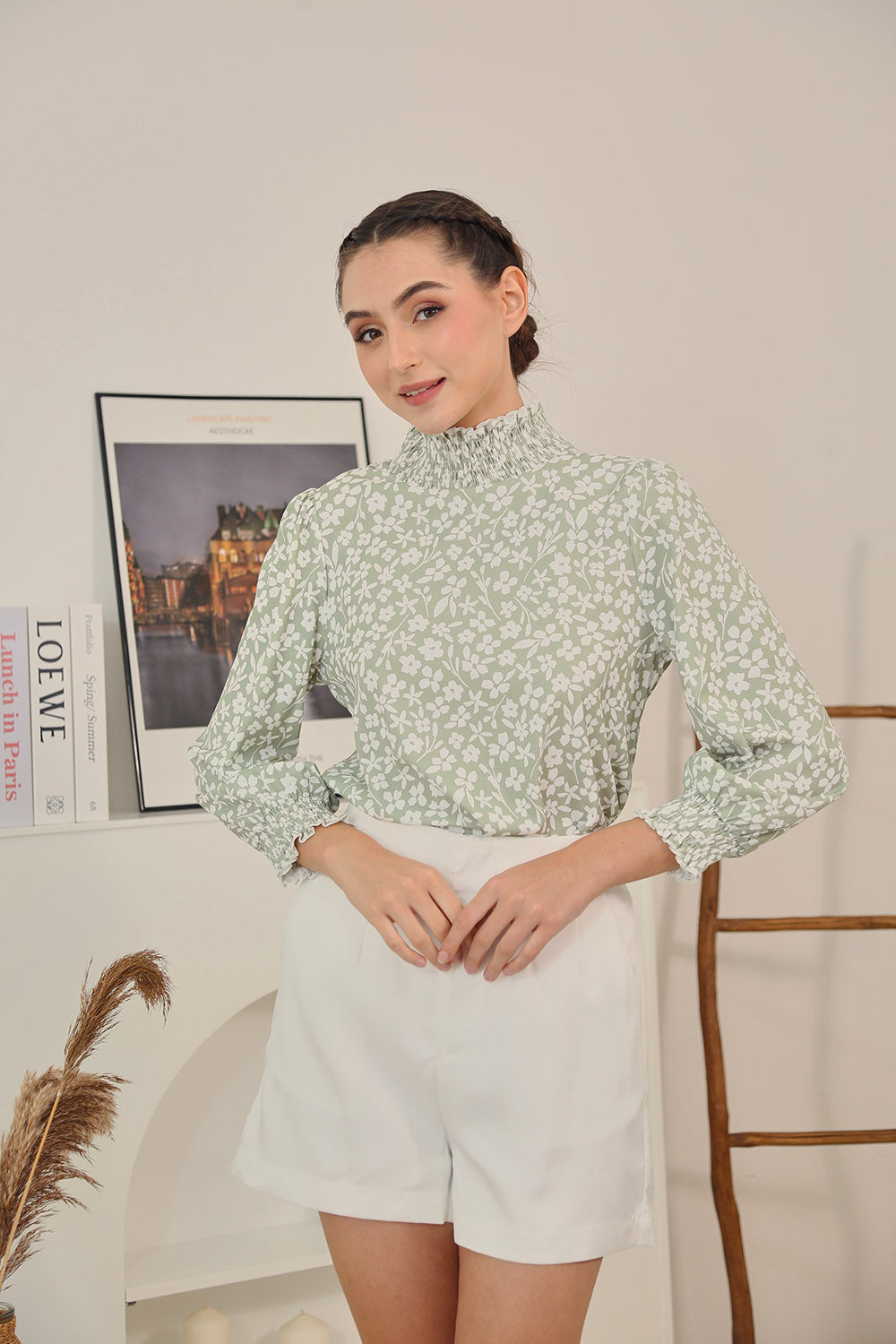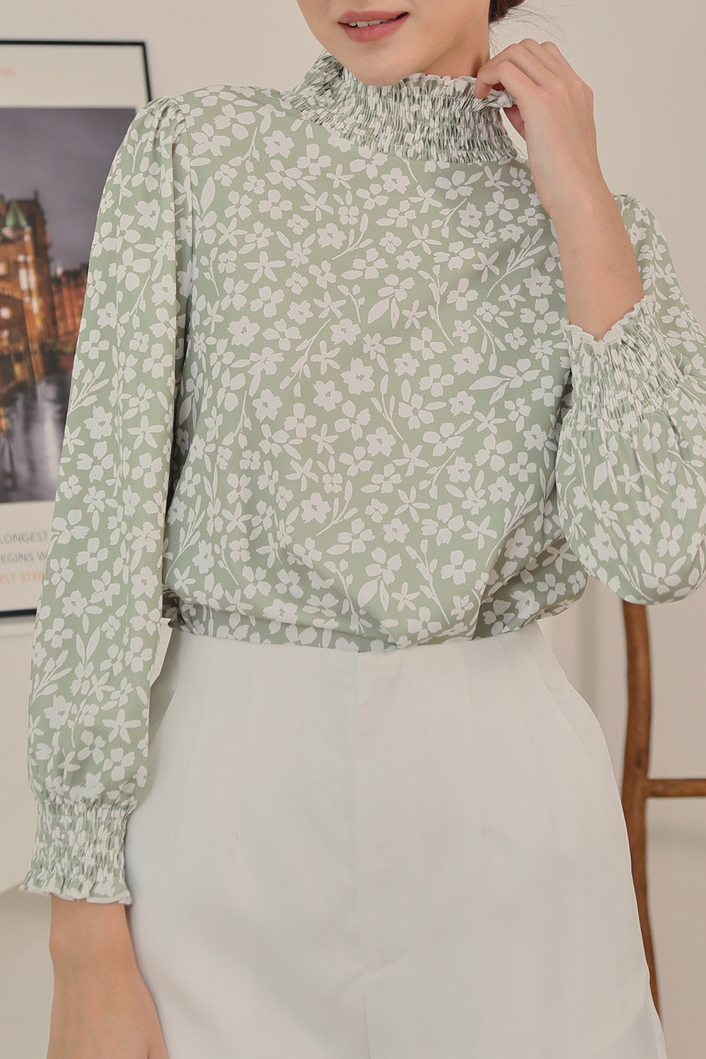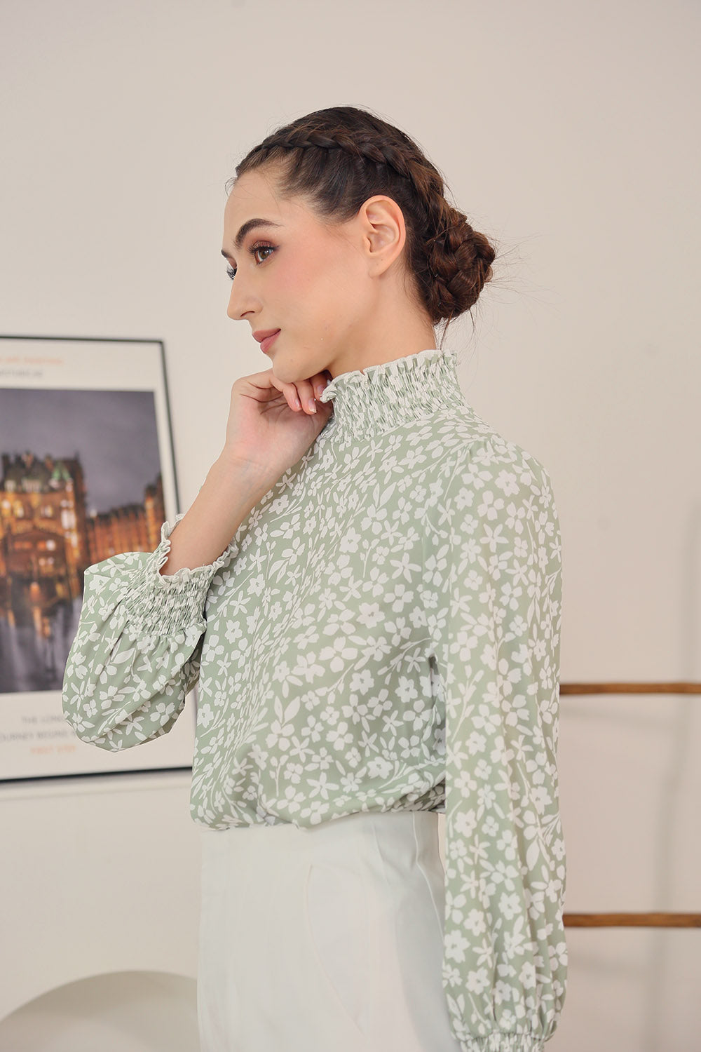 Mirelle Long Sleeves Tops in Sage Floral