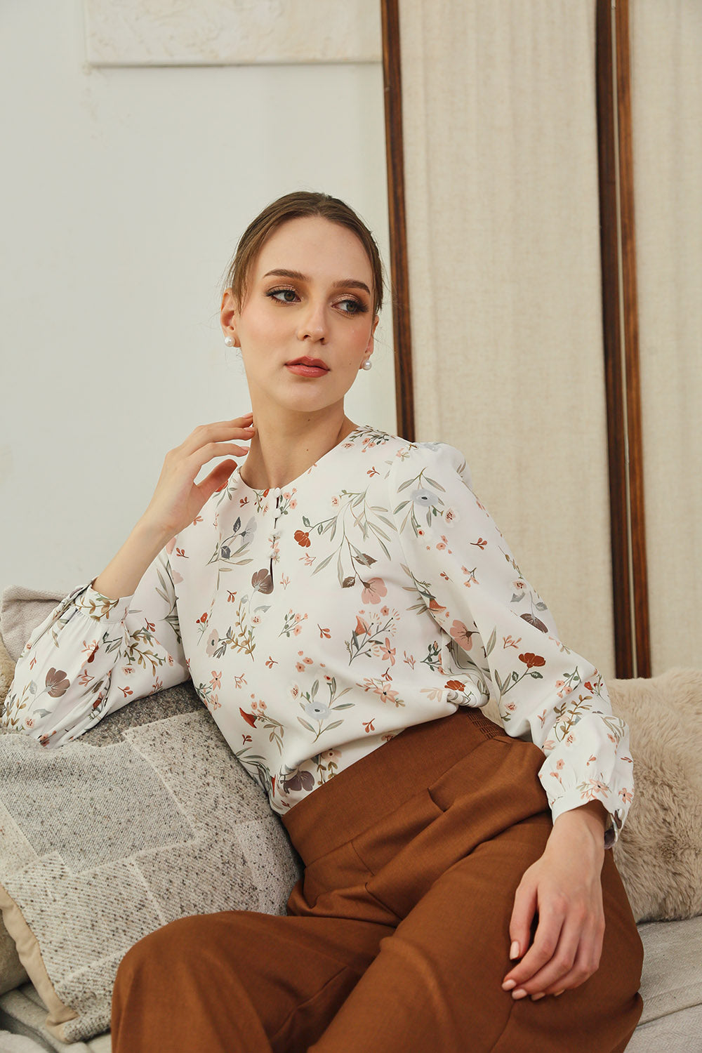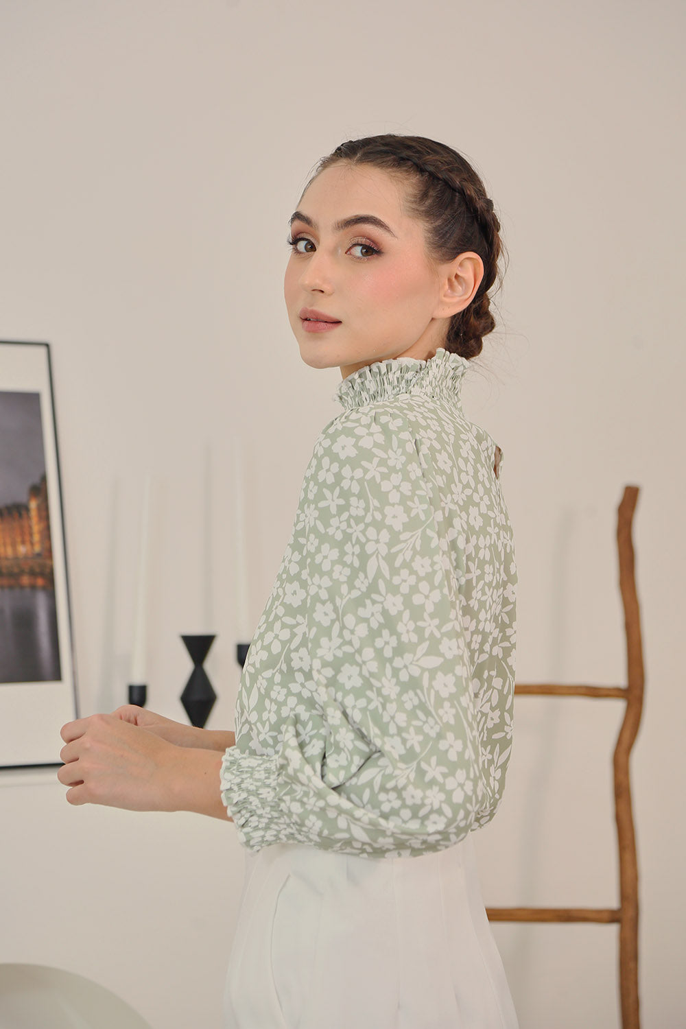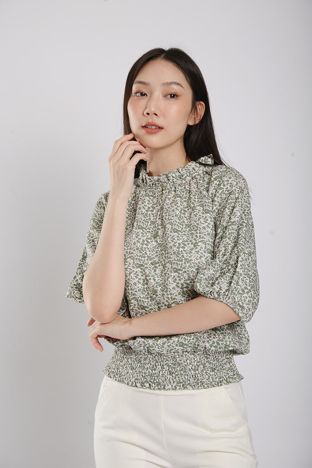 Mirelle Long Sleeves Tops in Sage Floral