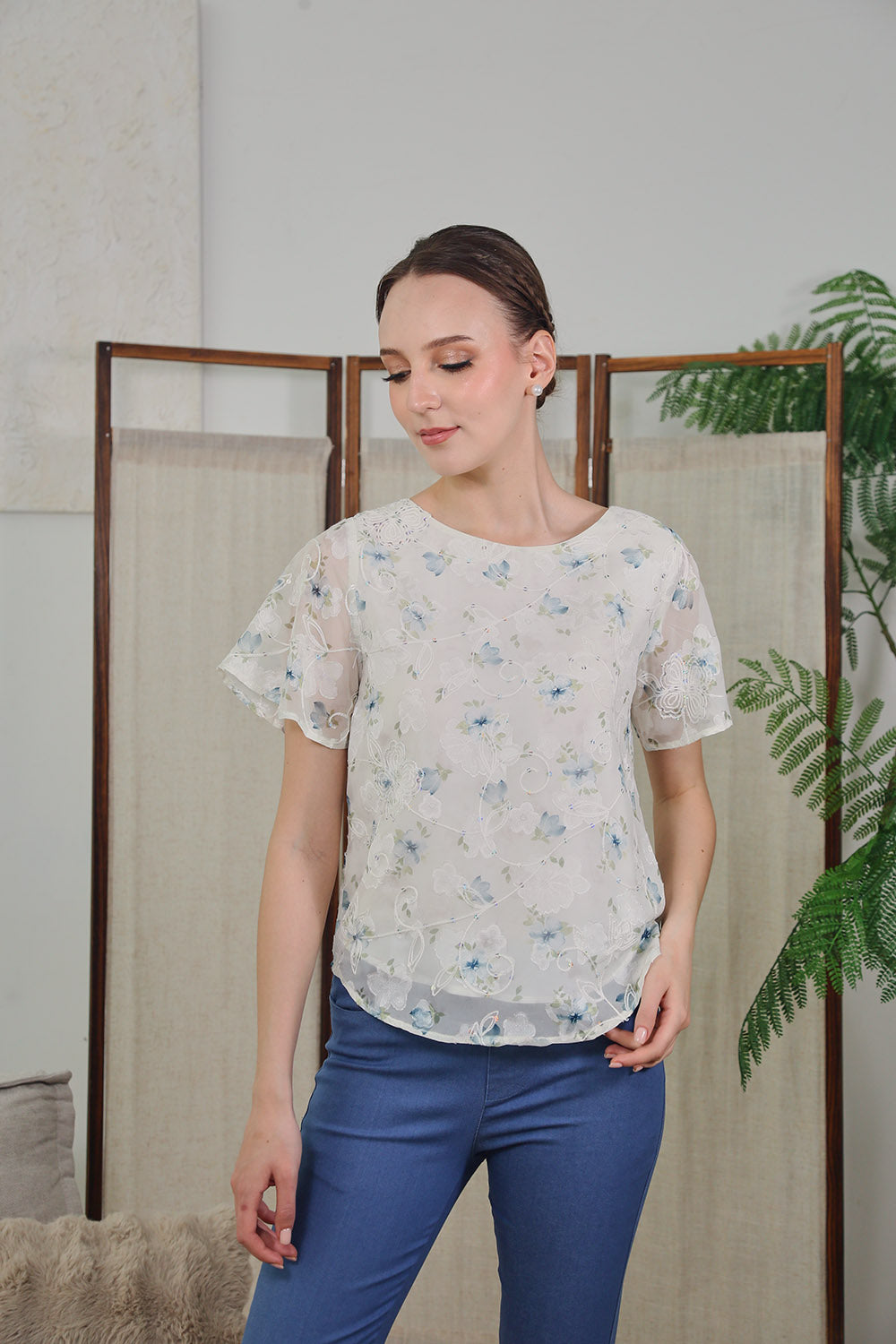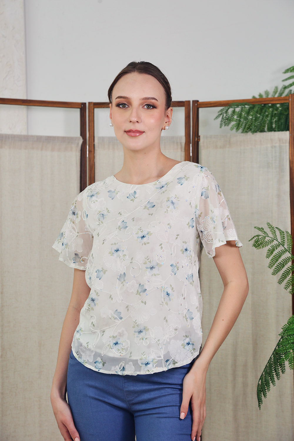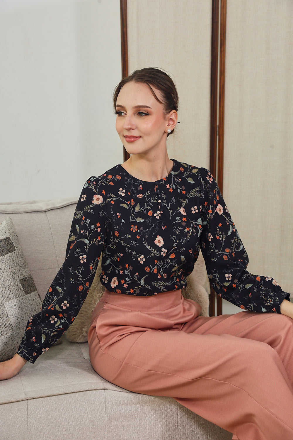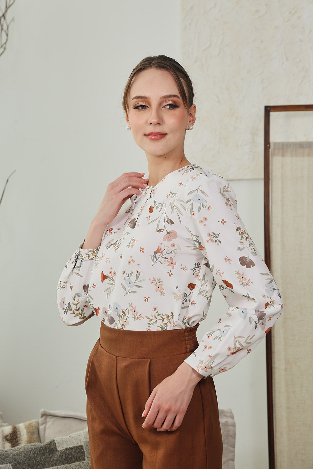 Mirelle Long Sleeves Tops in Sage Floral