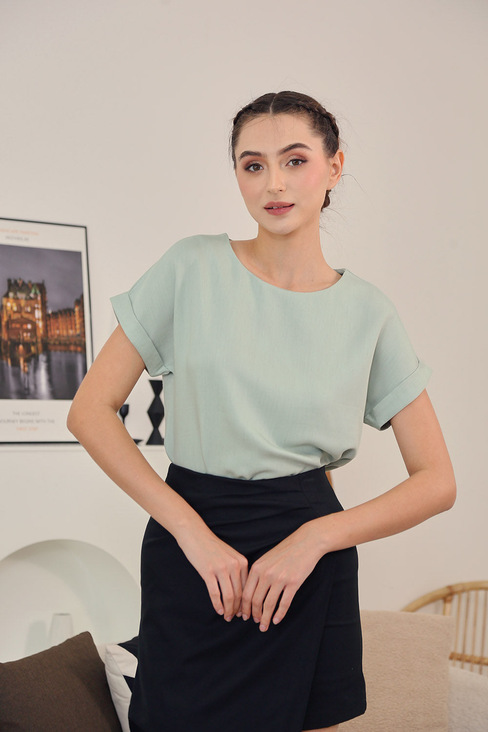 Tova Color Top in Sage Texture