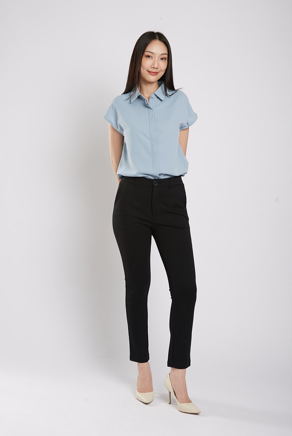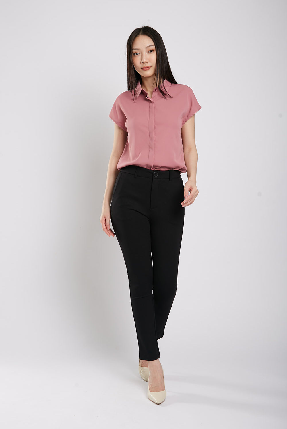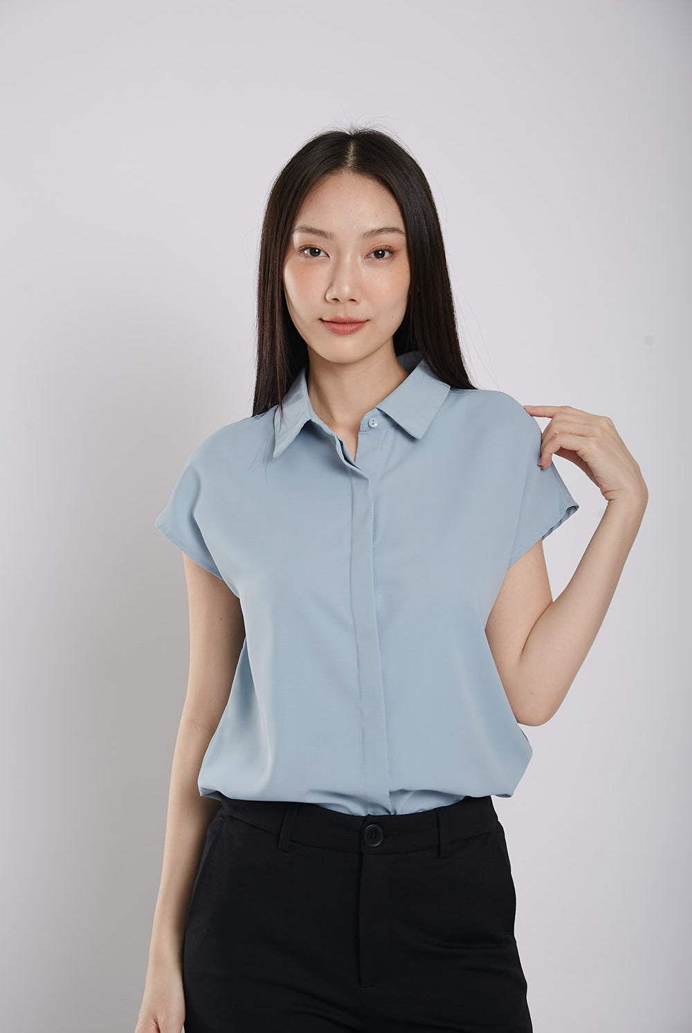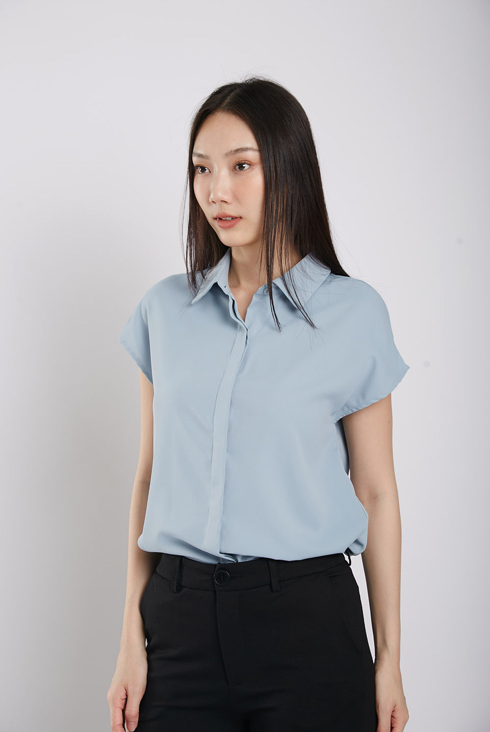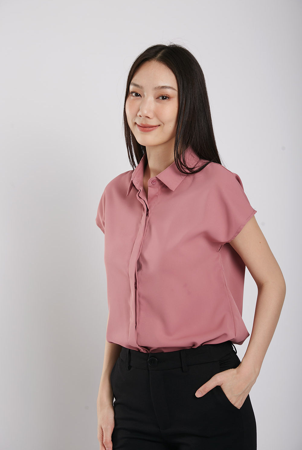 Introducing the Aella Button Down Shirt , designed for ease and functionality. Our easy iron fabric and button front closure allow for effortless maintenance and a polished look. The perfect addition to any wardrobe, providing both style and convenience.